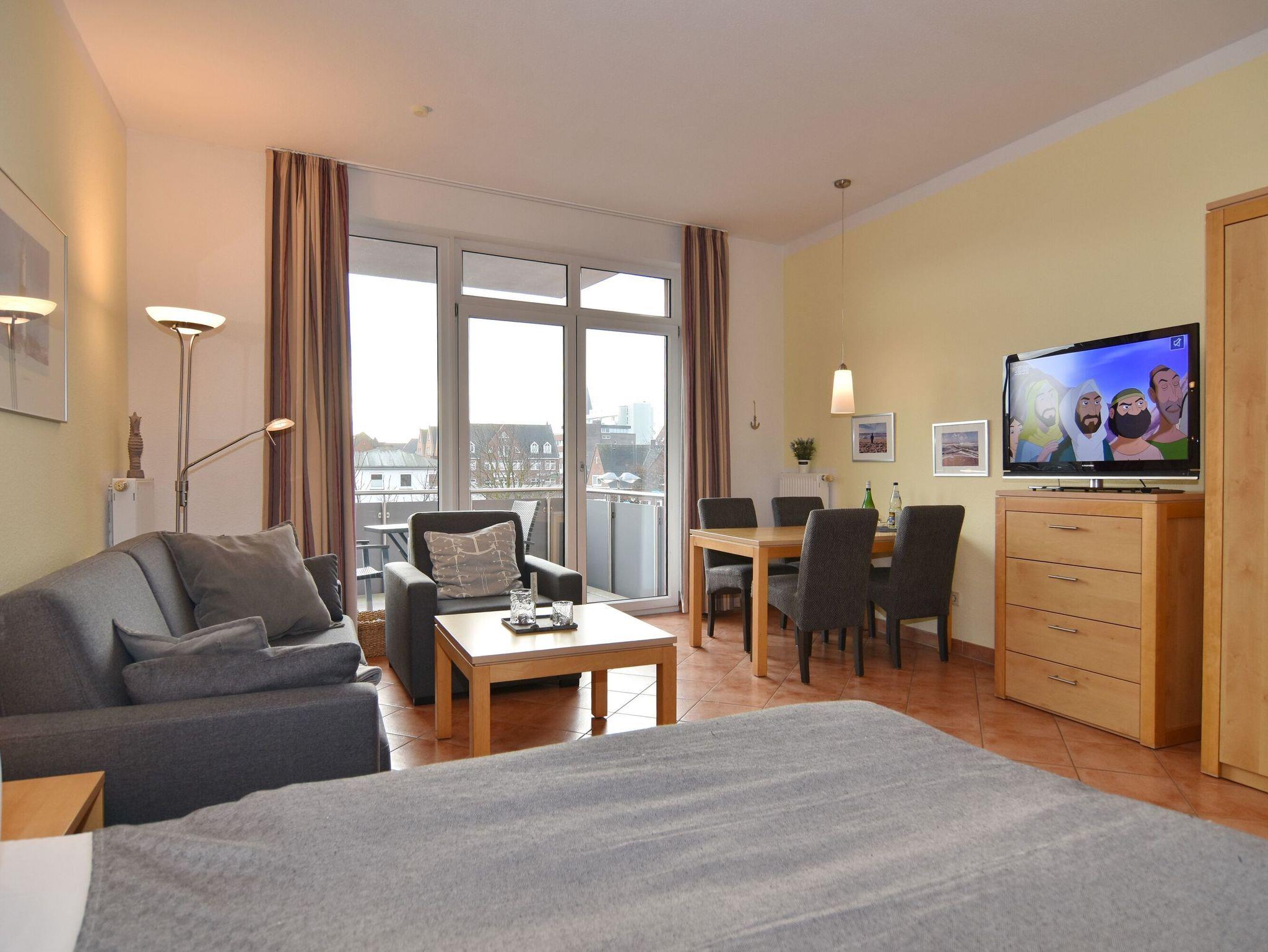 Gepflegte 1-Zimmer-Ferienwohnung im roten Haus, Nichtraucher-Whg., ca. 34m², 1. OG. Wohn-/Schlafraum mit Südbalkon, Doppelbett, Essplatz, 2-Sitzer-Couch und Sessel, Flat-TV, Küchenzeile mit Geschirrspüler und Mikrowelle, Duschbad/WC. Das Apartment ist komplett gefliest. Internetanschluß (ohne Gewähr). Waschküche und Fahrradkeller im Nebenhaus Mauritius. Pkw-Stellplatz kann kostenpflichtig hinzugebucht werden. Bettwäsche und Handtücher sind zur Anreise aufgezogen!