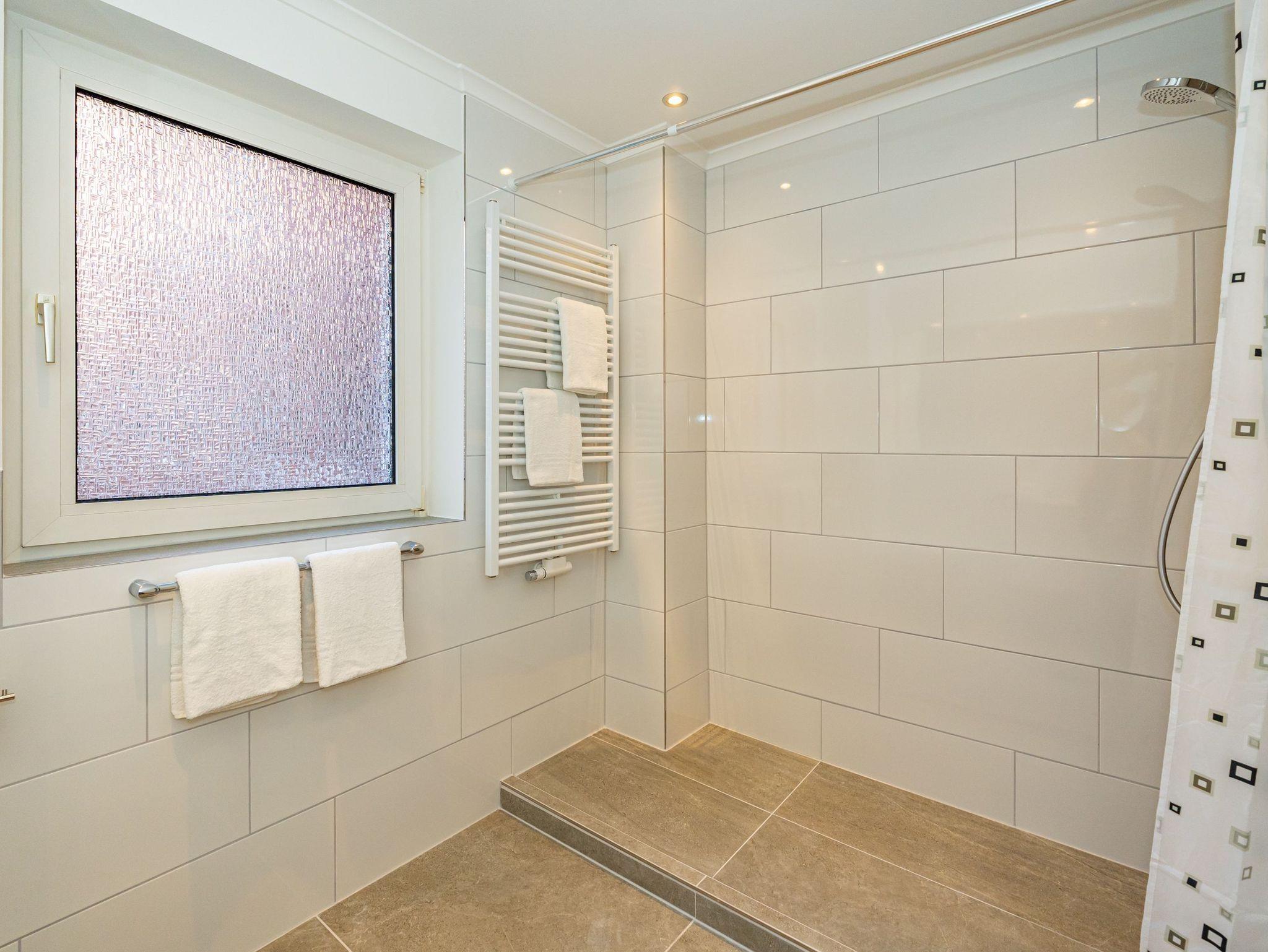 Ein Highlight ist das neue, geräumige Badezimmer, dass Sie mit großzügiger Dusche mit extraflachem Einstieg, Handtuchtrockner, Waschtisch, Haarfön, Kosmetikspiegel, WC und Fenster gut in den Tag starten lässt.
