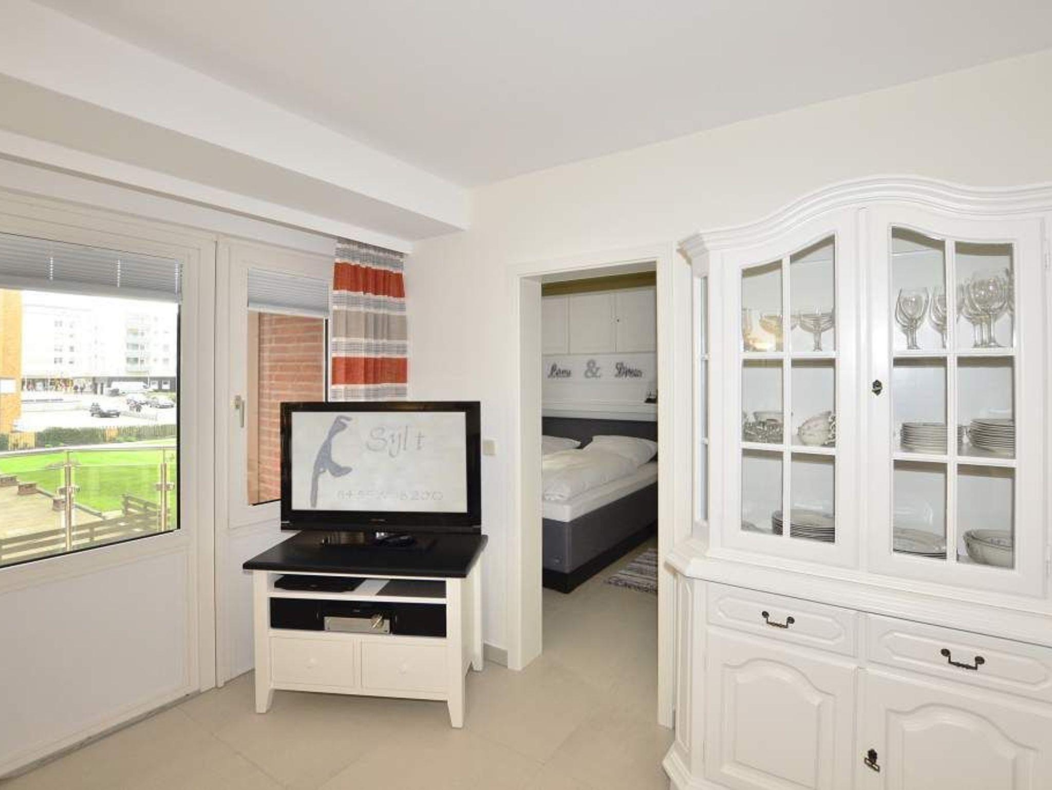 Der Wohnraum ist mit einem gemütlichen Schlafsofa (mit ausklappbarer separater Matratze, Liegefläche 1,80 x 2,00, Komfort-Liegehöhe ca. 60 cm), einen bequemen Sessel und einem separaten Essplatz ausgestattet. An Technik steht ein Kabel-Flachbild-TV, Radio, DVD-Player sowie ein Telefon zur Verfügung.