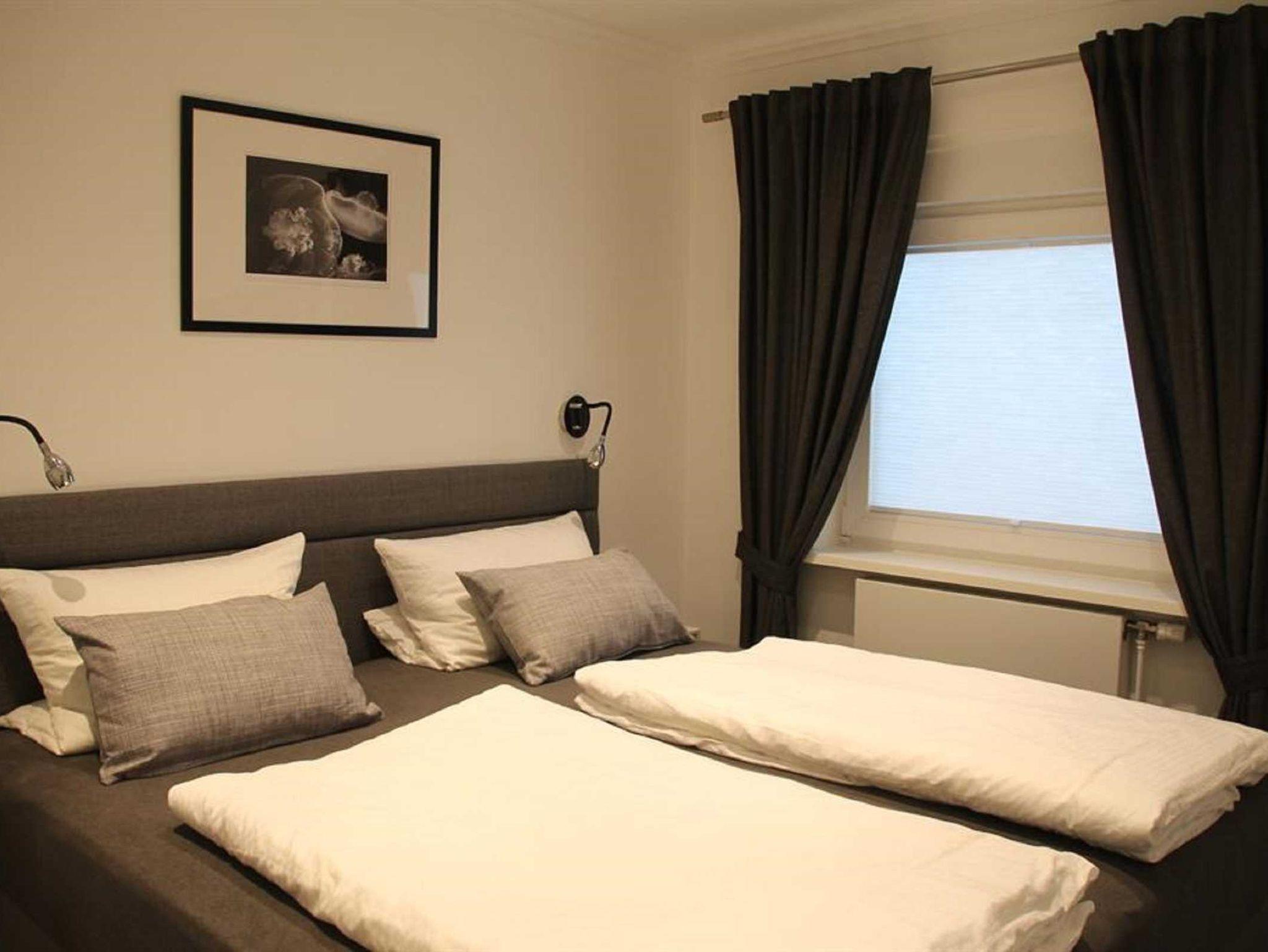 Ein Schlafzimmer mit hochwertigem Boxspringbett (180x200) und offenem Fußende laden zum erholsamen Schlaf ein. Zusätzlich ist das gemütliche Schlafzimmer mit Nachttischen, Leselampen, Flachbild-TV und Kleiderschrank ausgestattet. Die Betten sind für Sie bezogen.