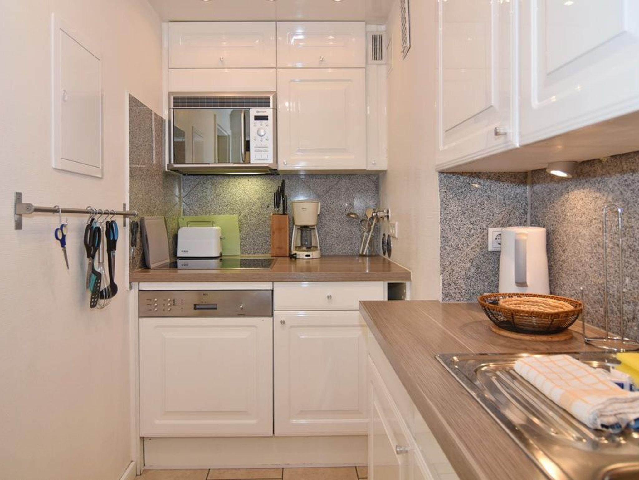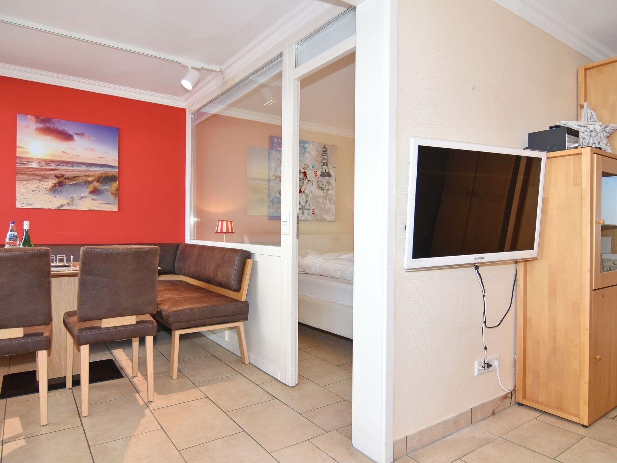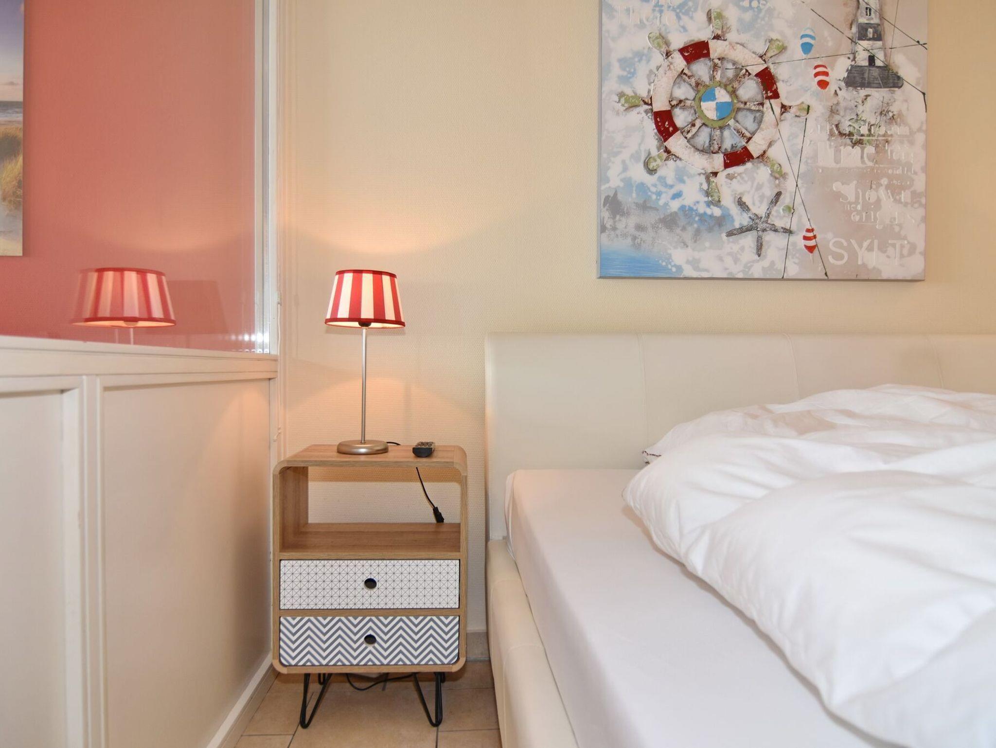 2-Zimmer-Wohnung im Haus am Meer mit Westbalkon und Meeresblick, ca. 50qm, 4. OG zur Seeseite - Nichtraucher-Whg.! Wohnzimmer mit Schlafcouch, Kleiderschrank, Flat-TV und Westbalkon. Von hier aus gelangt man zum Essplatz für 4 Personen - dieser ist dem separaten Schlafzimmer mit Doppelbett, Einbauschrank und Flat-TV vorgelagert. Der Essplatz besteht aus einer großzügigen Eckbank und 2 Stühlen, die wahlweise auch zum Sofa gestellt werden können. Im Flurbereich befindet sich die offene Küche mit Geschirrspüler, Ceranherd mit 4 Kochfeldern und Mikrowelle. Der Kühlschrank verfügt über ein Gefrierfach. Duschbad / WC. PKW-Stellplatz/Garage kann kostenpflichtig gebucht werden. Bettwäsche und Handtücher sind zur Anreise aufgezogen. Tierhaltung ist in der Wohnung nicht gestattet. Beginnend vom 15.10.2025 bis 5.4.2026 (Ostern) findet die Fassandensanierung der Landseite (Osten) sowie des Südgiebels statt. Mit Baulärm ist in dieser Zeit zu rechnen.