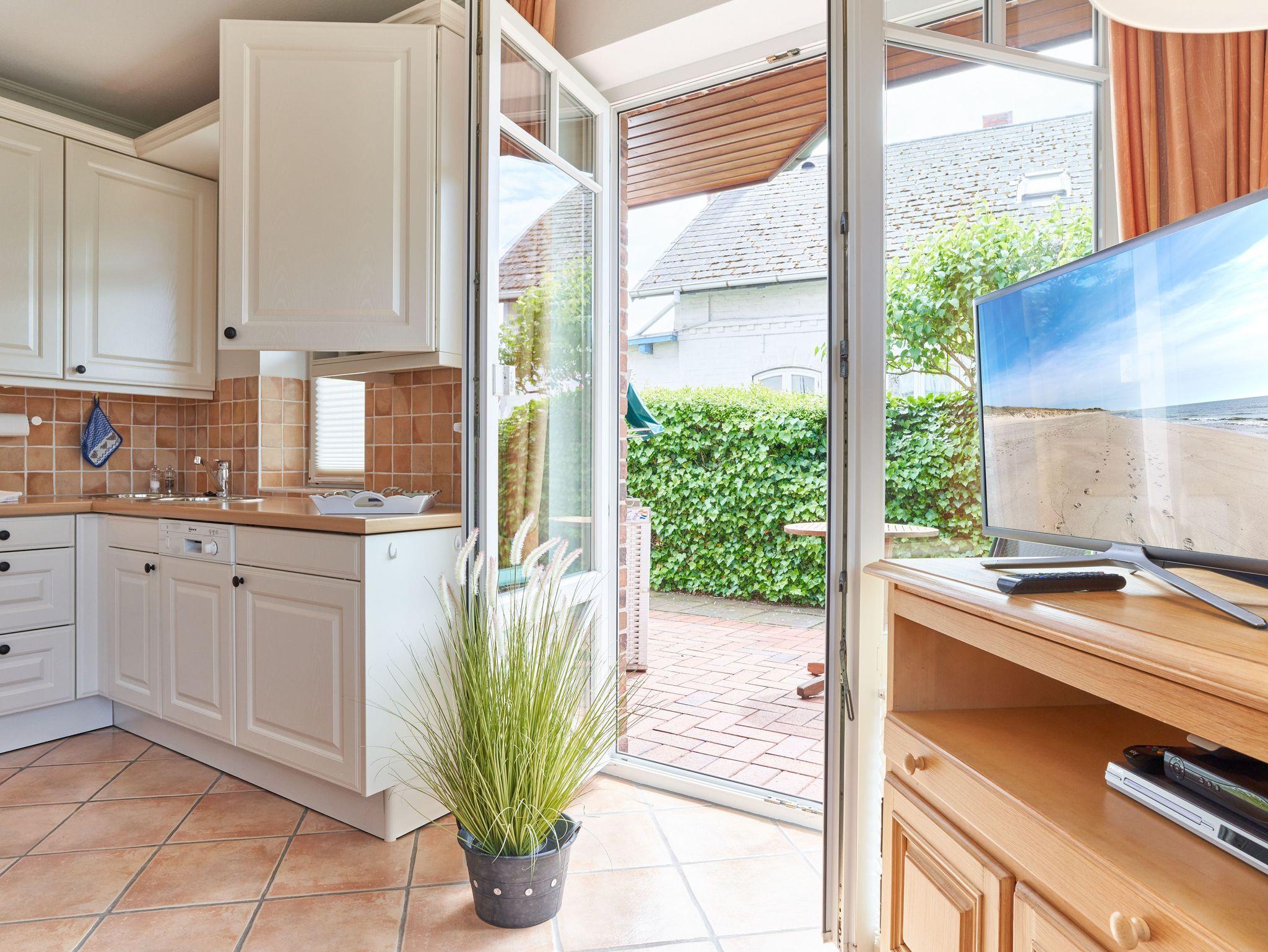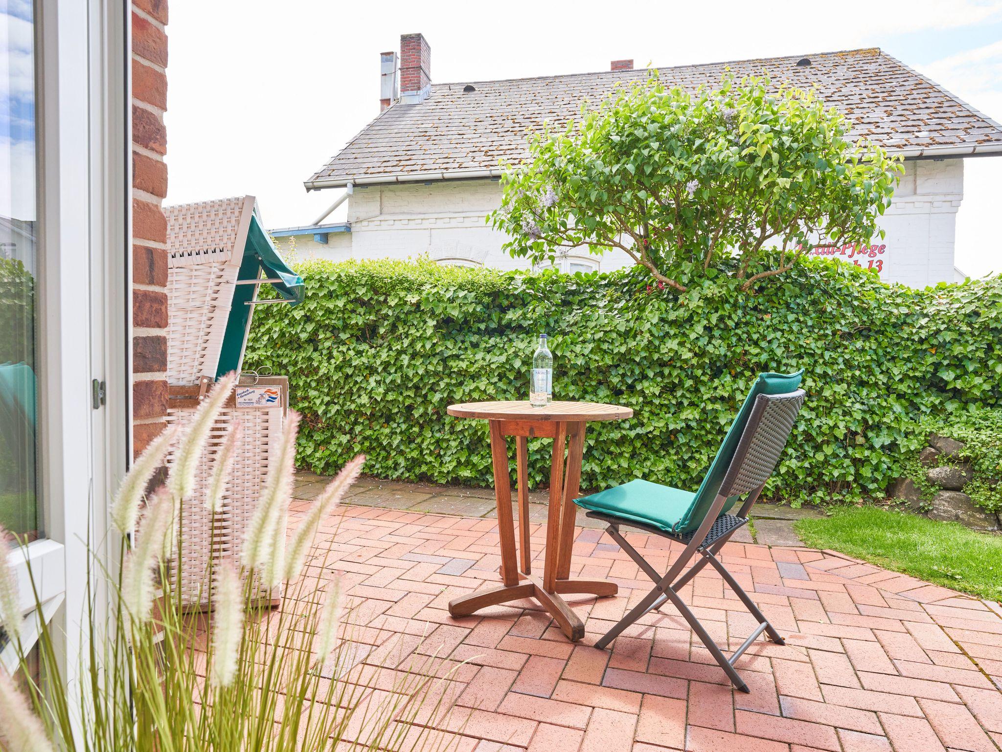 In dieser Ferienwohnung handelt es sich um eine behindertenfreundliche, ebenerdige Ferienwohnung für 2 Personen im Erdgeschoss. Auf ca. 40 m² verteilen sich Wohnzimmer mit geräumiger, integrierter Küche und Essplatz mit Schlafcouch und der Zugang zu der Terrasse mit Strandkorb und Gartenmöbeln. Das Badezimmer präsentiert sich modern und in hellen Farben mit Dusche, Toilette und Waschbecken. Ebenfalls hier zu finden ist das gemütliche Schlafzimmer mit Einzelbett.