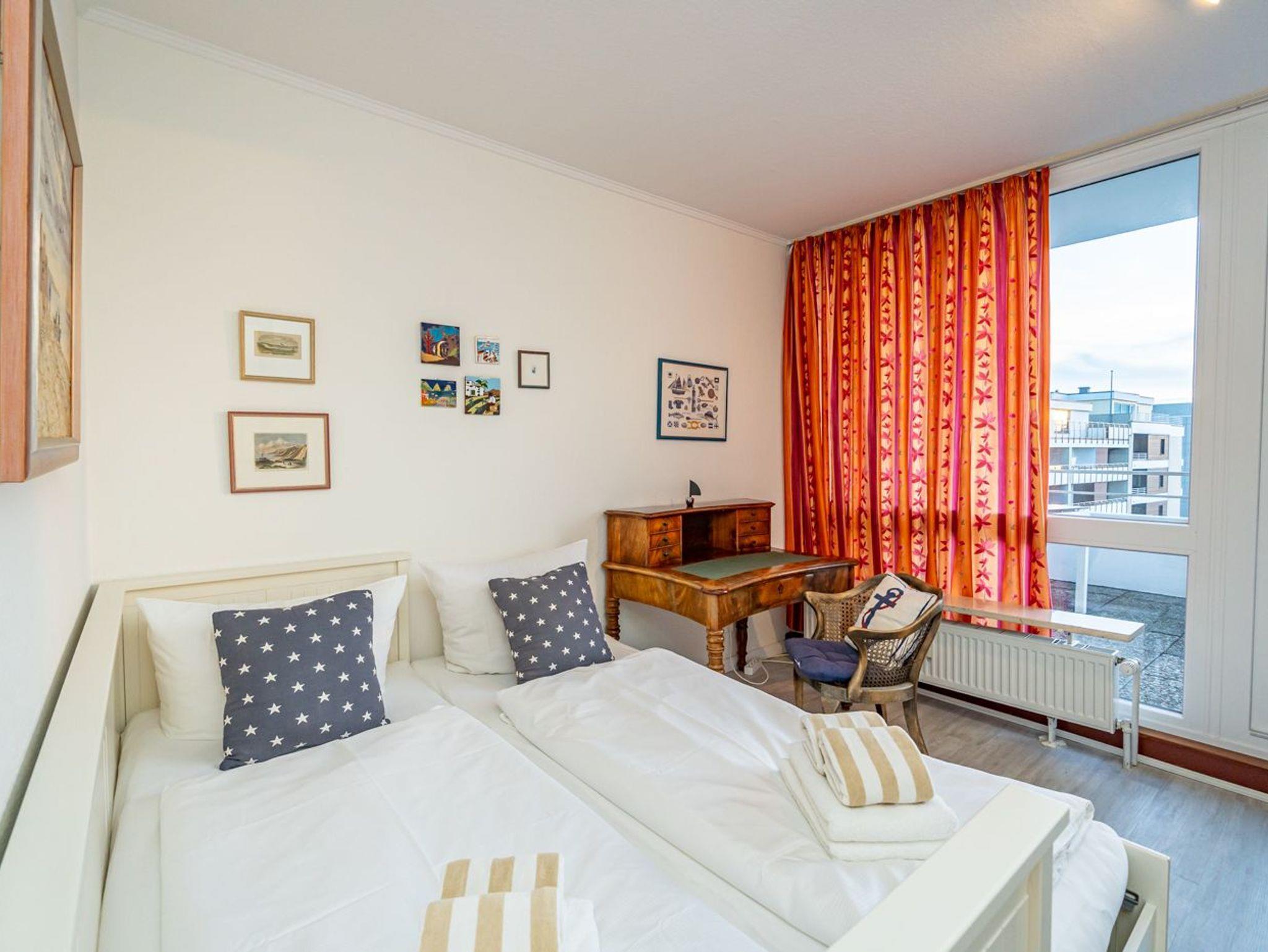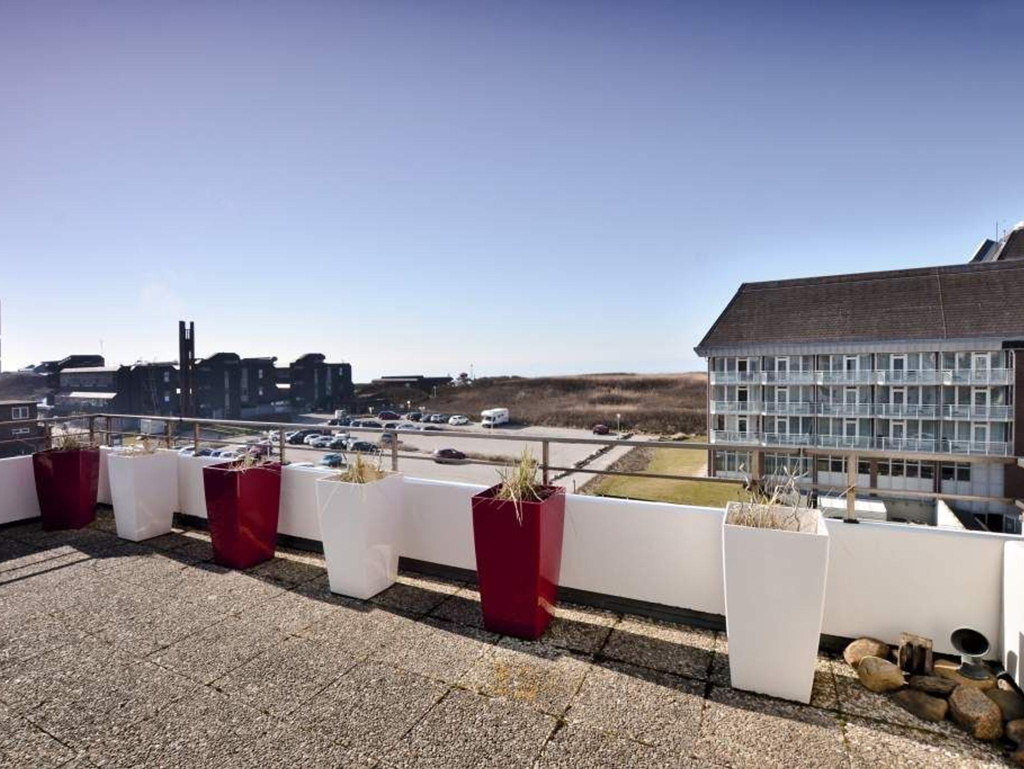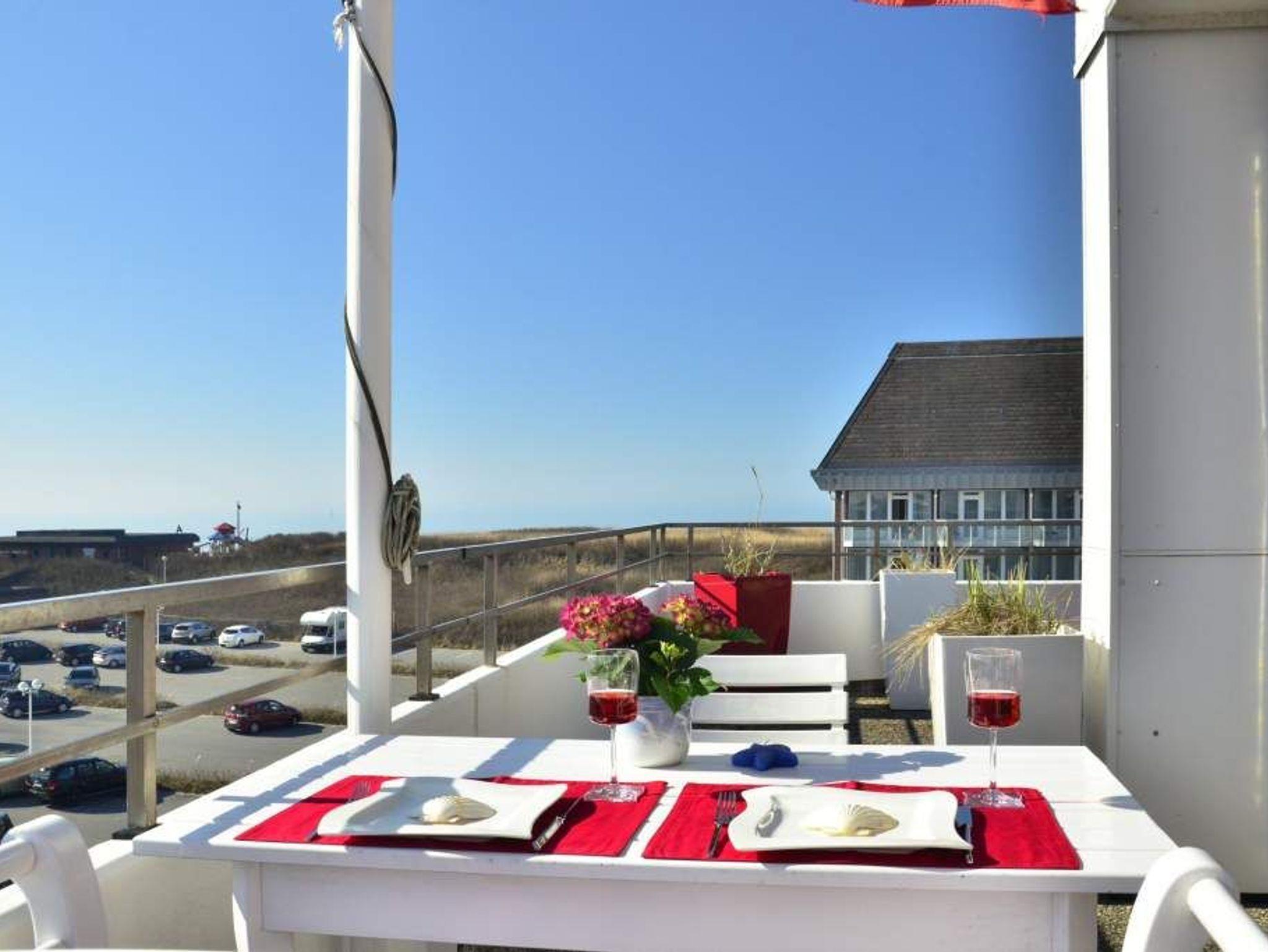 Es besteht aus 3 Zimmern für max. 3-4 Personen und hat eine Wohnfläche von ca. 75 m² im Staffelgeschoss des Hauses (wie 4. Etage). Die großzügige, umlaufende Dachterrasse mit Strandkorb (für 2 Personen) und Terrassenmöbeln bietet nahezu aus jeder Perspektive einen herrlichen Blick auf die Nordsee und die Dünen.