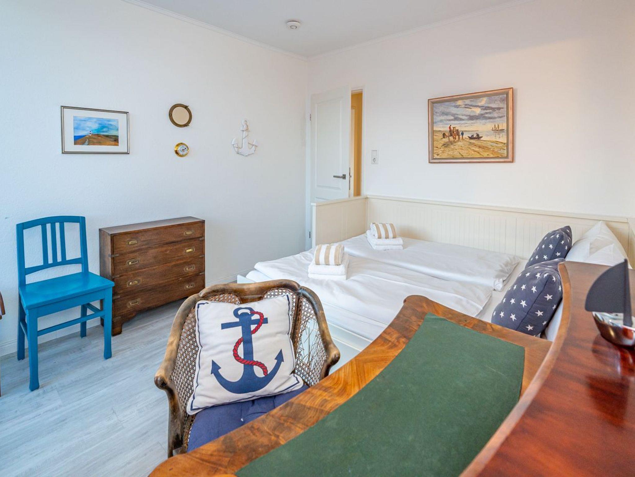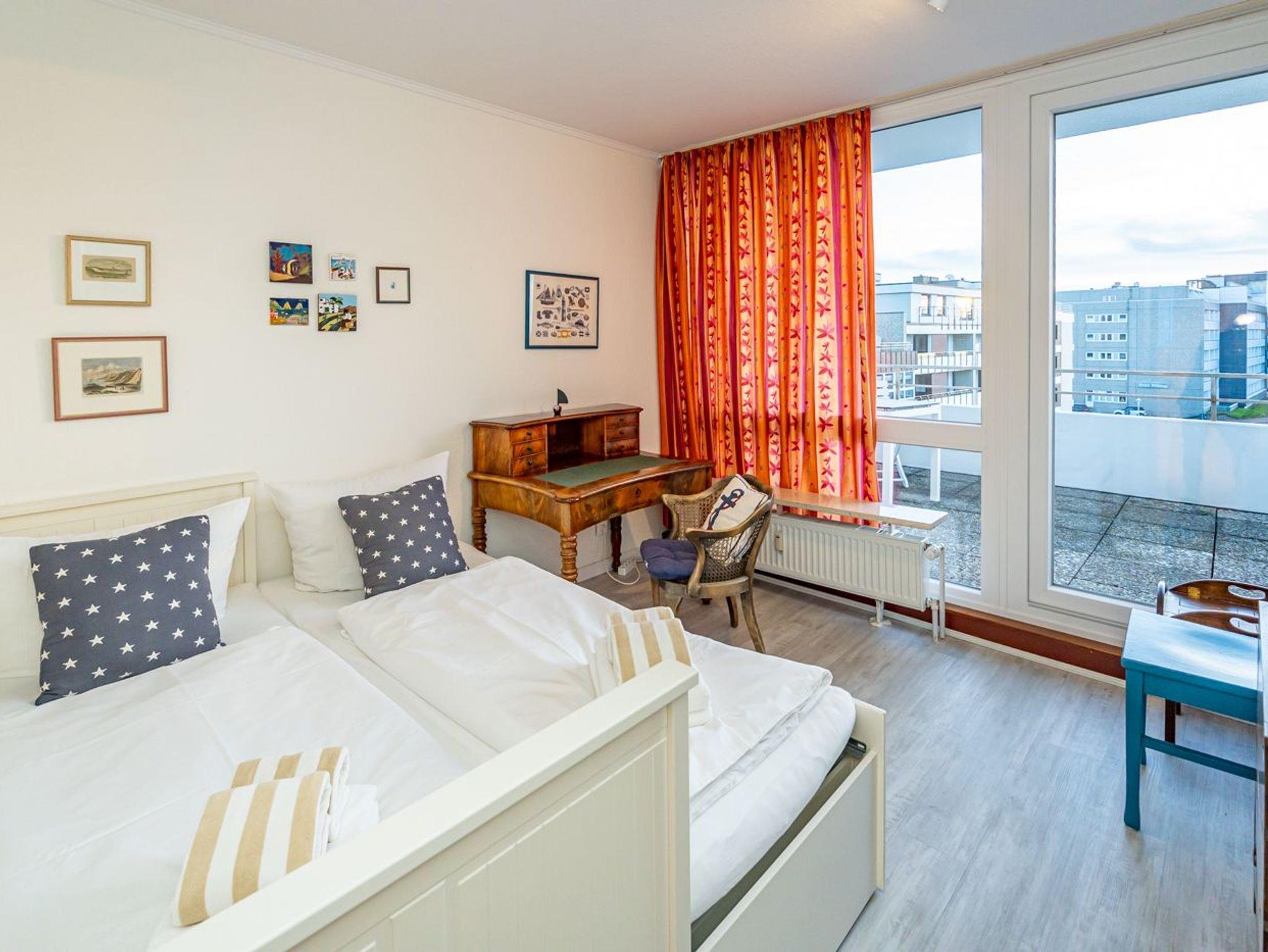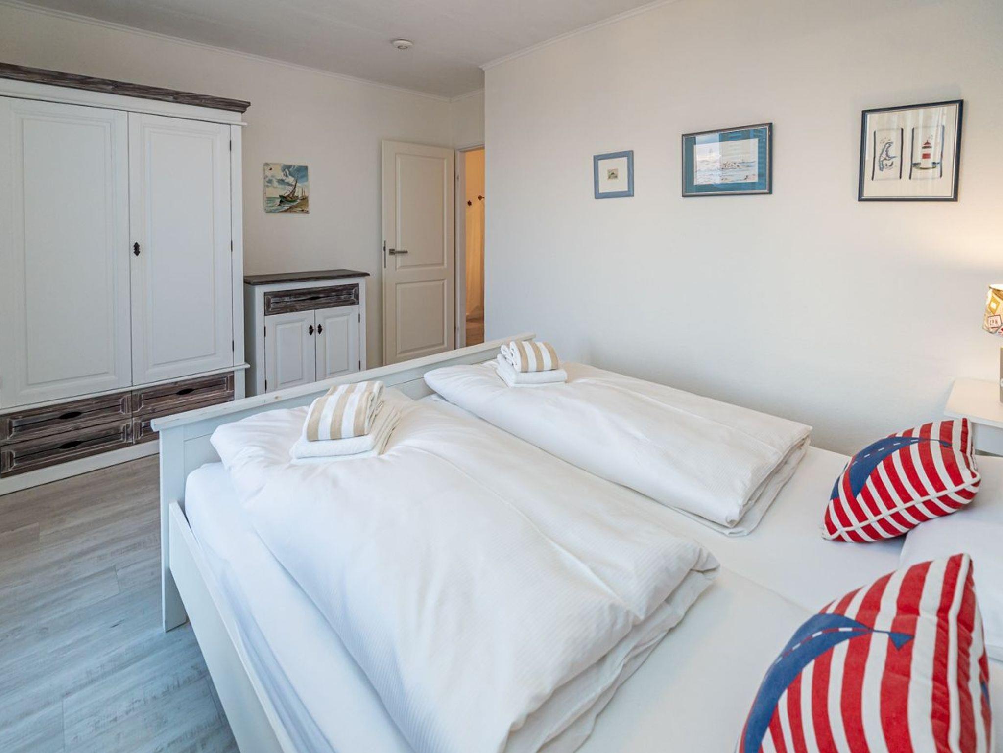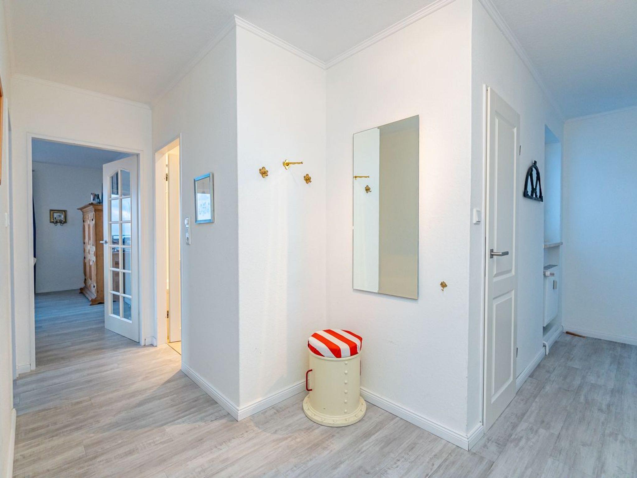 Es besteht aus 3 Zimmern für max. 3-4 Personen und hat eine Wohnfläche von ca. 75 m² im Staffelgeschoss des Hauses (wie 4. Etage). Die großzügige, umlaufende Dachterrasse mit Strandkorb (für 2 Personen) und Terrassenmöbeln bietet nahezu aus jeder Perspektive einen herrlichen Blick auf die Nordsee und die Dünen.