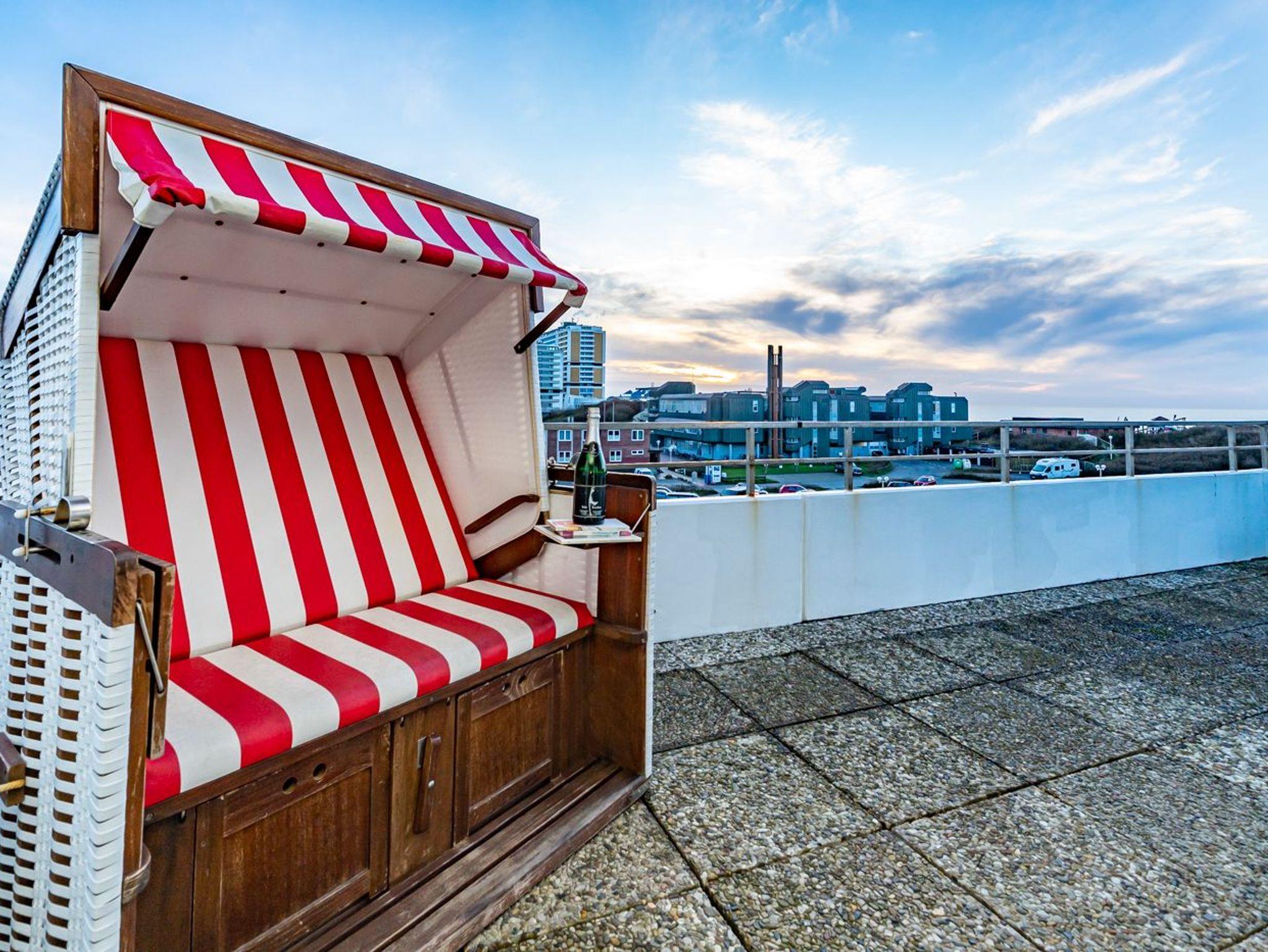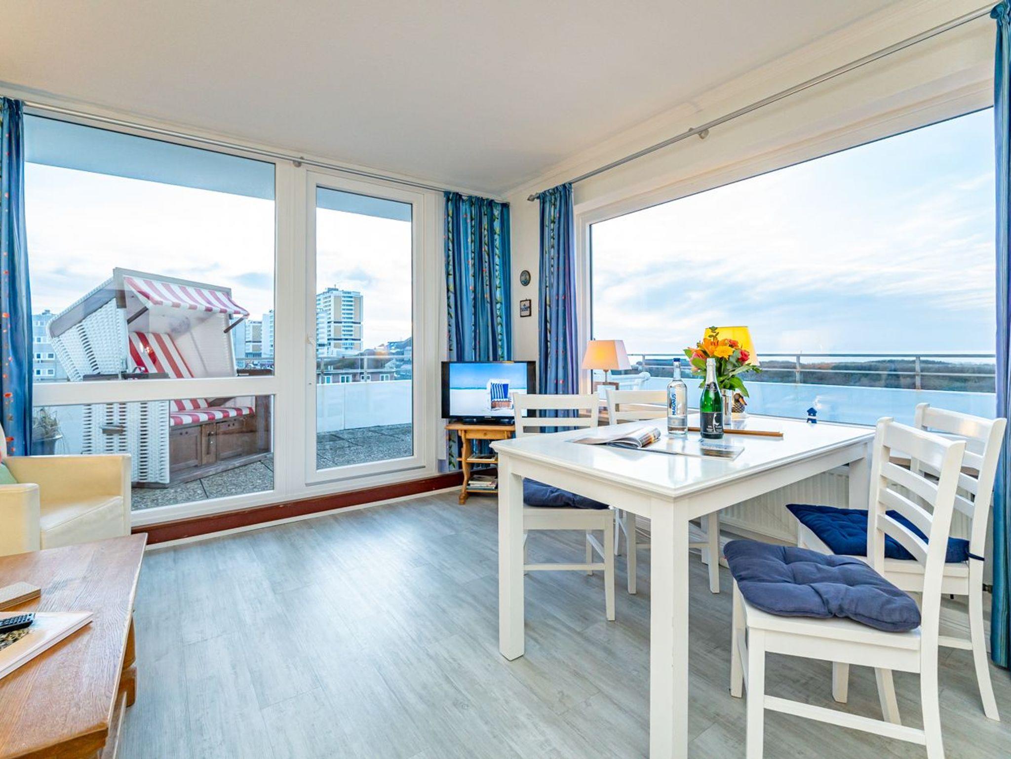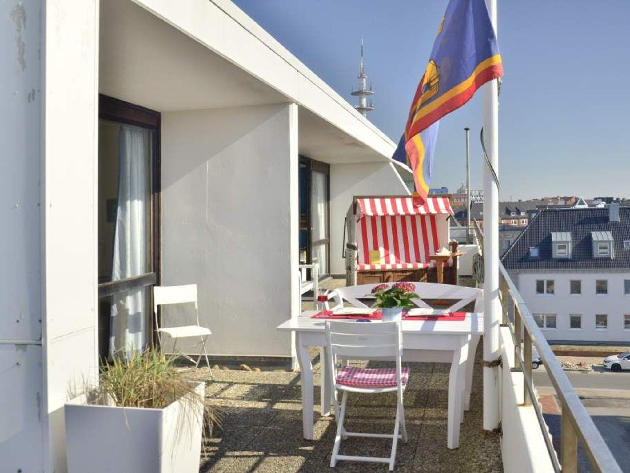 Dieses komfortable Penthouse mit grandiosem Meerblick und großzügiger, von Süden nach Westen umlaufender Dachterrasse gehört sicherlich zu den begehrtesten Ferienwohnungen in Westerland.