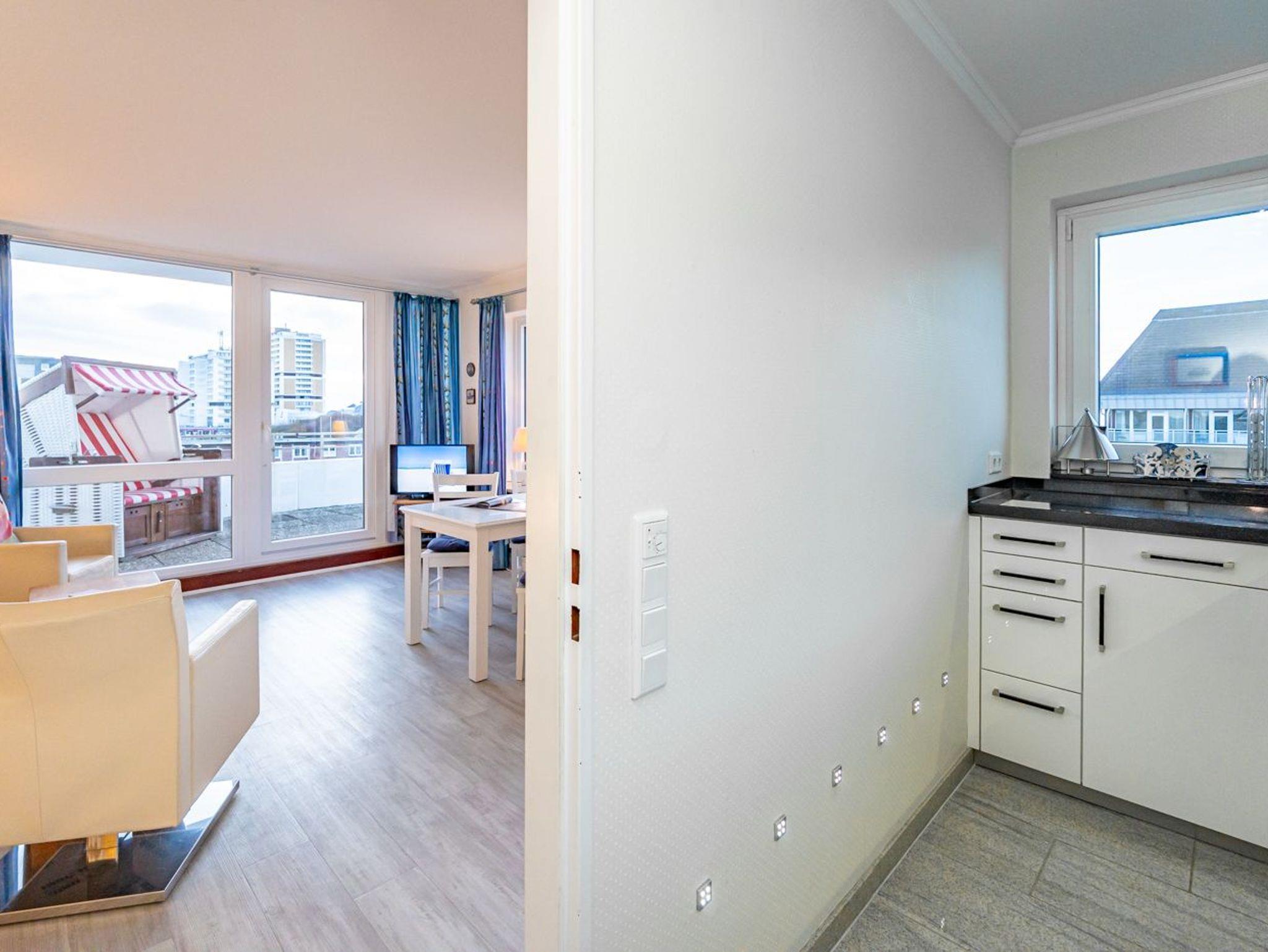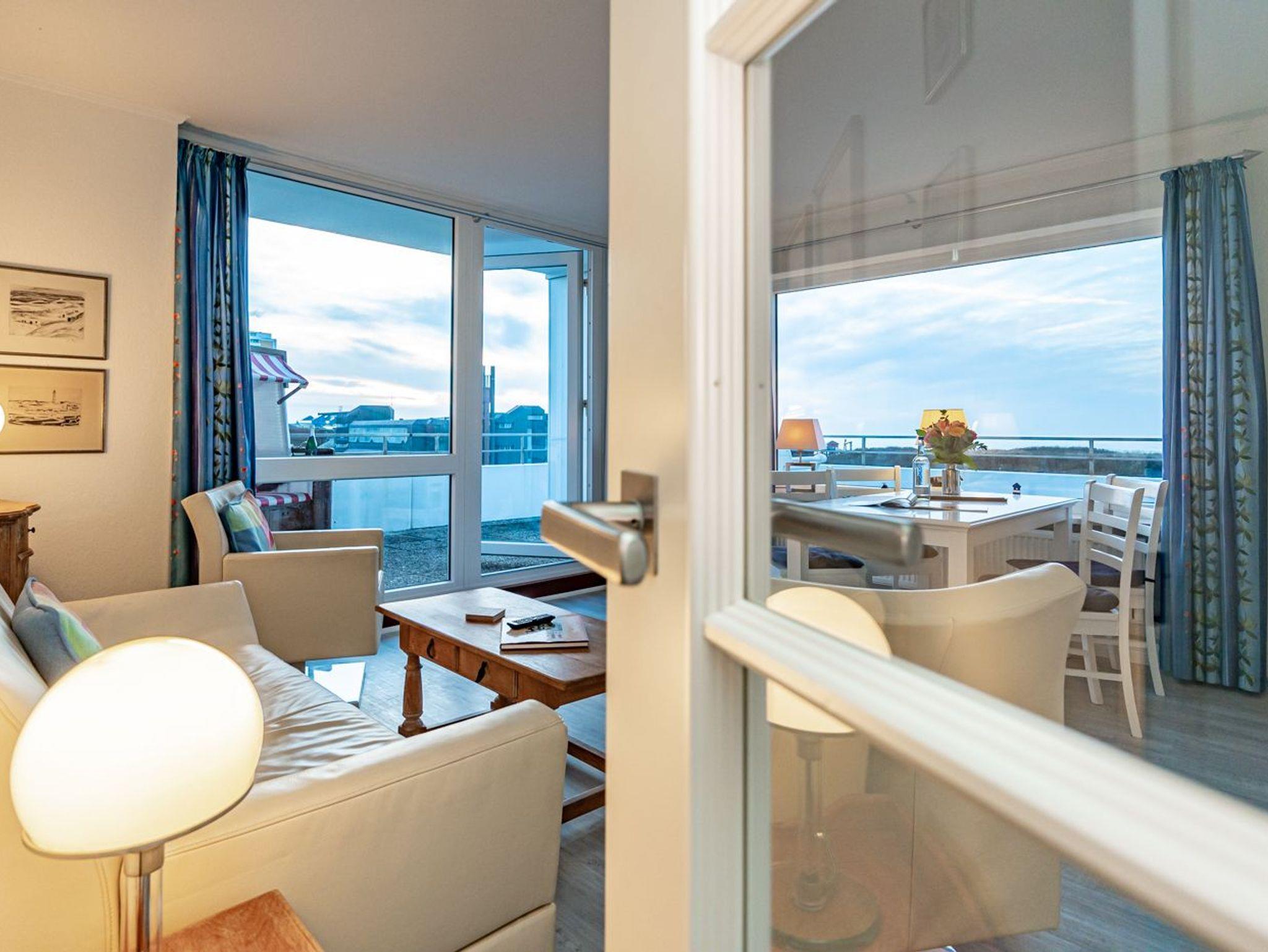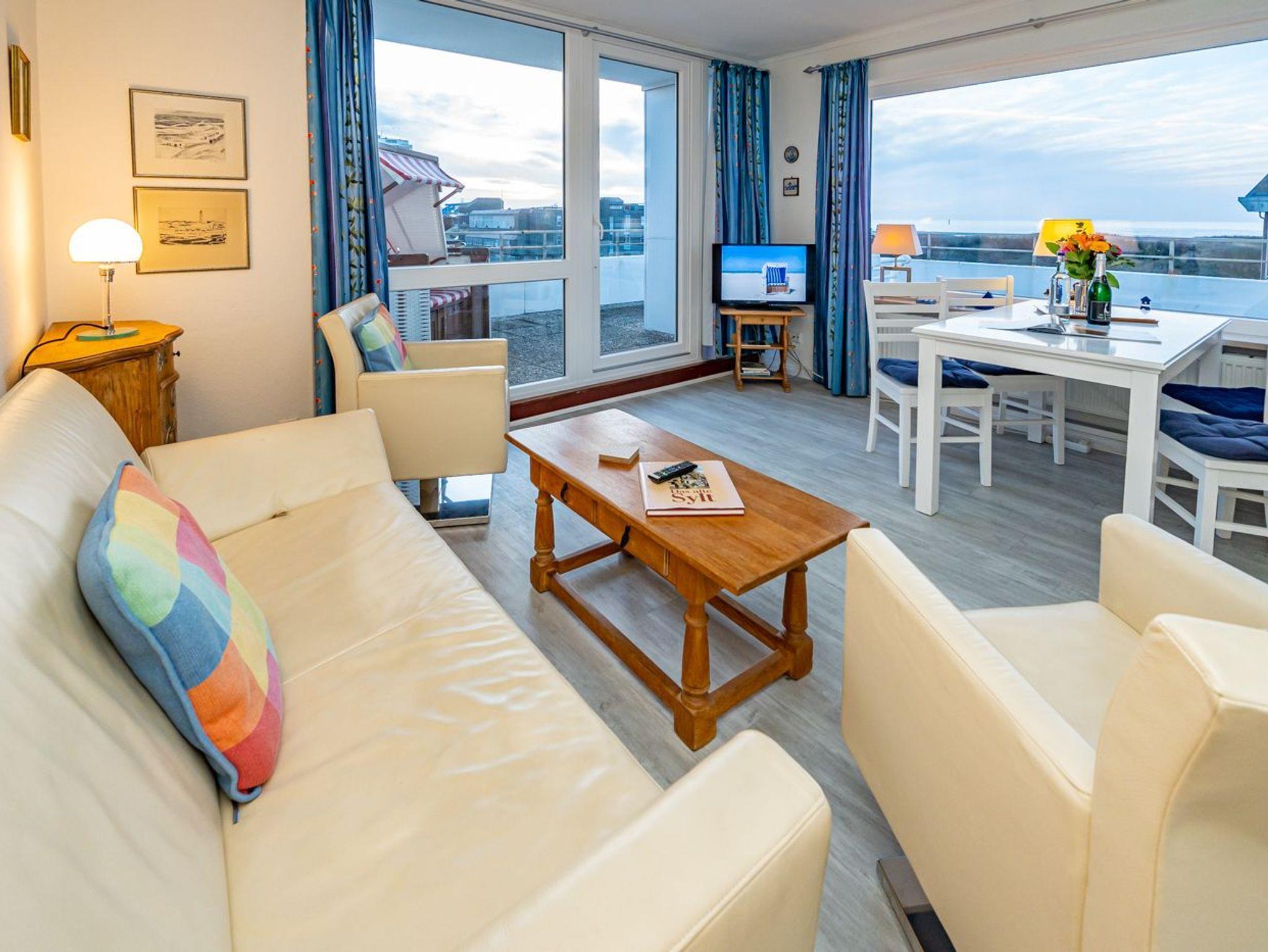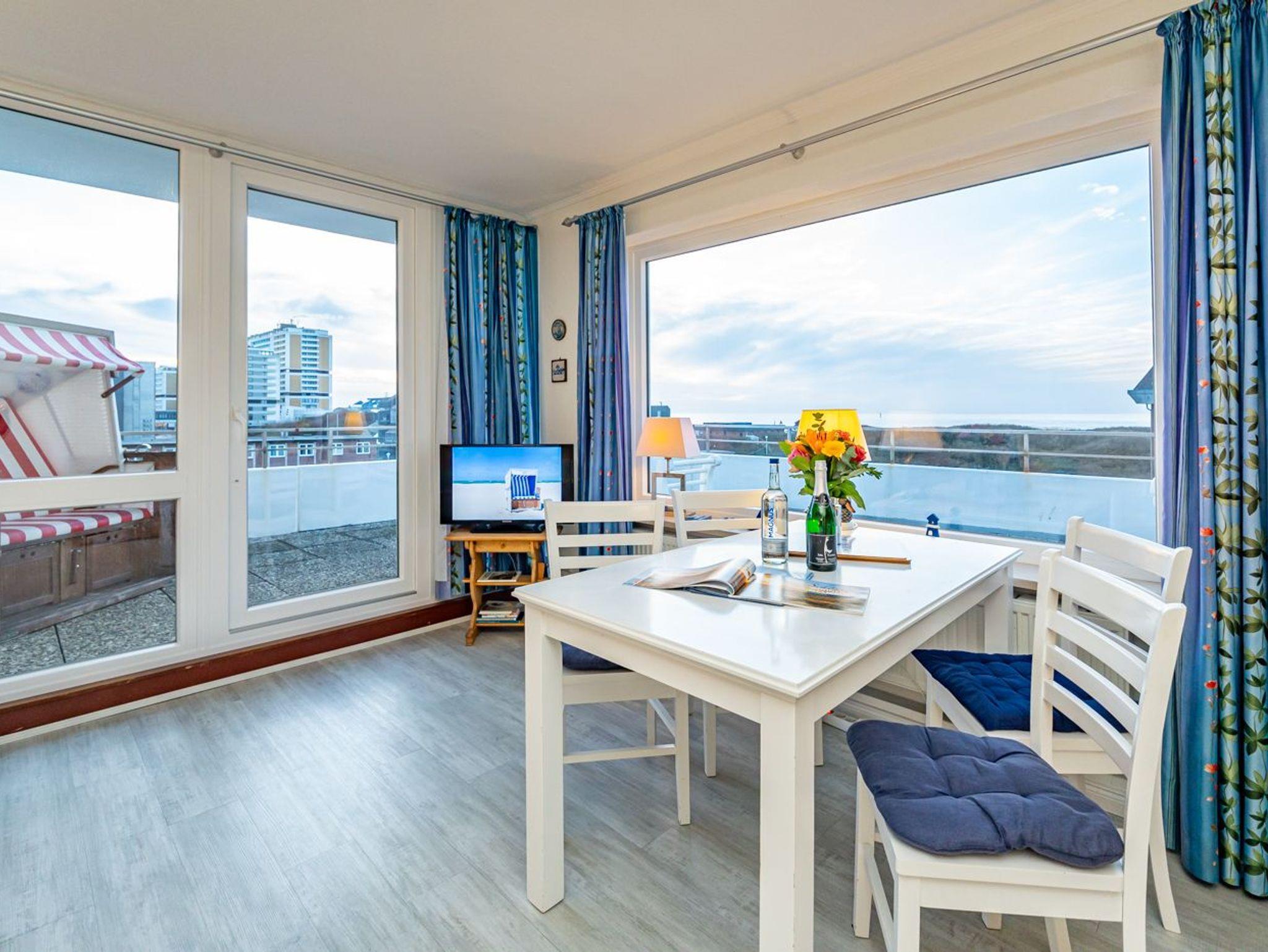 Dieses komfortable Penthouse mit grandiosem Meerblick und großzügiger, von Süden nach Westen umlaufender Dachterrasse gehört sicherlich zu den begehrtesten Ferienwohnungen in Westerland.