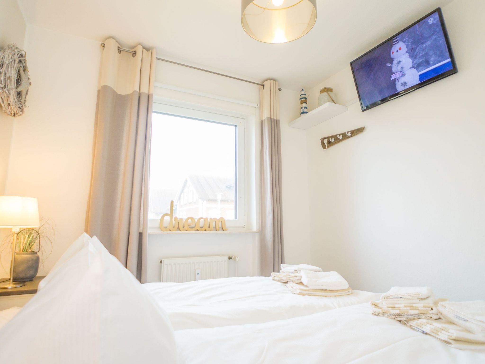 Das Schlafzimmer hat ein gutes, neues Doppelbett (durchgehende Matratze: 1,60 x 2,00m)und einen zusätzlichen Flachbild-TV.