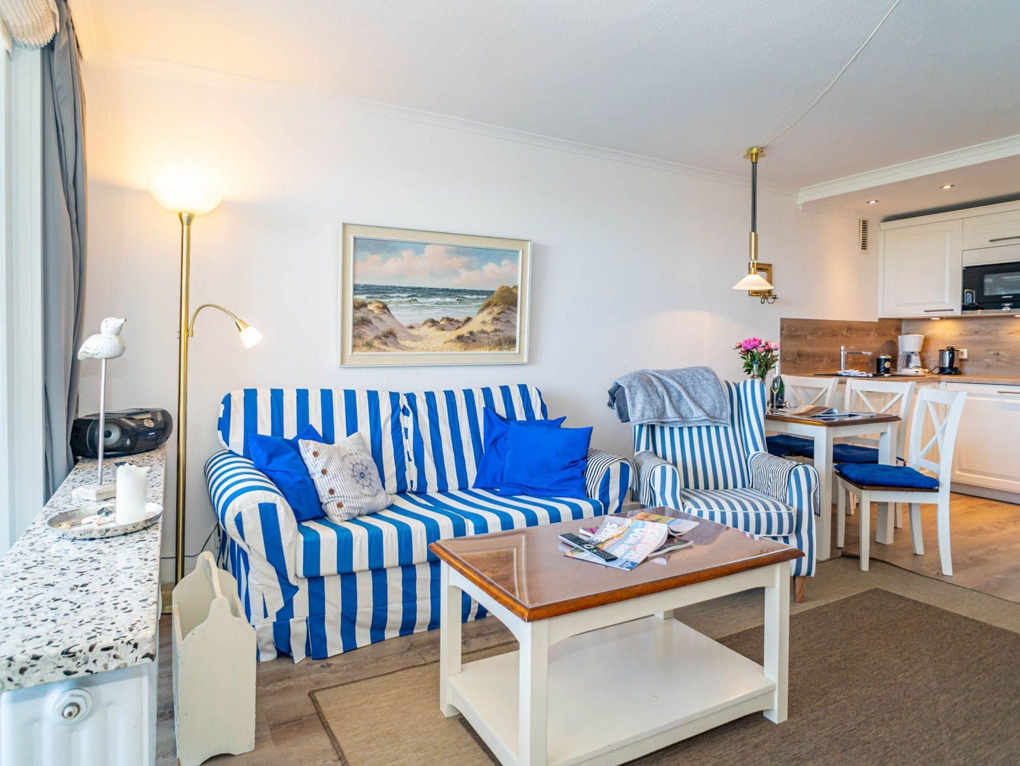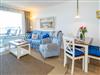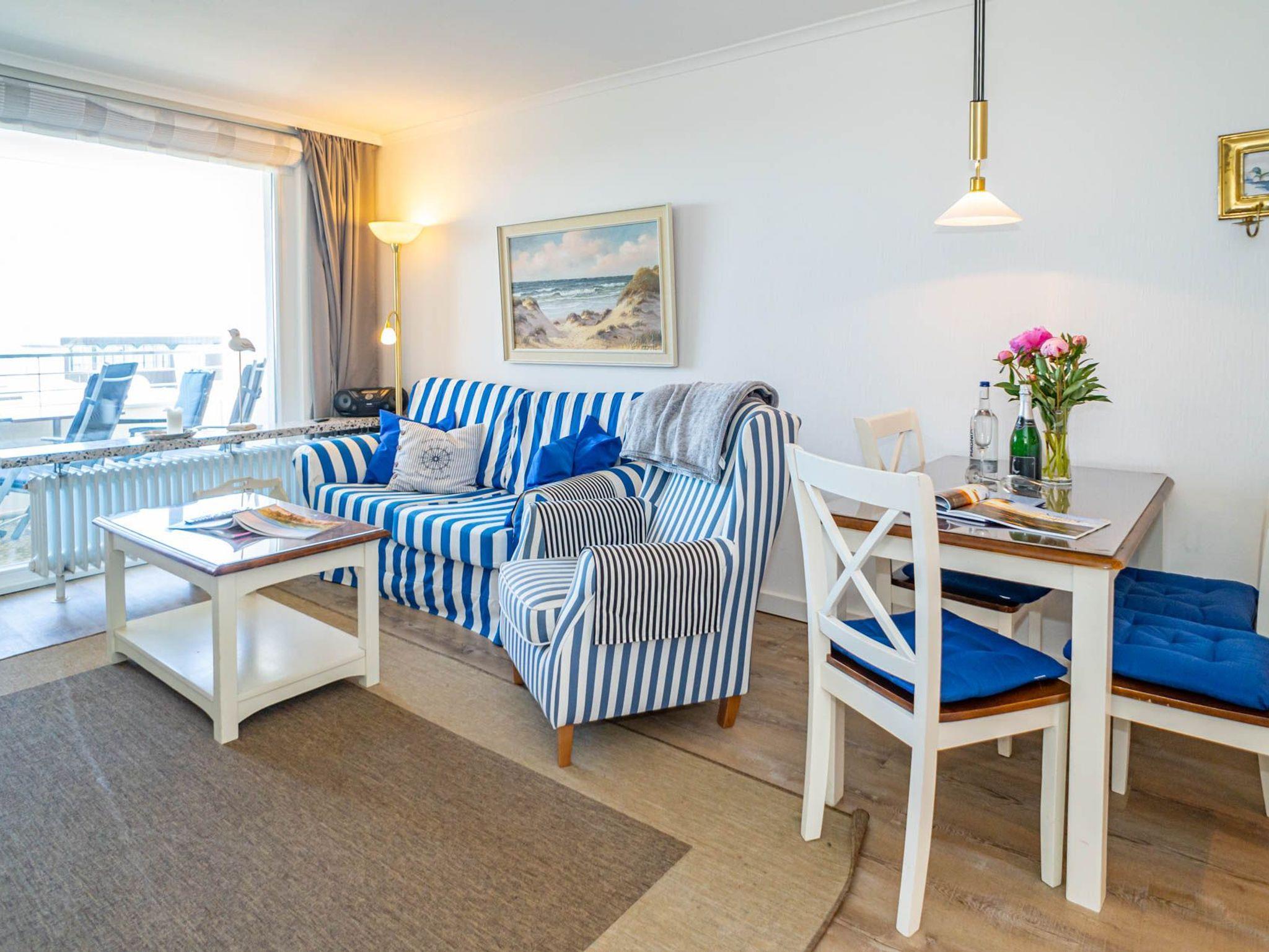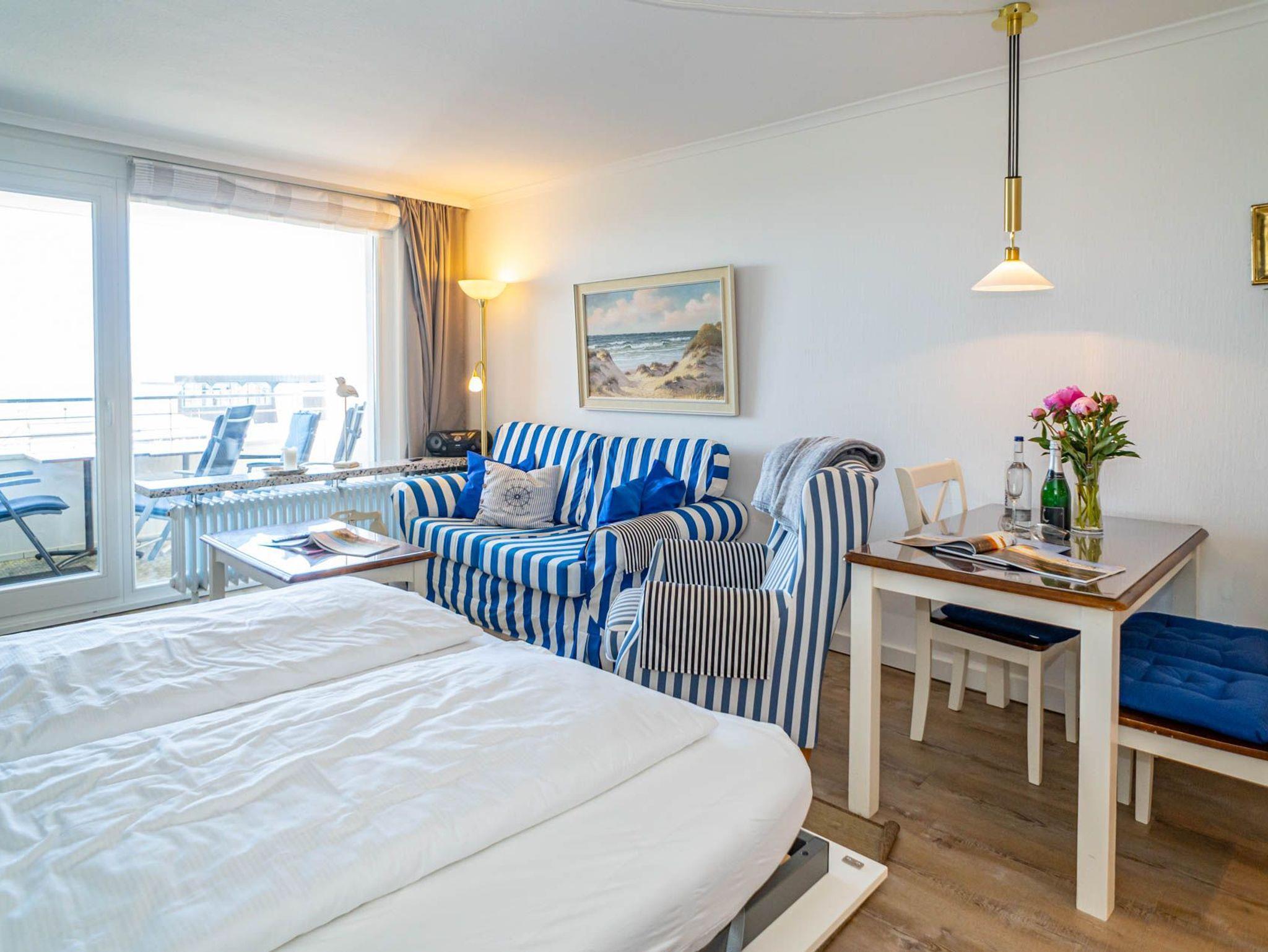Genießen Sie Ihren Aufenthalt in dieser modernisierten 1,5-Zimmer-Nichtraucherwohnung mit Meerblick! Die ca. 48 m² große Ferienwohnung liegt in der 4. Etage zur Seeseite und bietet Platz für bis zu 4 Personen. Die nach Westen ausgerichtete Loggia lädt mit Balkonmöbeln und Auflagen dazu ein, die Nachmittagssonne und den Blick aufs Meer in vollen Zügen zu genießen.