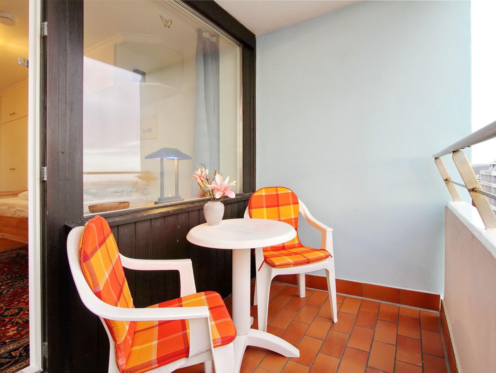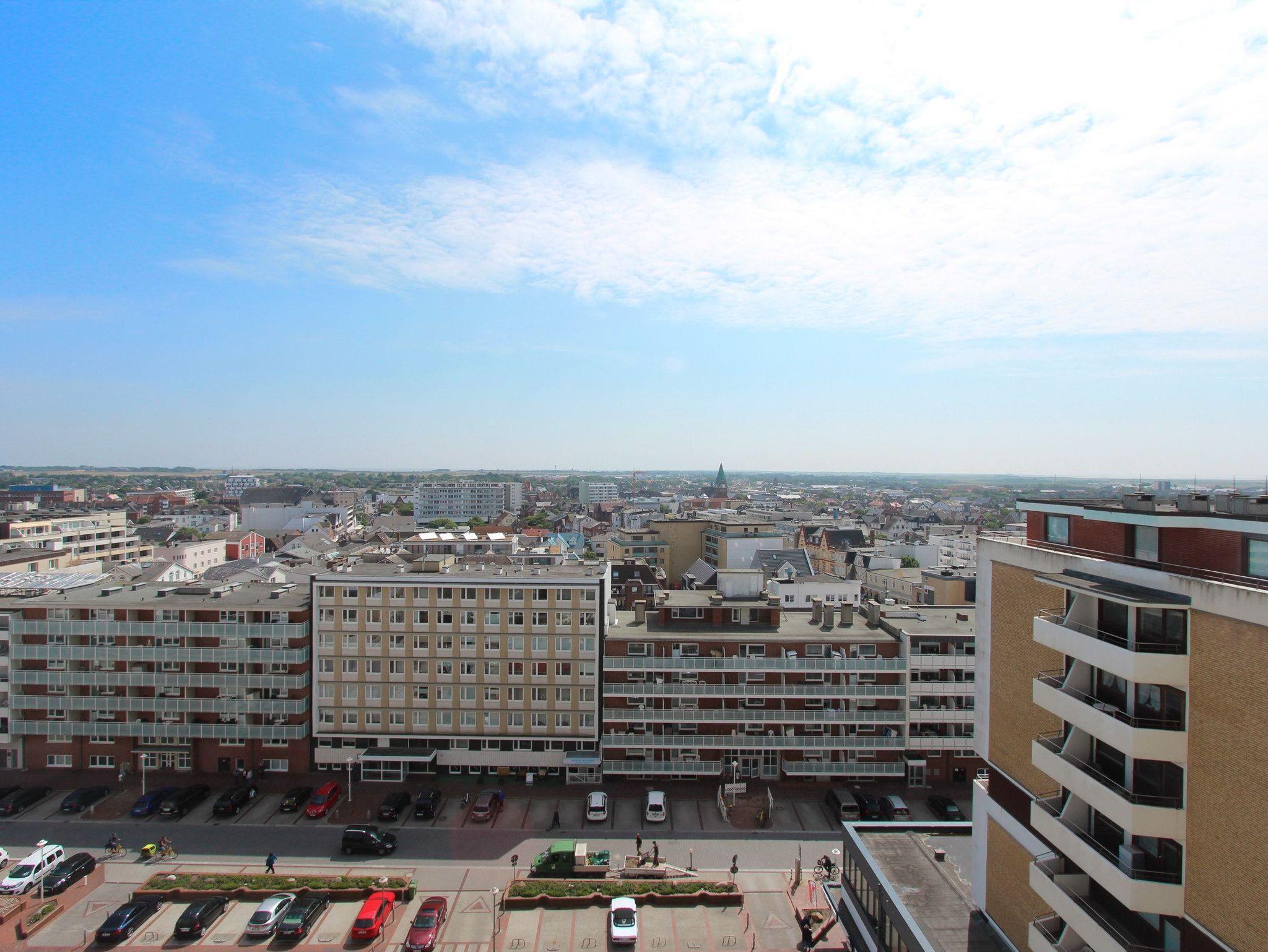 Sehr nette 1-Zimmer-Wohnung in der 9. Etage im Haus Metropol mit herrlichem Blick über die Stadt und die Insel - bei schönem Wetter schauen Sie bis zum nordfriesischem Wattenmeer und zum Festland. Der hell und freundlich gestaltete Wohn-/Schlafraum mit vorgelagertem Ostbalkon verfügt über ein Einzelbett, einem Essplatz mit 2 Stühlen und einem gemütlichen Sessel mit Fußhocker. In der, im Flur befindlichen, Küchenzeile finden Se einen Backofen, einen Herd mit 4 Platten, einen Geschirrspüler und ein Kühlschrank mit Gefrierfach und alles um sich selbst zu verpflegen. Modernes Badezimmer mit Eckdusche und WC. Zur technischen Ausstattung gehört ein Radio und ein Flachbild-TV. Nichtraucherwohnung. Das freie Wlan-Netz (WEG Haus Metropol - Passwortfrei - ohne Gewähr) können Sie kostenfrei nutzen. Wohnungsgröße ca. 23 m².