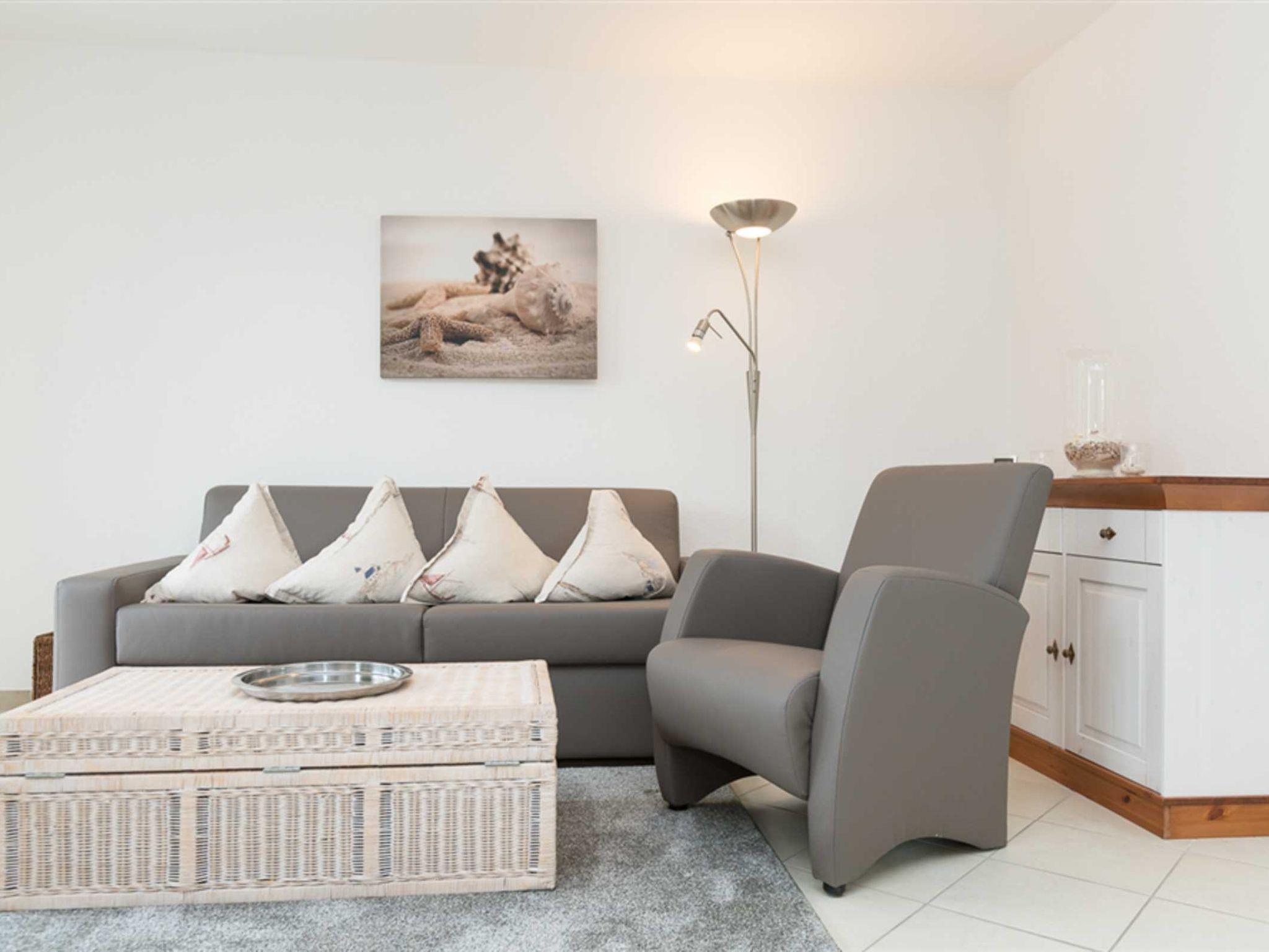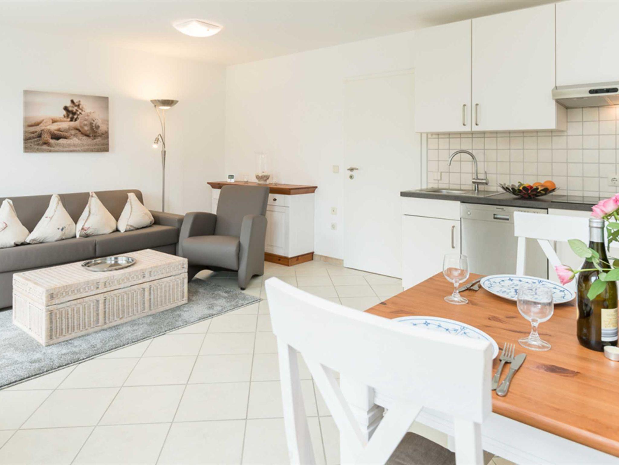 Das komplett renovierte 2 Zimmer Appartement befindet sich in absolut ruhiger Lage. Ihr Domizil verfügt über einen kleinen Flur mit Garderobe, einem Duschbad/WC, einem großzügigen gefliesten Wohnraum, neuer Küchenzeile, einem Essplatz und einer gemütlichen Sofaecke mit 2 Sesseln und großem Flat-TV. Vom Wohnzimmer aus gelangen Sie auch zur Süd-Terrasse, die mit Gartenmöbeln und Strandkorb ausgestattet ist!