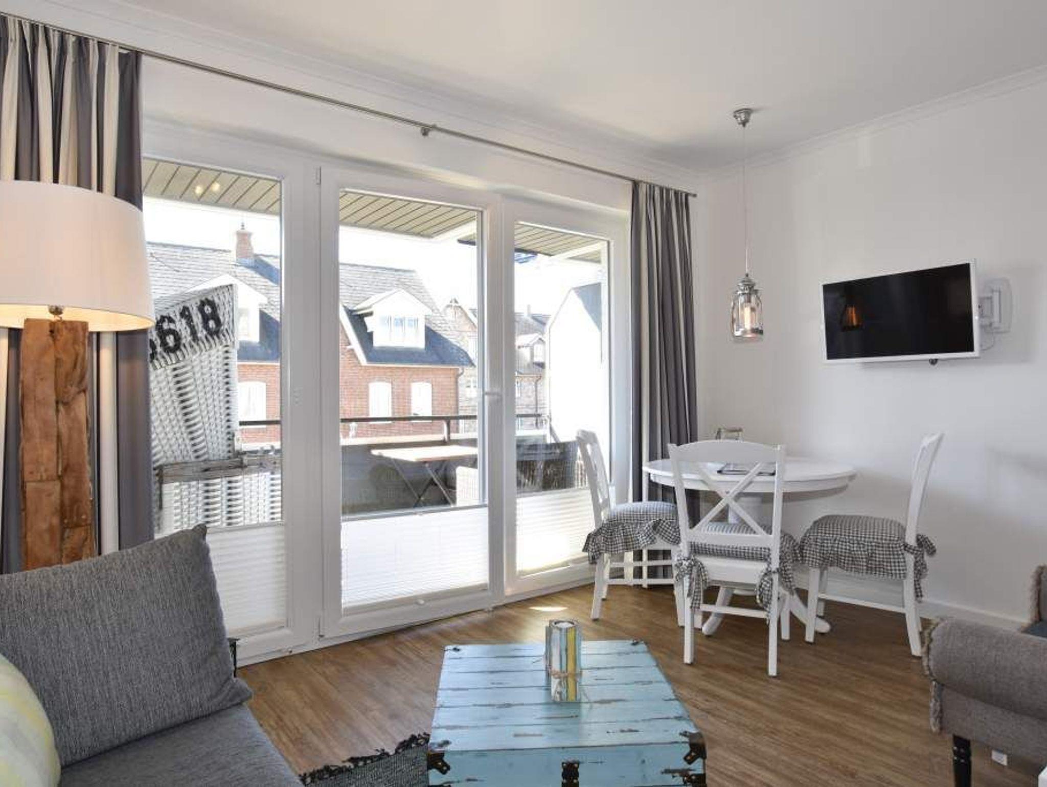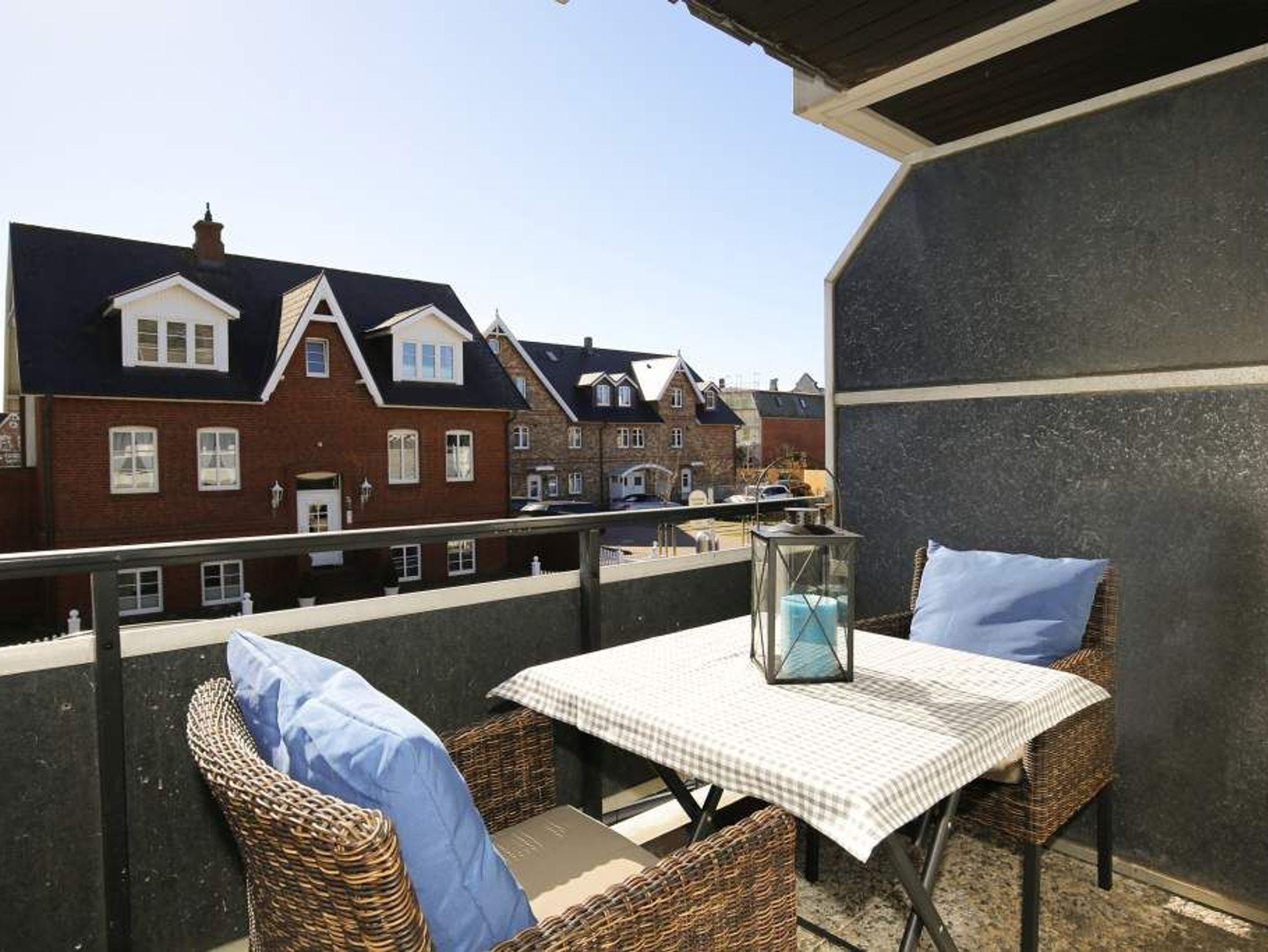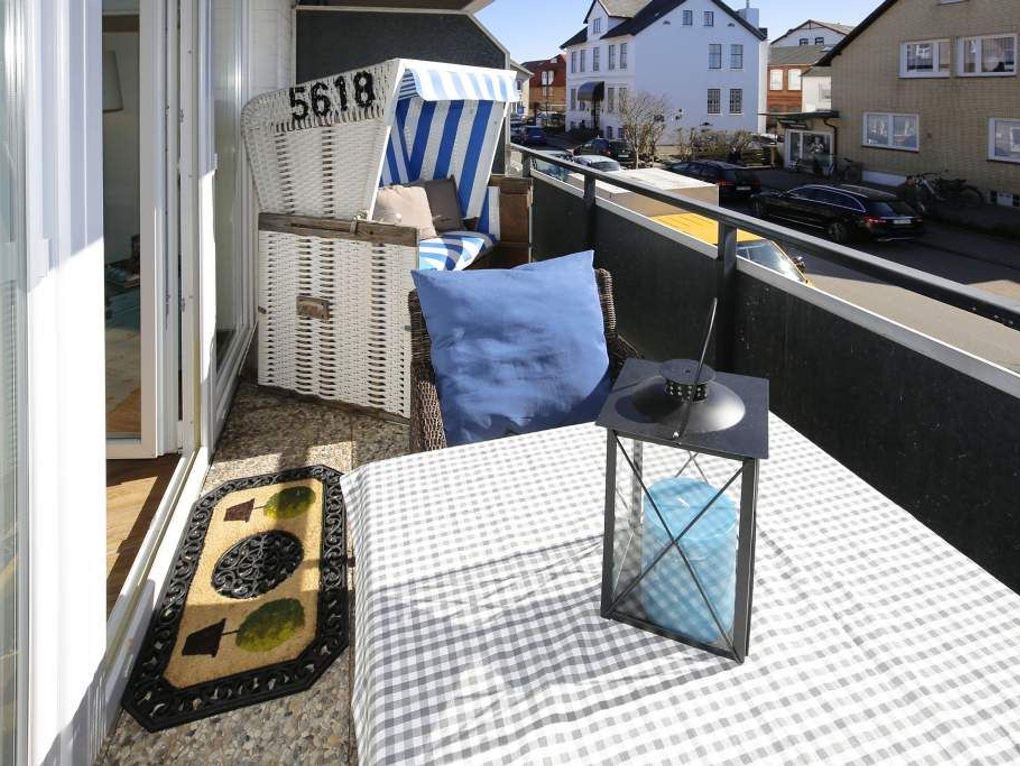 Ein Highlight ist der großzügige Südbalkon mit bequemer Sitzgarnitur und eigenem Strandkorb hier genießen Sie Sonne satt und sogar einen freien Blick bis zur Düne am Weststrand.