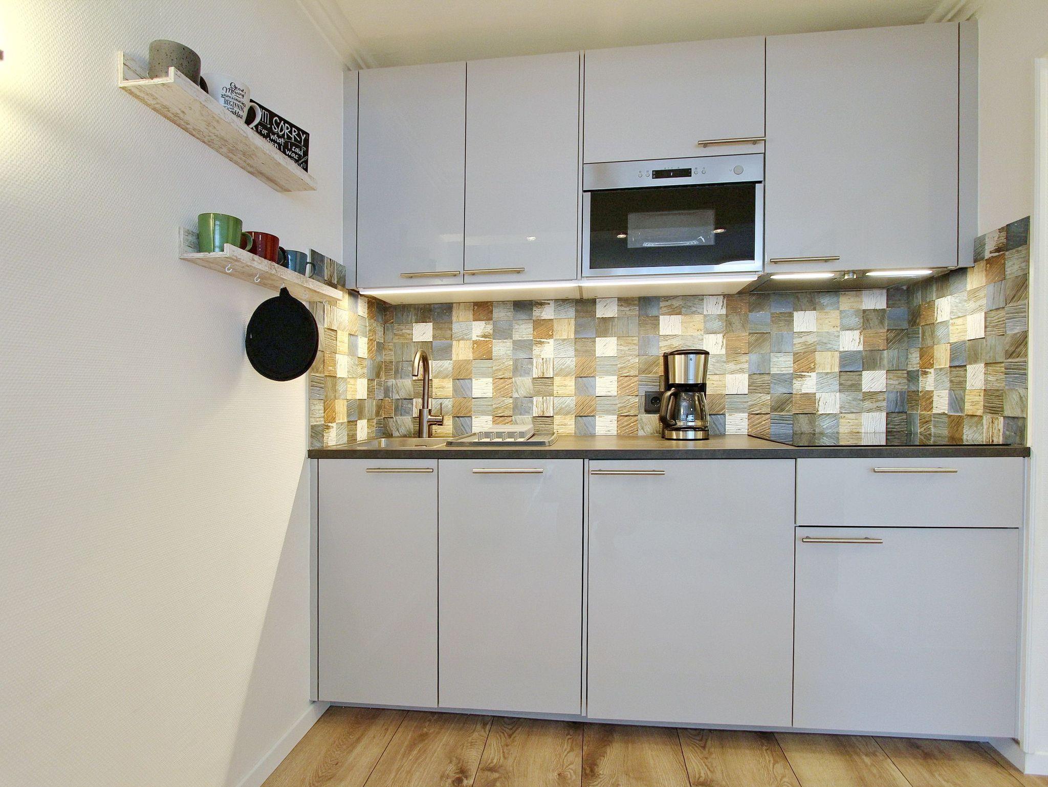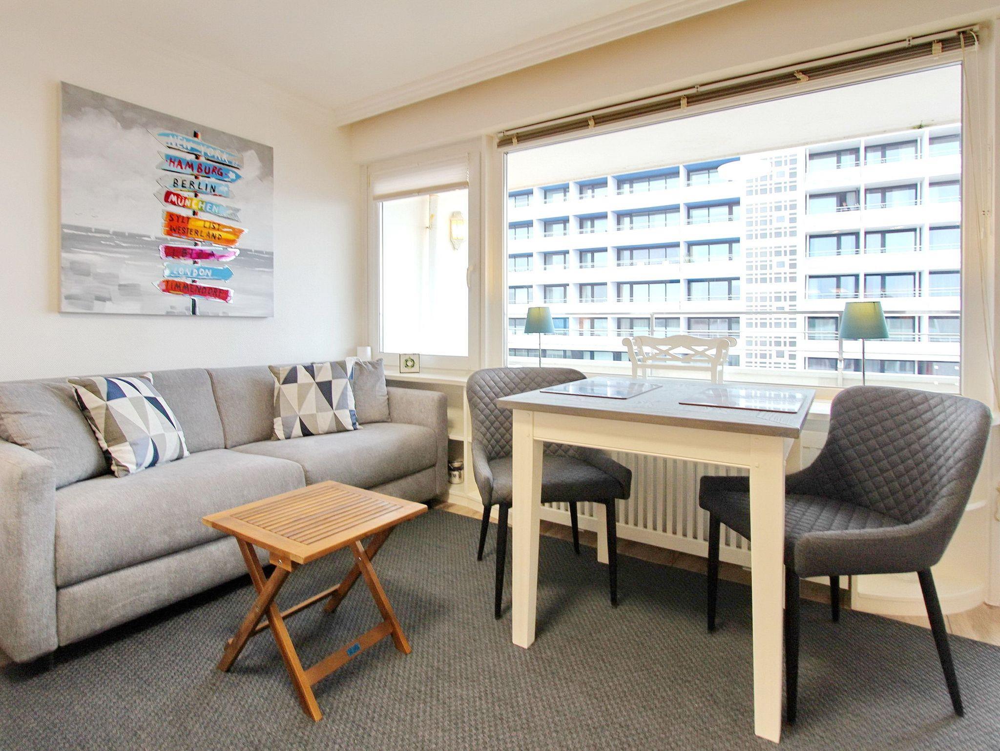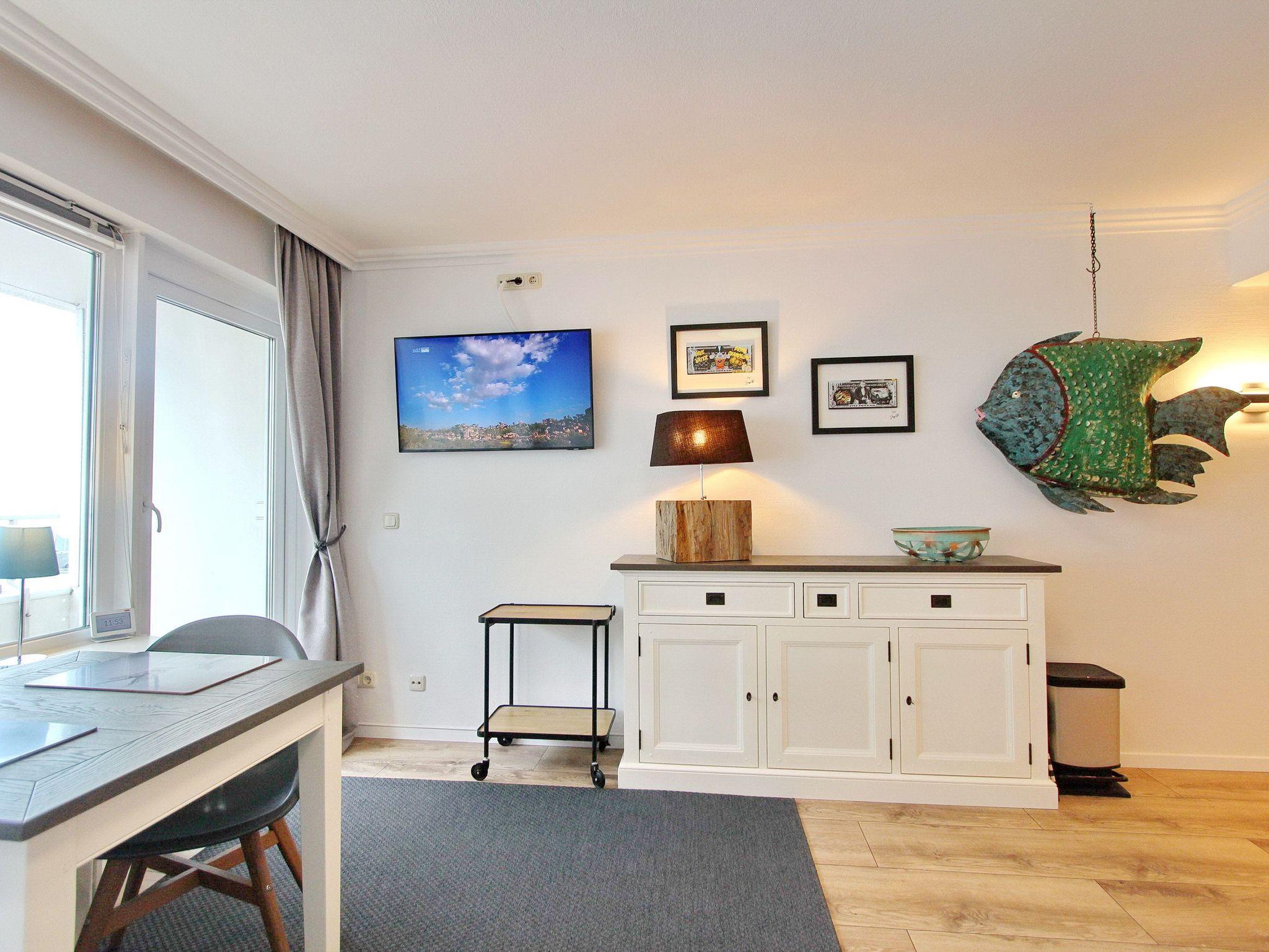 Modern und exklusiv eingerichtete 1 Zimmer-Wohnung im Herzen unserer Inselmetropole Westerland. Von der Wohnung und vom vorgelagerten Balkon zur Westseite haben Sie einen traumhaften Blick die Strandstraße hoch auf die Nordsee. Der kombinierte Wohn-/Schlafraum verfügt über ein feststehendes Doppelbett, einer gemütlichen Couchgarnitur und einem Essplatz mit zwei Stühlen. In der Küchenzeile, die ebenfalls im Wohnzimmer integriert ist, finden Sie eine Mikrowelle, einen Geschirrspüler, ein großes Induktion-Cerankochfeld und einem Kühlschrank mit Gefrierfach. Modernes Duschbad/WC mit einer Eckdusche mit tiefen Einstieg und einem Handtuchheizkörper. Smart-TV. Der Eigentümer hat ein eigenen Internetzugang ( Zugangsdaten in der Wohnung), der es Ihnen ermöglicht zu streamen oder zu arbeiten oder was das Herz begehrt. Haustiere sind nicht erlaubt. Nichtraucherwohnung. Wohnungsgröße ca. 31m²