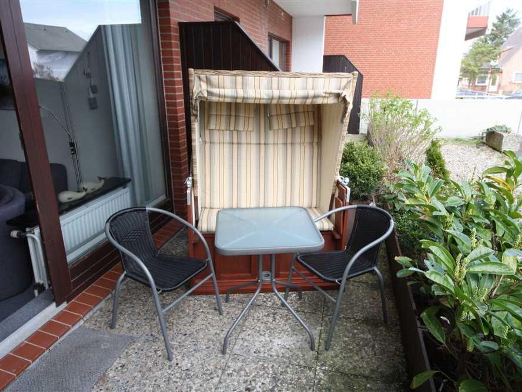 Die Unterkunft liegt im EG und hat eine möblierte Terrasse nach Osten. Das 1-Zimmer Appartement. hat nun auch noch einen wunderschön wohnlichen Fliesenbelag durchgängig erhalten.