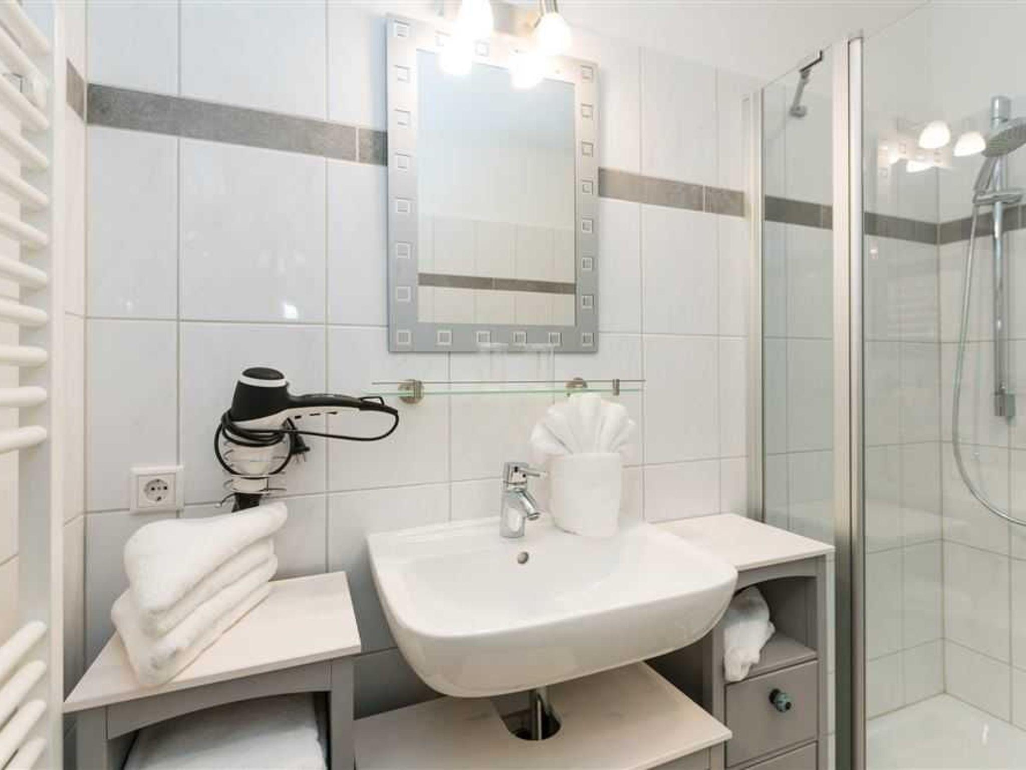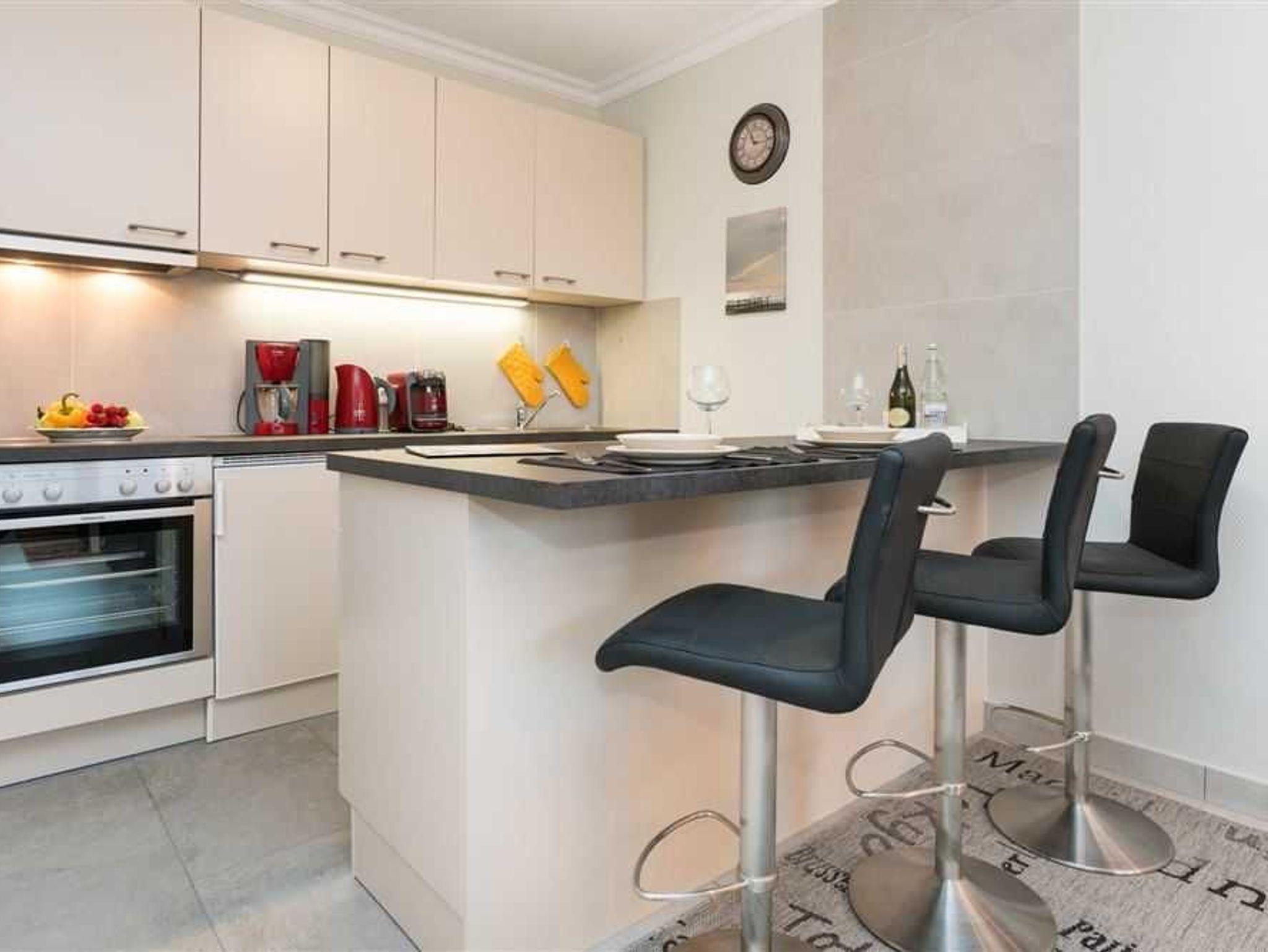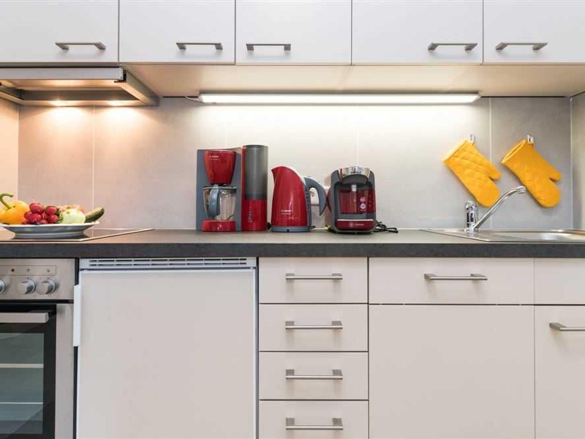 Das Duschbad/WC wurde komplett neu saniert. Zudem hat das Appartement eine top-moderne Küchenzeile , welche keine Kochwünsche offen lässt. Eine weitere Besonderheit ist die großzügige Theke mit 3 Stühlen, die sich direkt an der Küchenzeile befindet. Die Wohnung verfügt außerdem über ein neues und modernes Doppelschrankbett, einer neuen Couchgarnitur, sowie über zwei bequeme neue Sessel. Flat-TV und CD-Player/Radio stehen selbstverständlich zur Verfügung. Zu der Wohnung gehört der Außenstellplatz Nr. 86