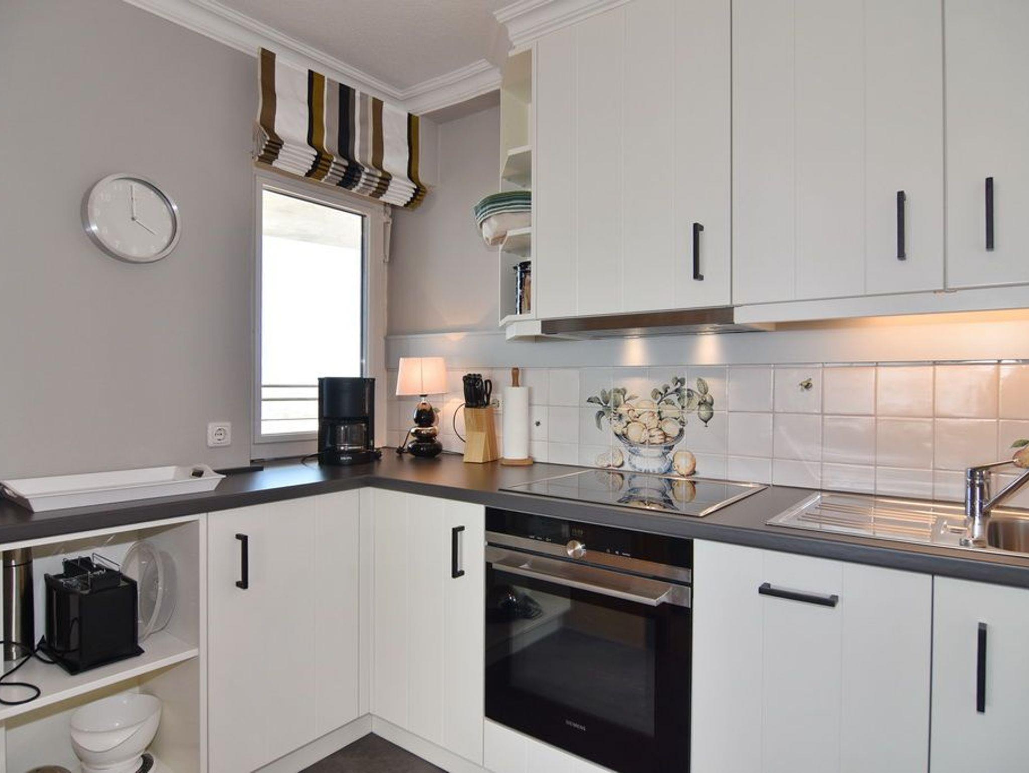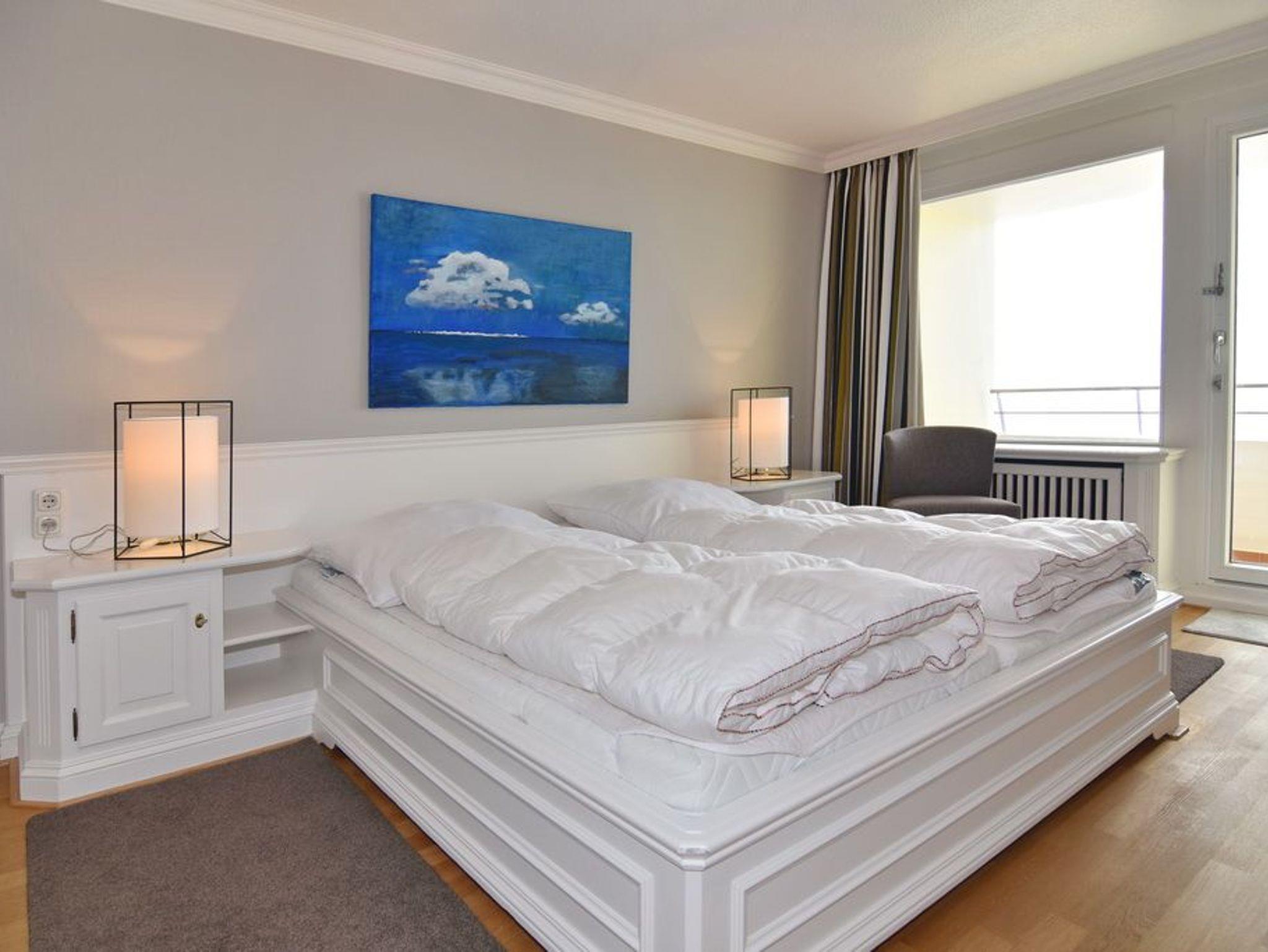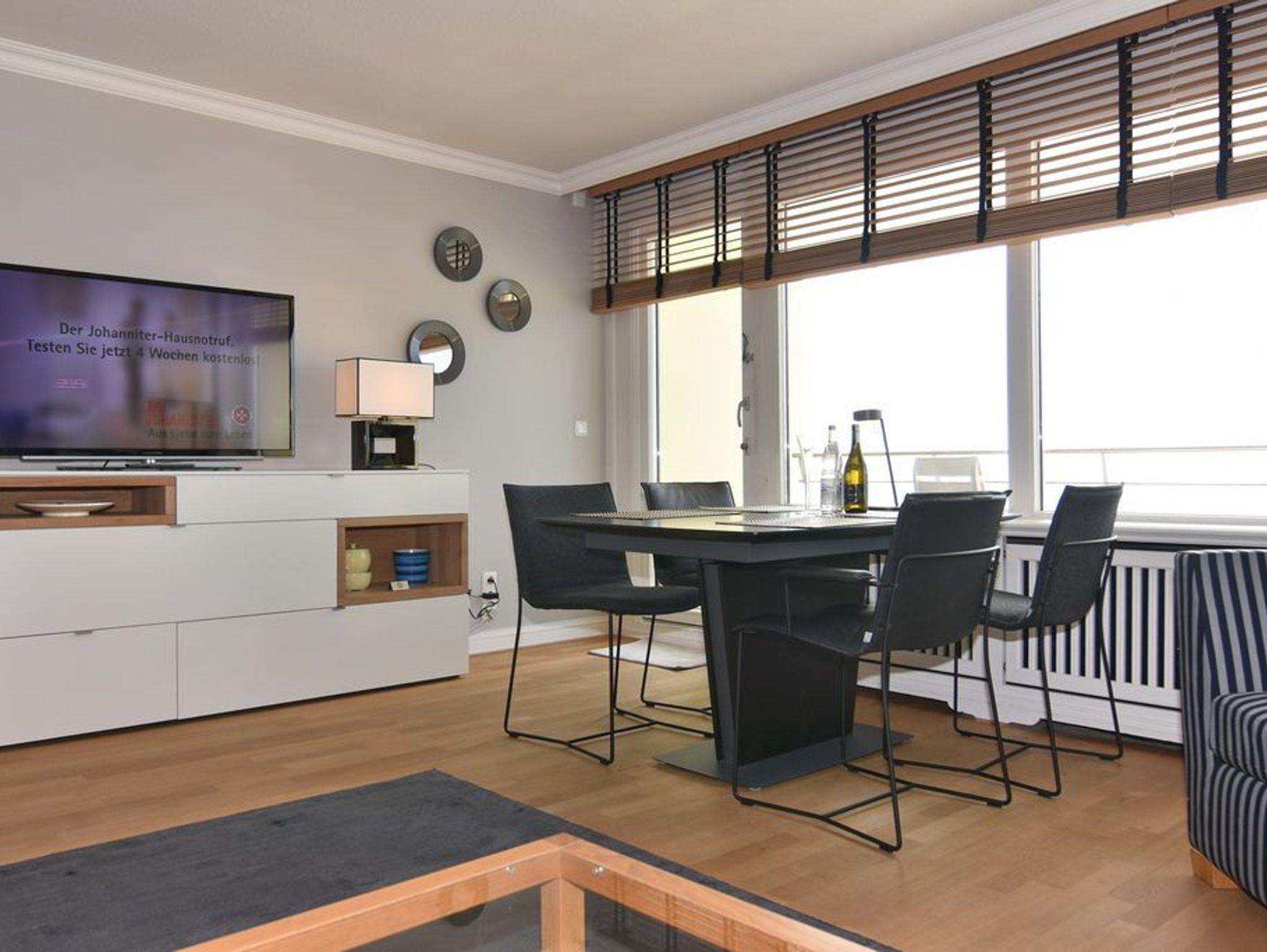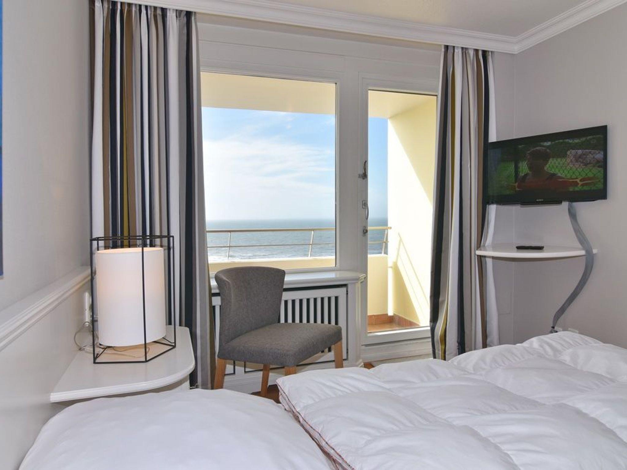 . Exklusive 3-Zimmer-Ferienwohnung im 11. Stock des Haus Metropol. Nichtraucher-Whg.![nbsp][nbsp]Wohnzimmer mit großzügiger Couch und Sessel, Eßplatz am Fenster mit Blick auf das Meer, TV, Radio, WLAN (ohne Gewähr),[nbsp][nbsp]separate Küche mit Geschirrspüler und Backofen. Vom Wohnzimmer gelangen Sie auf den West- und Nordbalkon, beide bieten einen herrlichen Meeresblick. Für die Ruhestunden bietet die Wohnung ein großes Schlafzimmer mit Doppelbett (180x200), Einbauschränken, Flachbild-TV, eigenem Westbalkon mit Meeresblick und Vollbad ensuite. Vom zweiten Schlafzimmer mit 2 Einzelbetten (90x200) und Einbauschrank gelangen Sie über den Flur ins Duschbad/WC. Tierhaltung und Rauchen sind hier nicht gestattet. Der dazugehörige Garagen-Stellplatz (10/T03) kann bei Buchungsabschluss zu € 15,--/Nacht gebucht werden. Waschküche und Fahrradkeller befinden sich im Haus. Bettwäsche und Handtücher sind zur Anreise aufgezogen..