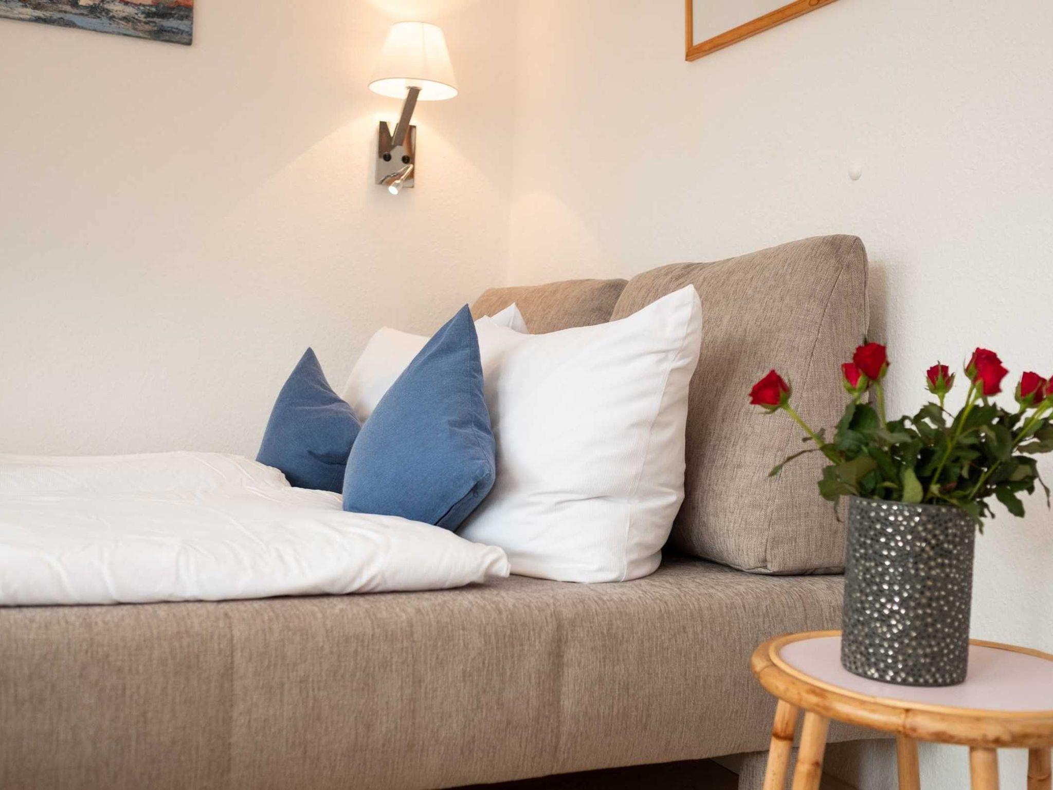 Geräumige 1-Zimmer Wohnung mit sehr ansprechendem Ambiente. Alle Accessoires sind farblich maritim abgestimmt. Im kombinierten Wohn/-Schlafbereich ist ein moderener Designfußbodenbelag verlegt, alle anderen Räume sind gefliest. Sie schlafen auf einer neuen, modernen Schlafcouch mit Lattenrosten und Federkern (Liegefläche von 160 x 200 cm) Vor der Fensterfront steht eine gemütliche Rattansitz-/Essecke , mit anschließendem Balkon. Zusätzlich finden Sie eine kleine Diele, Gaderobenablage. Die kleine neue Küche ist unter anderem ausgestattet mit einer Nespresso-Maschine und Milchaufschäumer. Zudem verfügt die Ferienwohnung über eine neue Dusche/WC. Die Wohnung wurde komplett neu renoviert.