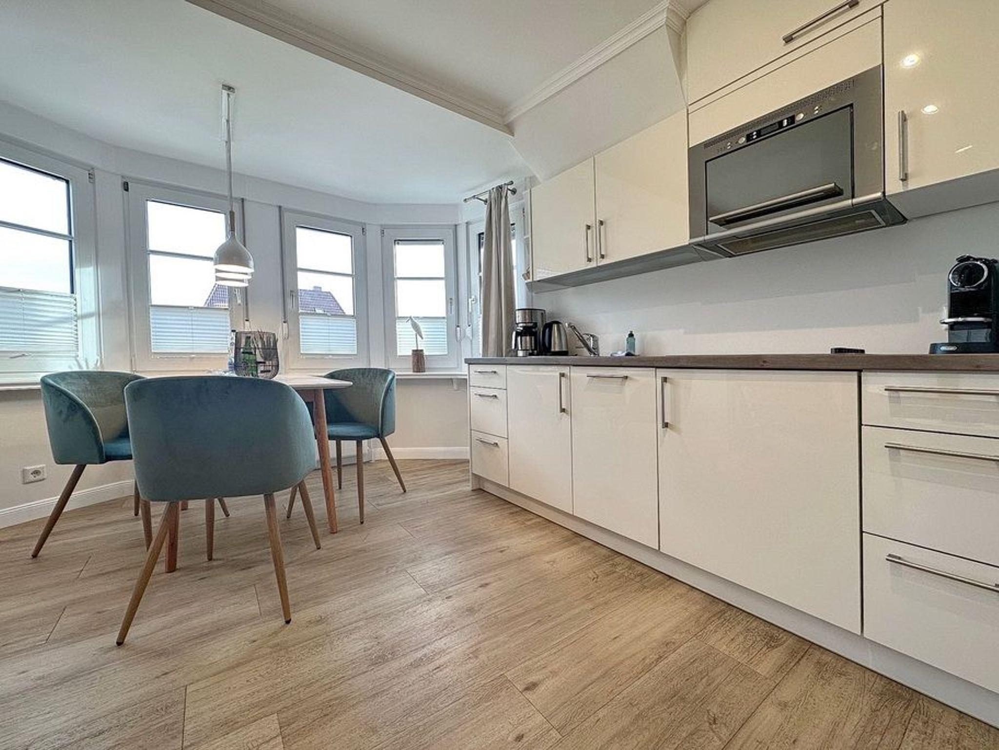 Sehr schöne 2-Zimmer-Ferienwohnung im 1. OG mit Westbalkon. Ca. 58m². Wohnzimmer mit offener Küche mit Mikrowelle und Geschirrspüler, Eßecke und Sitzecke, Flat-TV, Radio-/Musikanlage, W-LAN (ohne Gewähr). Duschbad/WC. Flur/Garderobe. DG: Schlafzimmer mit Doppelbett, Flat-TV und Einbauschrank. Im Haus: Schwimmbad, Sauna, Garage kann kostenlos dazugebucht werden, Waschmaschine und Trockner (Münzautomaten), Nichtraucherwohnung. Tierhaltung ist nicht gestattet. Bettwäsche und Handtücher sind zur Anreise aufgezogen!