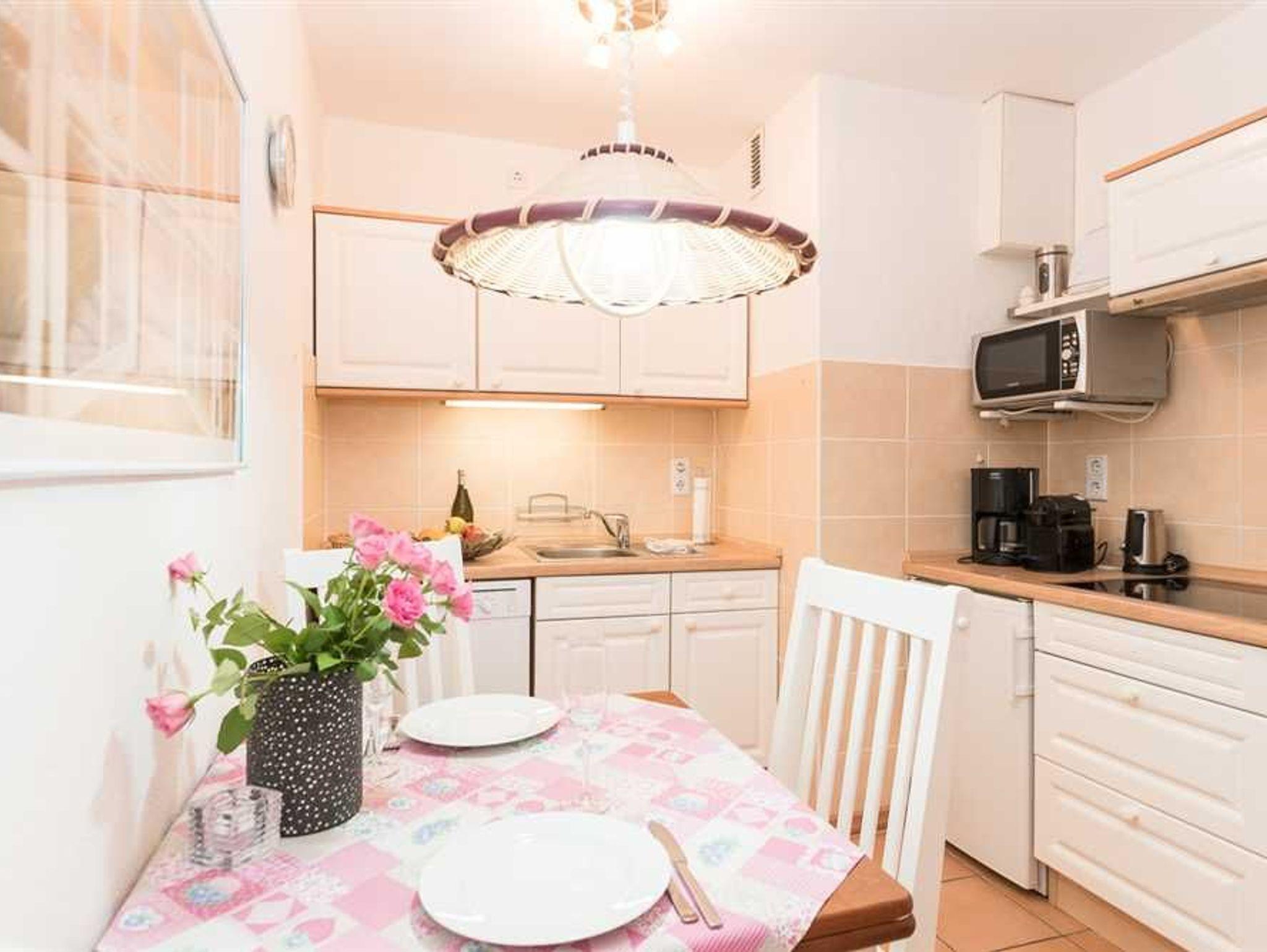 Das Appartement befindet sich in einer größeren, sehr gepflegten Wohnanlage mitten im Zentrum. Die Fenster sind Schalldicht. Den Hauptstrand erreichen Sie in ca. 3 Gehminuten durch die Fußgängerzone. Ein Bäcker und ein Fahrradverleih befinden sich direkt im Haus.