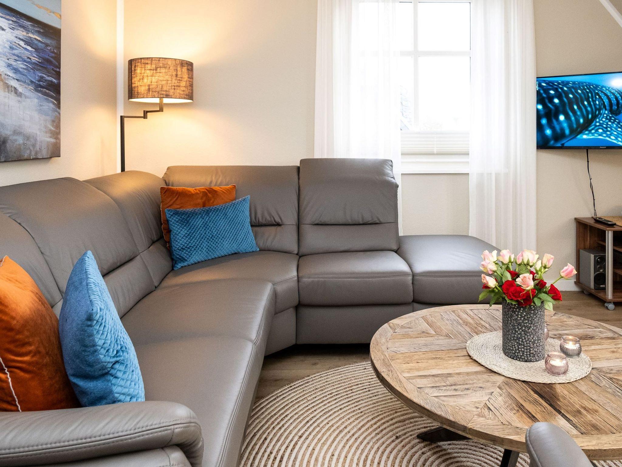 Die Raumaufteilung mit 2 Schlafzimmern, davon eines im 1. OG mit bequemen Doppelbett und einem weiteren Schlafzimmer (mit Doppelbett und einer Schlafcouch), welches über eine Treppe innerhalb der Wohnung erreichbar ist, macht diese Unterkunft ideal für Familien oder Gruppen. Das Wohnzimmer verfügt über eine große, sehr bequeme Couch und einem großzügigen Essplatz. Die Küchenzeile verfügt über einen Backofen, 4-Platten Herd, Geschirrspüler, Mikrowelle, Kaffeemaschine, Toaster und Wasserkocher. Das Badezimmer ist mit einer Dusche und WC ausgestattet. Die moderne und komfortable Einrichtung lässt Sei den Alltag vergessen. In dieser Unterkunft stehen erholsamen Ferien nichts im Wege.