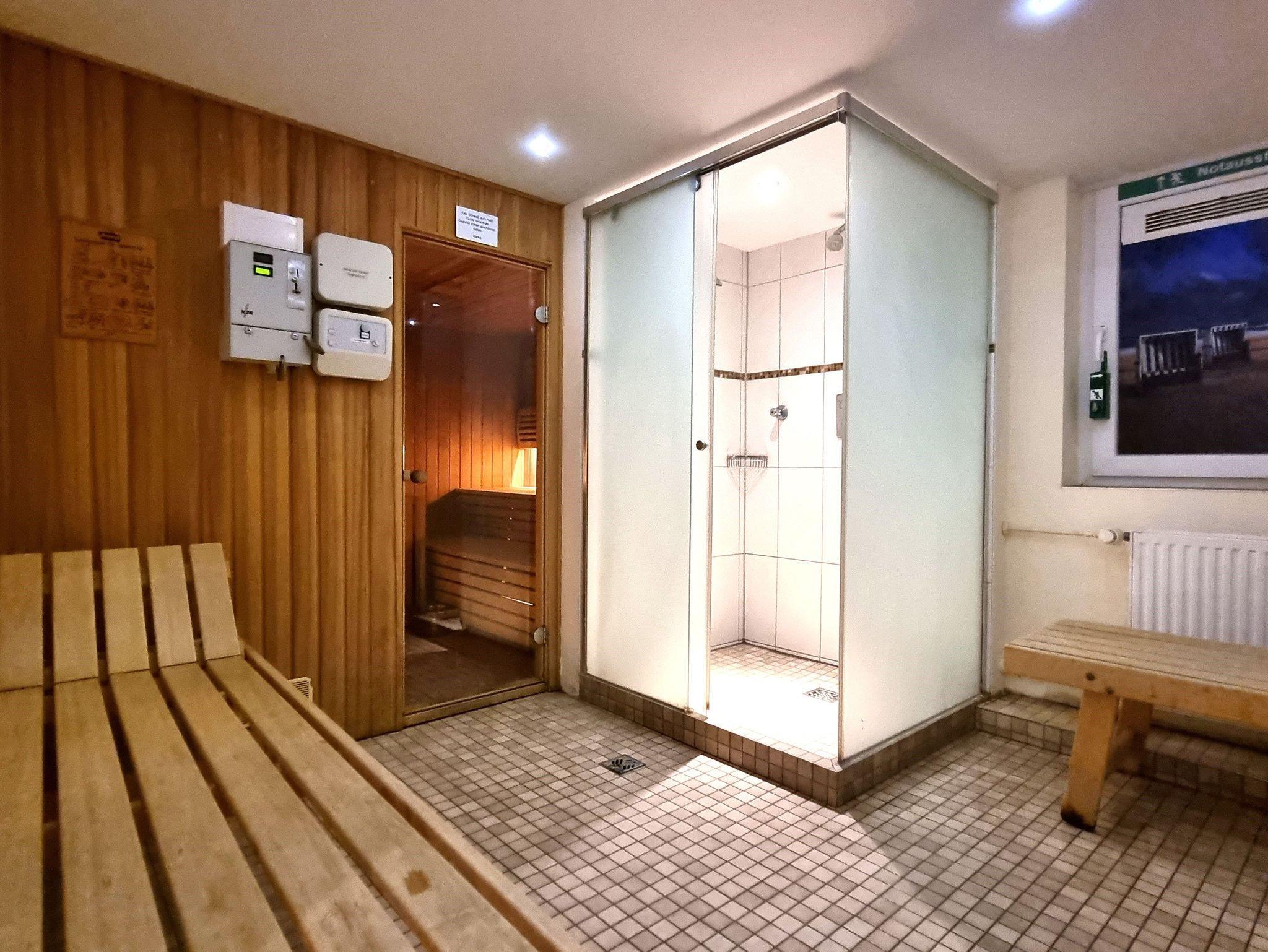 Des Weiteren befinden sich neben dem unentgeltlich nutzbaren Hallenschwimmbad im Kellergeschoss noch eine Sauna, eine Münzwaschmaschine mit Trockner, ein Fahrradraum sowie ein Tischtennisraum.