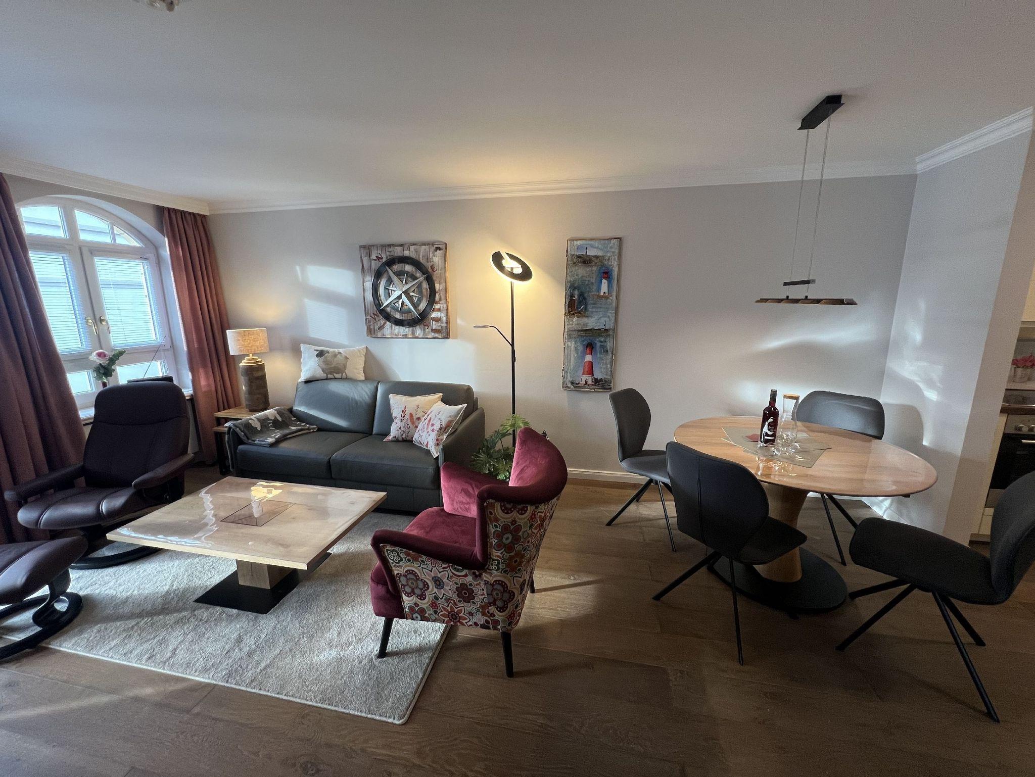 Exklusive 2-Zimmer-Ferienwohnunng in der 'Residenz Bismarck' mit ca. 60 m² auf 1 Ebene (1. OG, mit Fahrstuhl) für bis zu 3 Personen. Die Wohnung wurde im November 2024 renoviert.