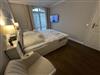 Schlafzimmer mit Doppelbett (2x 90x200cm), Einbauschrank, Safe, TV und direktem Zugang zum Balkon.