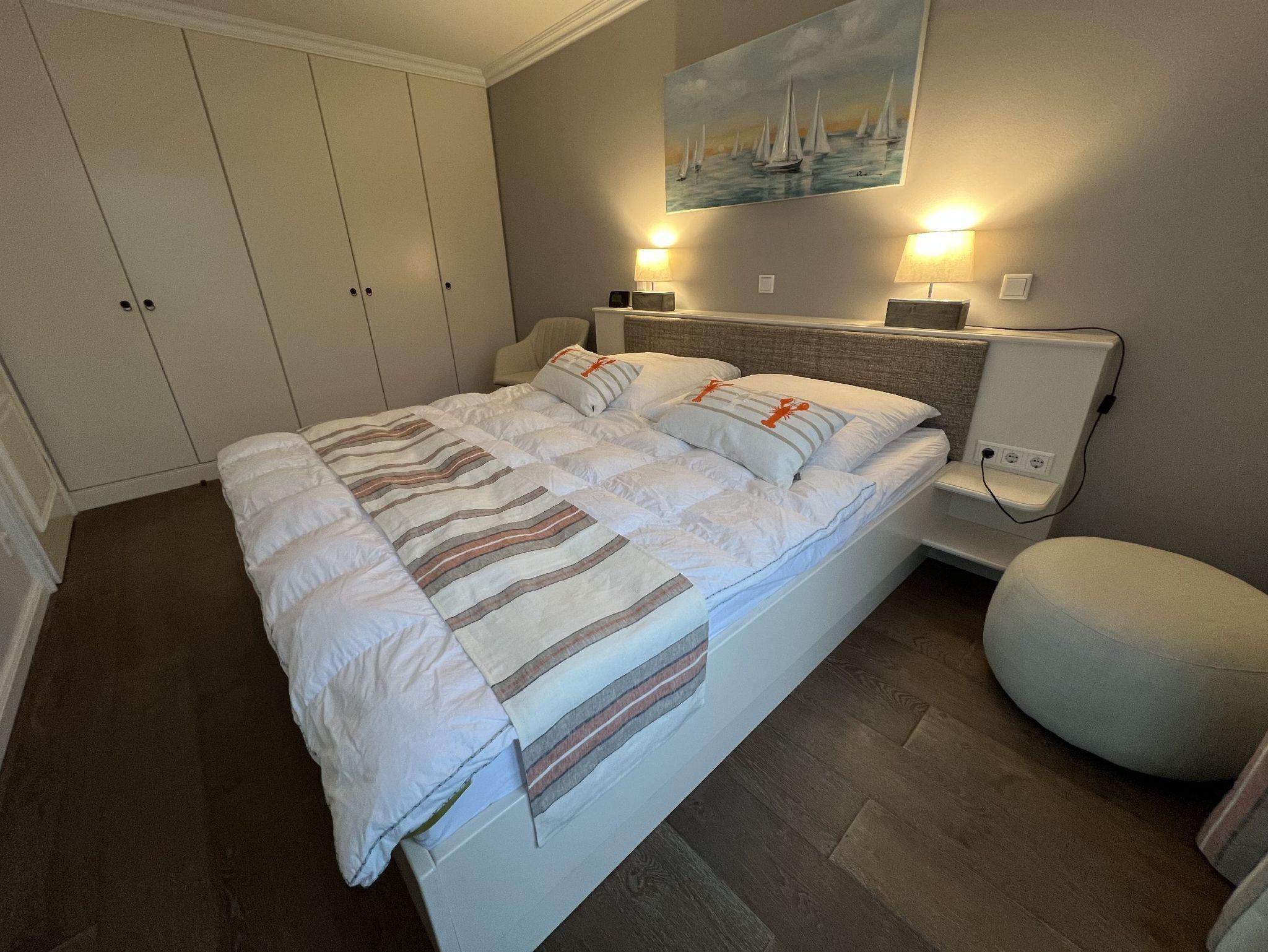 Das Schlafzimmer ist mit einem Doppelbett im Standardmaß von 1,80 m x 2,00 m sowie einer Schrankwand mit Safe und viel Stauraum ausgestattet. So ist es Ihnen auch möglich, einfach länger in der Unterkunft zu verweilen. Zum Schlafen erwarten Sie die hochkomfortablen TEMPUR-Matratzen.