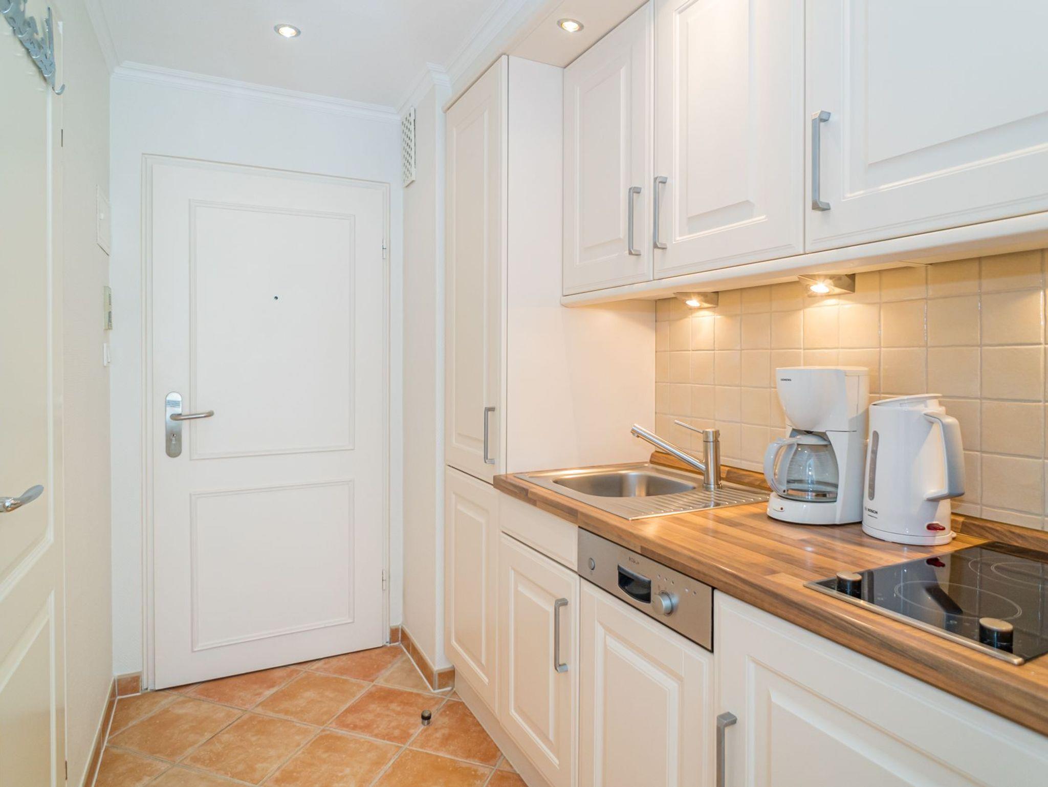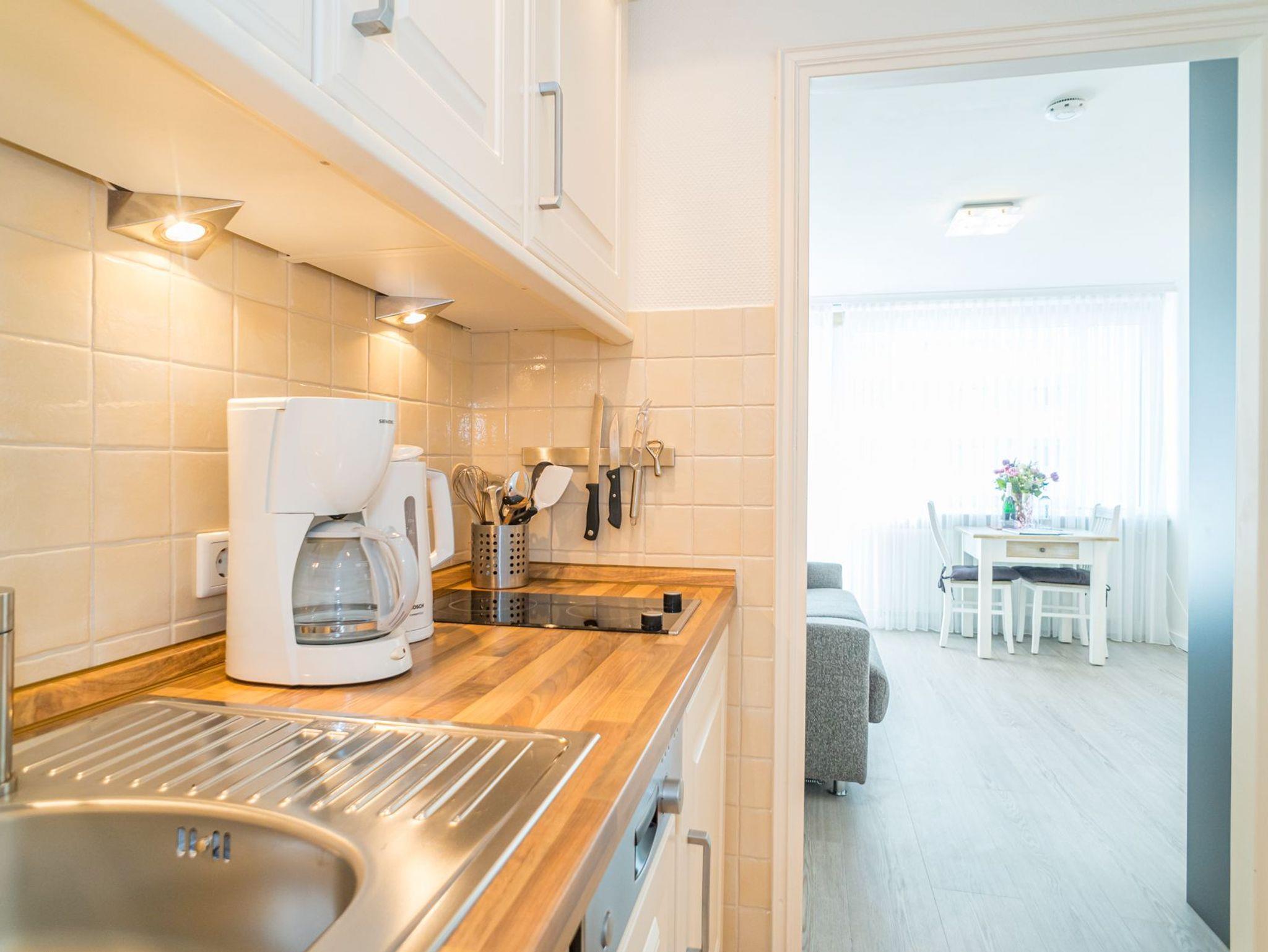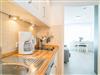 Die moderne, neue Küchenzeile hat einen Geschirrspüler, ein Cerankochfeld, eine Delonghi Nespresso Kapselmaschine und einen Kühlschrank mit 3*-Gefrierfach. Kaffeemaschine, Wasserkocher und Toaster gehören zur Grundausstattung.
