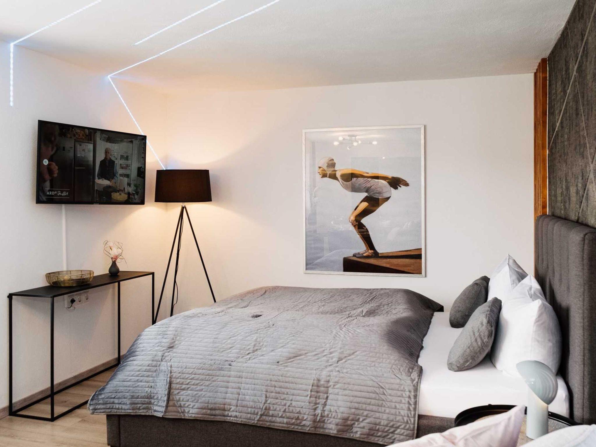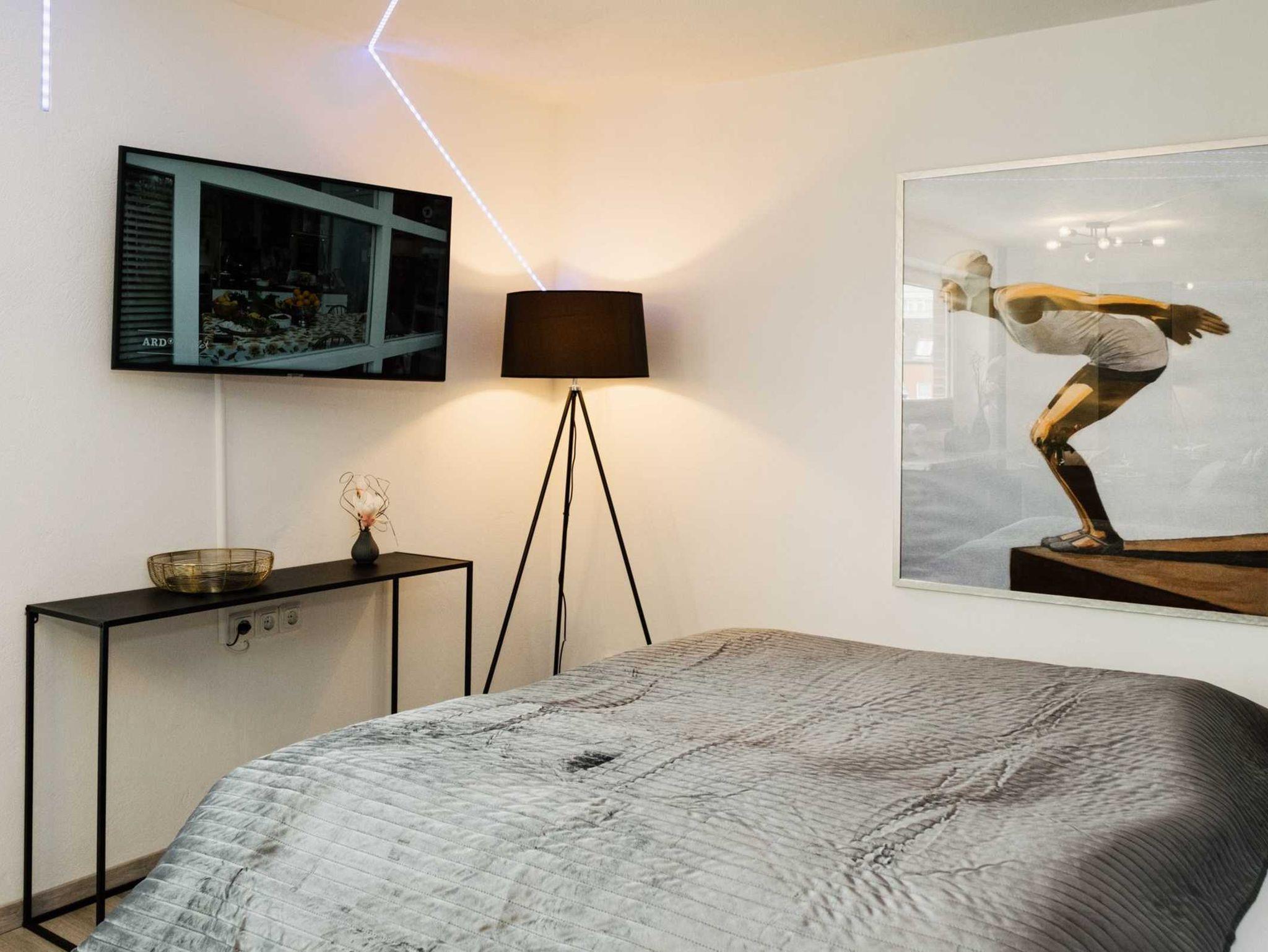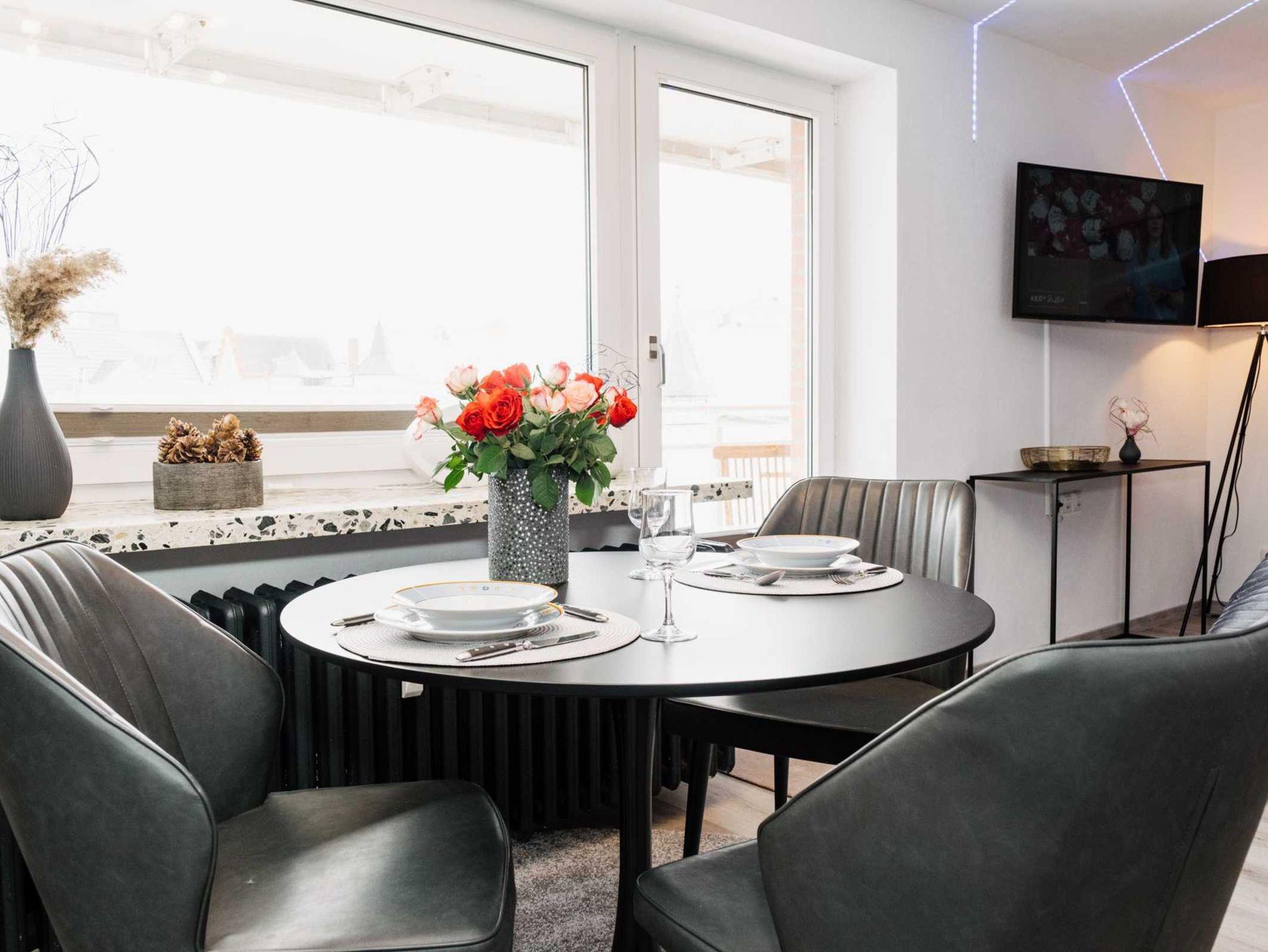 Diese sehr moderne, neu renovierte Ferienwohnung befindet sich in Westerland auf Sylt im 2.OG mit Balkon Richtung Osten. Die Wohnung verfügt über einen kombinierten Wohn/-Schlafbereich mit modernem Boxspringbett. Zudem befindet sich im Wohnbereich eine bequeme Sitzecke, ein großzügiger Essplatz sowie ein internetfähiger Flachbildfernseher.