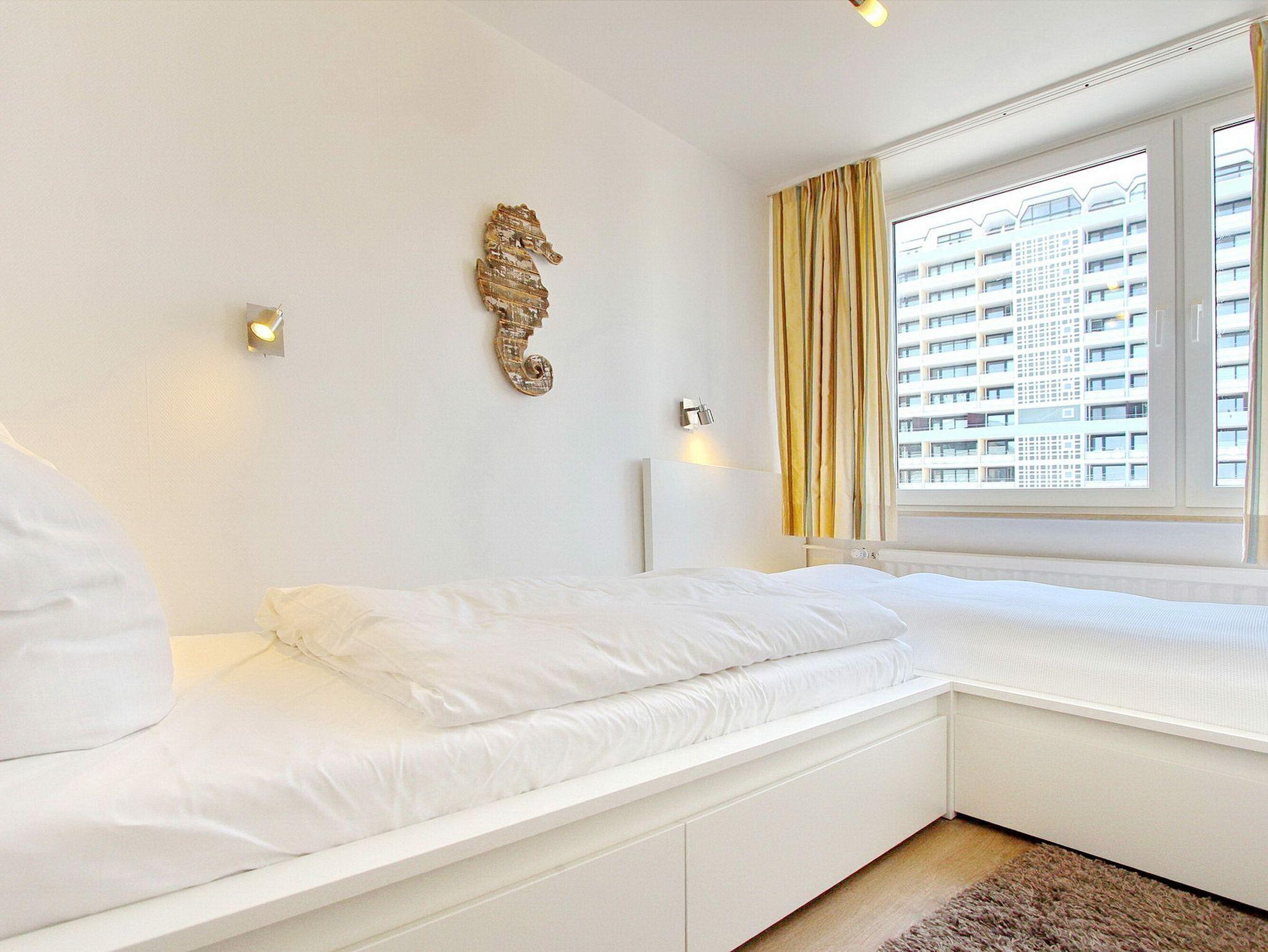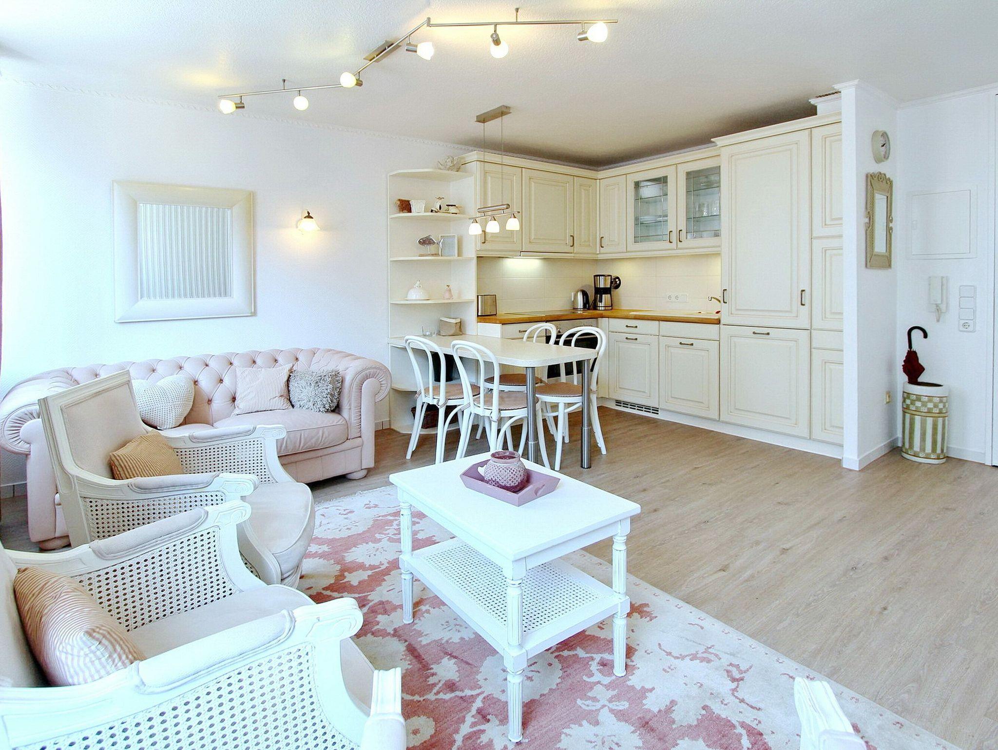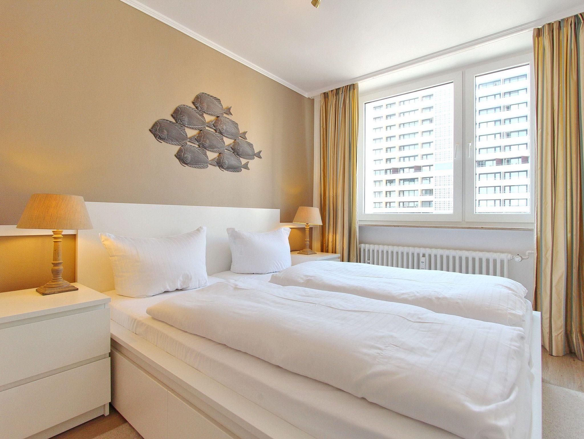 Dreizimmerwohnung in der 5. Etage in unmittelbarer Nähe zur Innenstadt und der Promenade von Westerland. Sie ist ausgestattet mit einer bequemen Sitzgruppe, einer offenen Küchenzeile mit Geschirrspüler und Backofen und einem Essplatz mit 4 Stühlen. Design PVC wurde im Wohnzimmer und Küchenbereich verlegt. Ein Schlafzimmer hat ein Doppelbett (2*80*200), das andere Schlafzimmer zwei Einzelbetten (90*200). Das Badezimmer (Durchgangszimmer) verfügt über eine Dusche. Die Toilette befindet sich in einem separaten, kleinen Zimmer. Zur technischen Ausstattung dieser Wohnung gehört: ein Radio mit CD Player, ein Flachbildfernseher, ein DVD Player und ein Telefon mit Flatrate ins dt. Festnetz. Nichtraucherwohnung. Den WLAN Hotspot im Haus (WEG-AD3 - Passwortfrei - ohne Gewähr) können sie gerne kostenfreie nutzen. Wohnungsgröße: ca. 50 m².