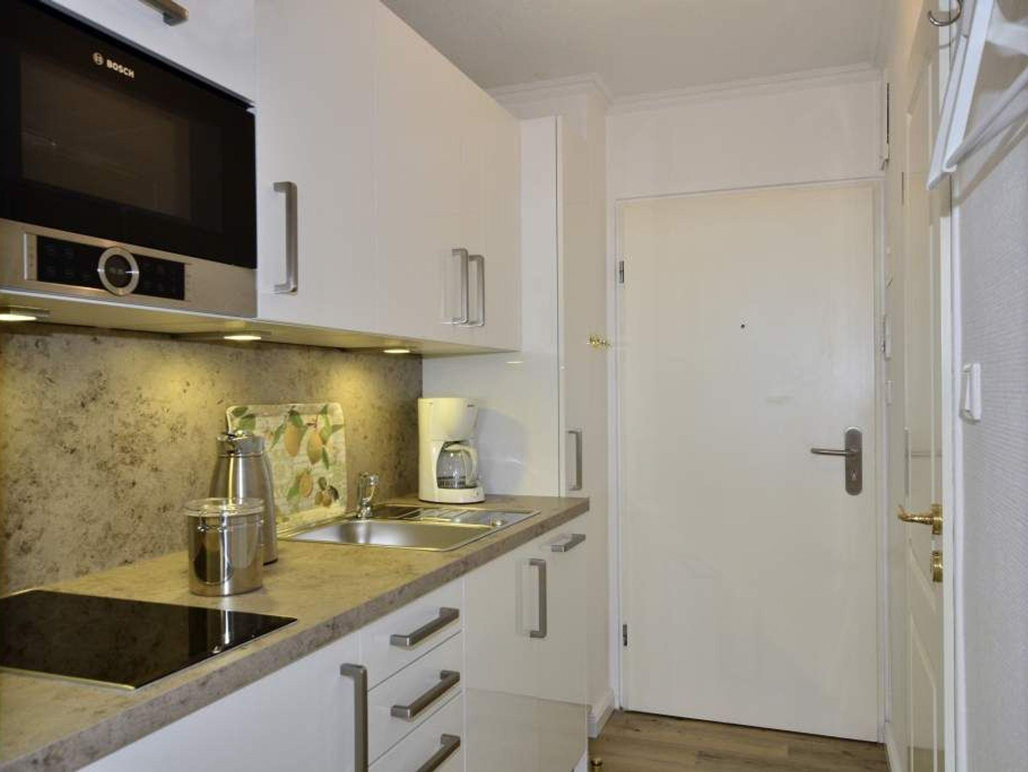 Gut ausgestattete 1-Zimmer-Nichtraucher-Ferienwohnung (ca. 25 qm) in der 4. Etage zur Seeseite mit Westloggia und schönem Meerblick (Nachmittagssonne, mit Balkonmöblierung) für max. 2 Personen.