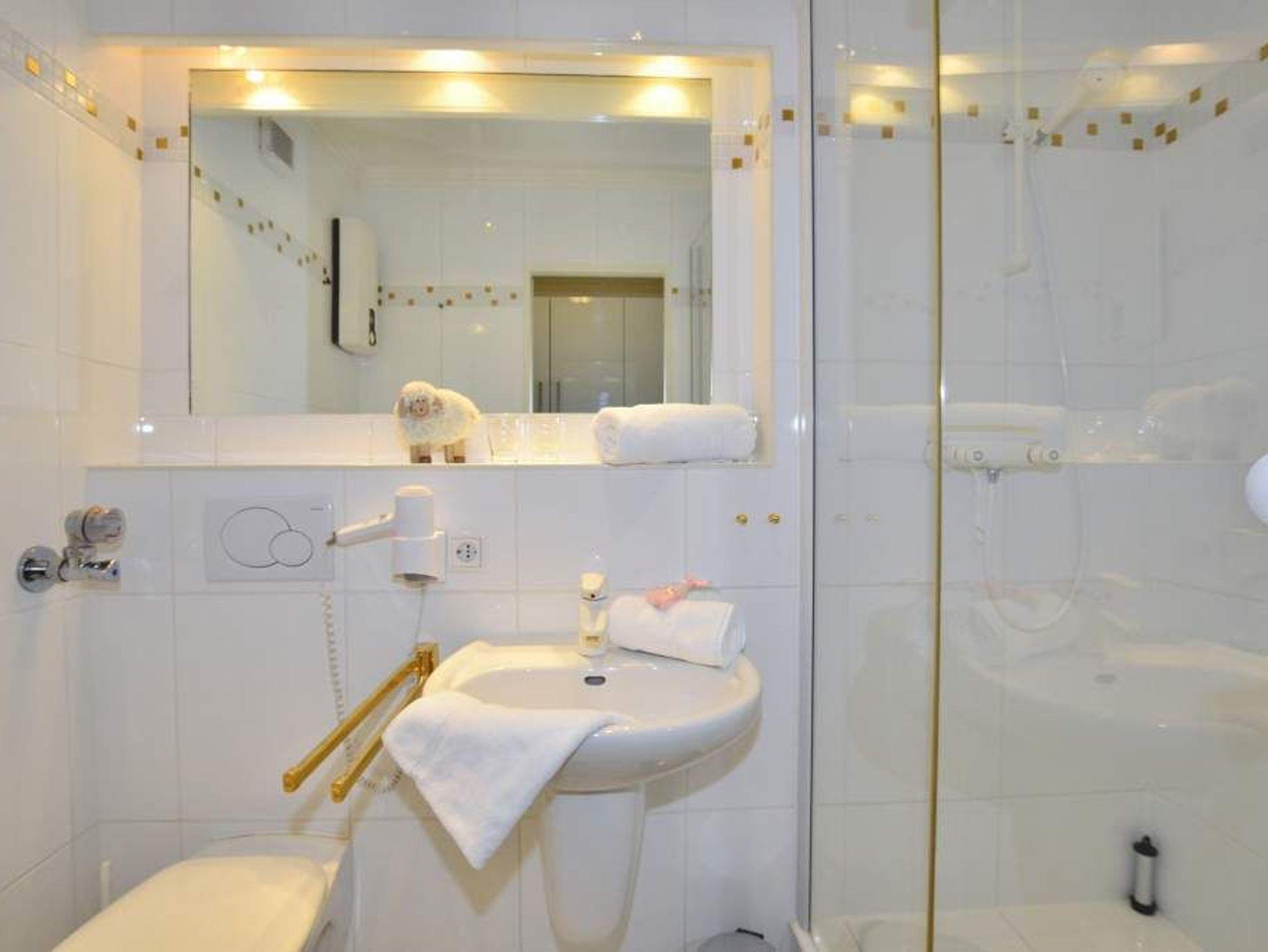 Im neuen Bad befinden sich eine Dusche, ein WC, ein Waschtisch und ein Fön.