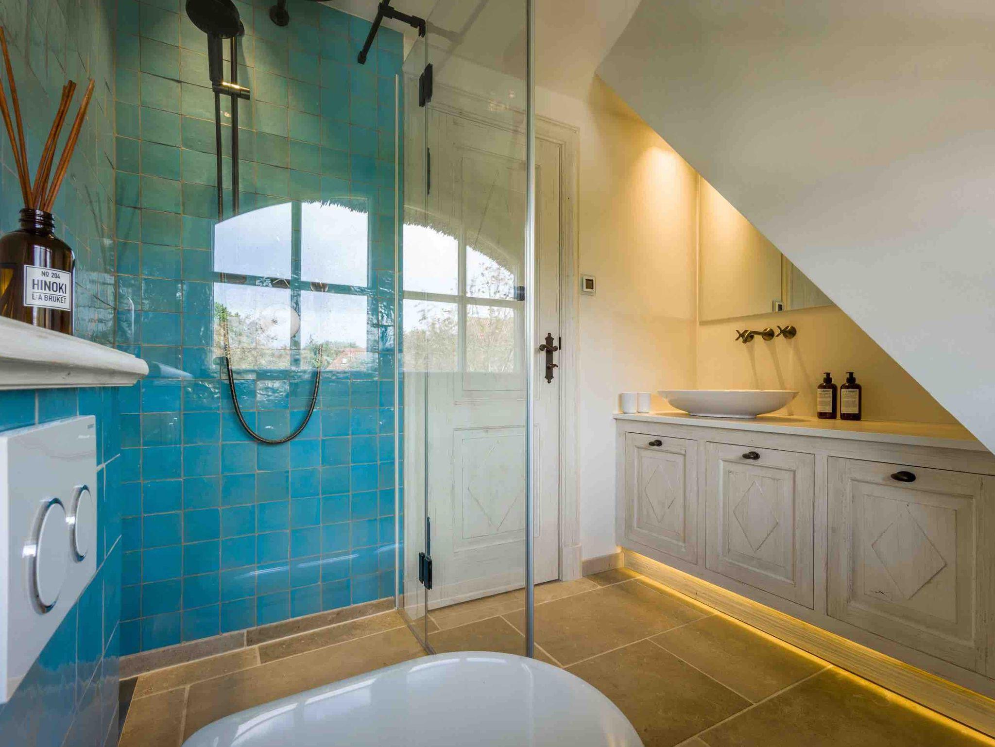 Auf 125 qm befindet sich ein Master Bedroom - (Bett 2x2,10 m Samina Schlafsystem) + freistehender Badewanne sowie ein zweites Schlafzimmer (Bett 2 x 2 m) und SAMINA Kissenbar, einem kleinen Bad im Obergeschoss sowie ein großes Bad mit Regendusche im Erdgeschoss.