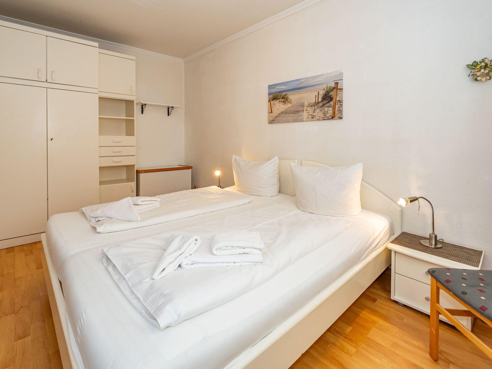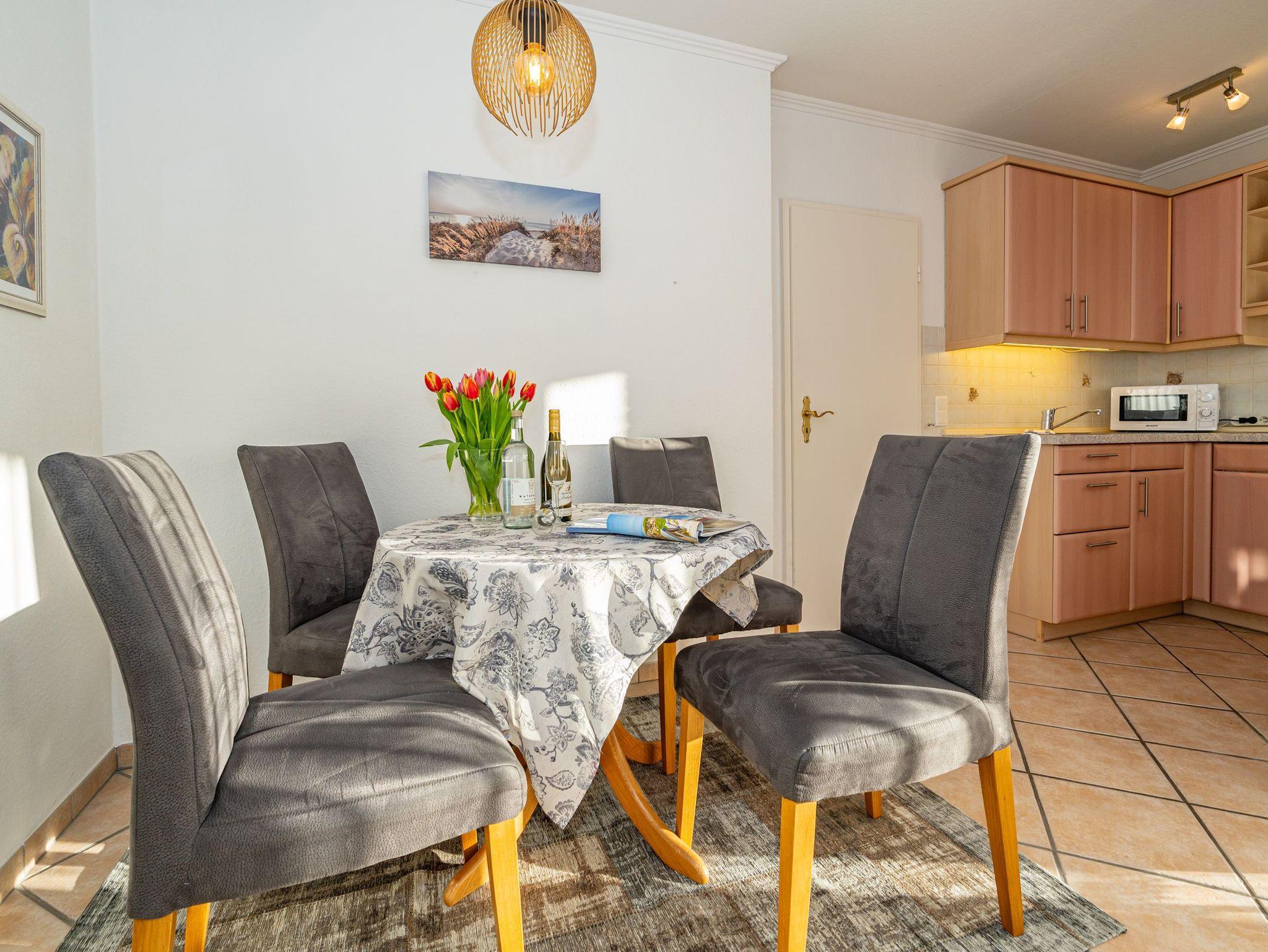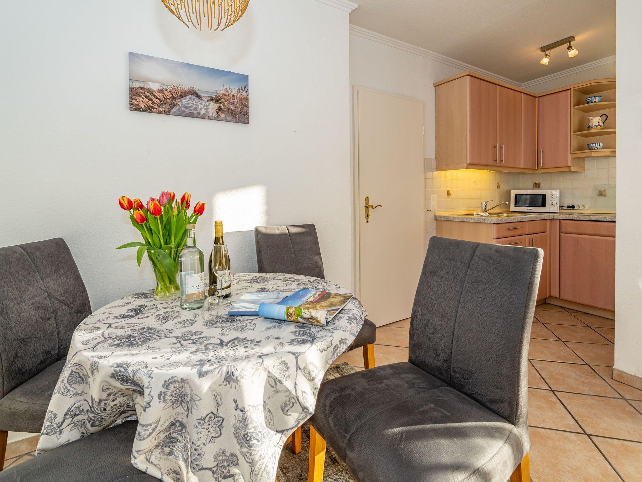 Diese komplett geflieste 2-Zimmer-Nichtraucher-Ferienwohnung im Parterre erstreckt sich über ca. 52 m² und bietet Platz für maximal 2 Personen. Direkt hinter den Dünen gelegen, können Sie den großzügigen Süd-Westbalkon mit Strandkorb,[nbsp] Balkonmöbeln genießen.