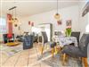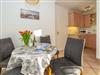 Beim Betreten gelangen Sie über einen einladenden Vorflur in den offenen Wohnbereich, der die Kochnische, das Schlafzimmer und das helle Duschbad/WC umfasst. Der gemütliche Wohnraum ist mit einer 3-Sitzer-Schlafcouch, zwei Sesseln, einem separaten Essplatz sowie Radio, Kabel-TV, Flachbildfernseher und Telefon ausgestattet. Die offene Kochnische verfügt über eine Mikrowelle, ein Cerankochfeld mit vier Kochfeldern, einen Kühlschrank und ein Fenster ? Kaffeemaschine, Wasserkocher und Toaster gehören ebenfalls zur Grundausstattung. Das Schlafzimmer ist mit einem komfortablen Doppelbett eingerichtet, während das Badezimmer über eine Dusche, ein WC und einen Waschtisch verfügt.