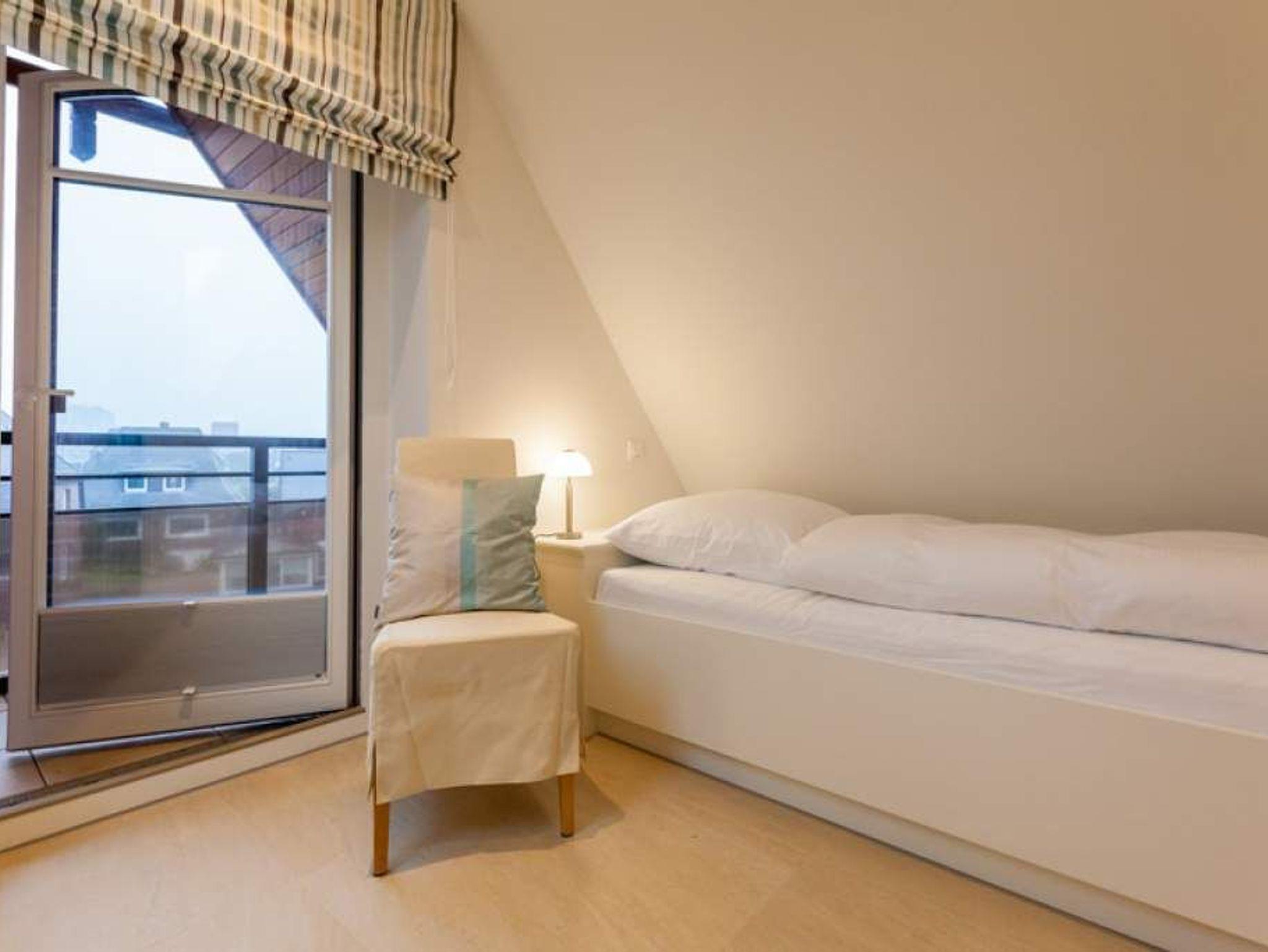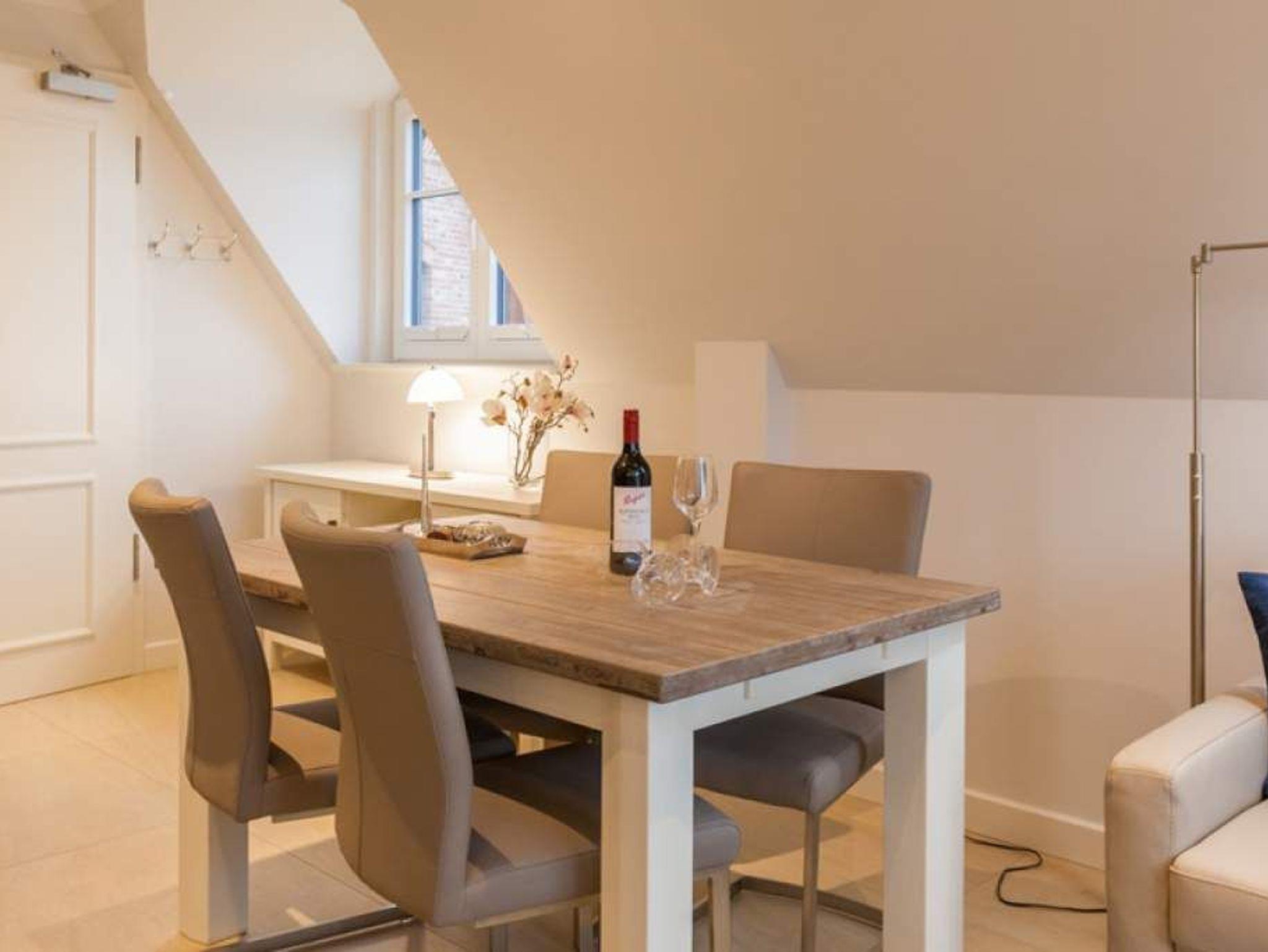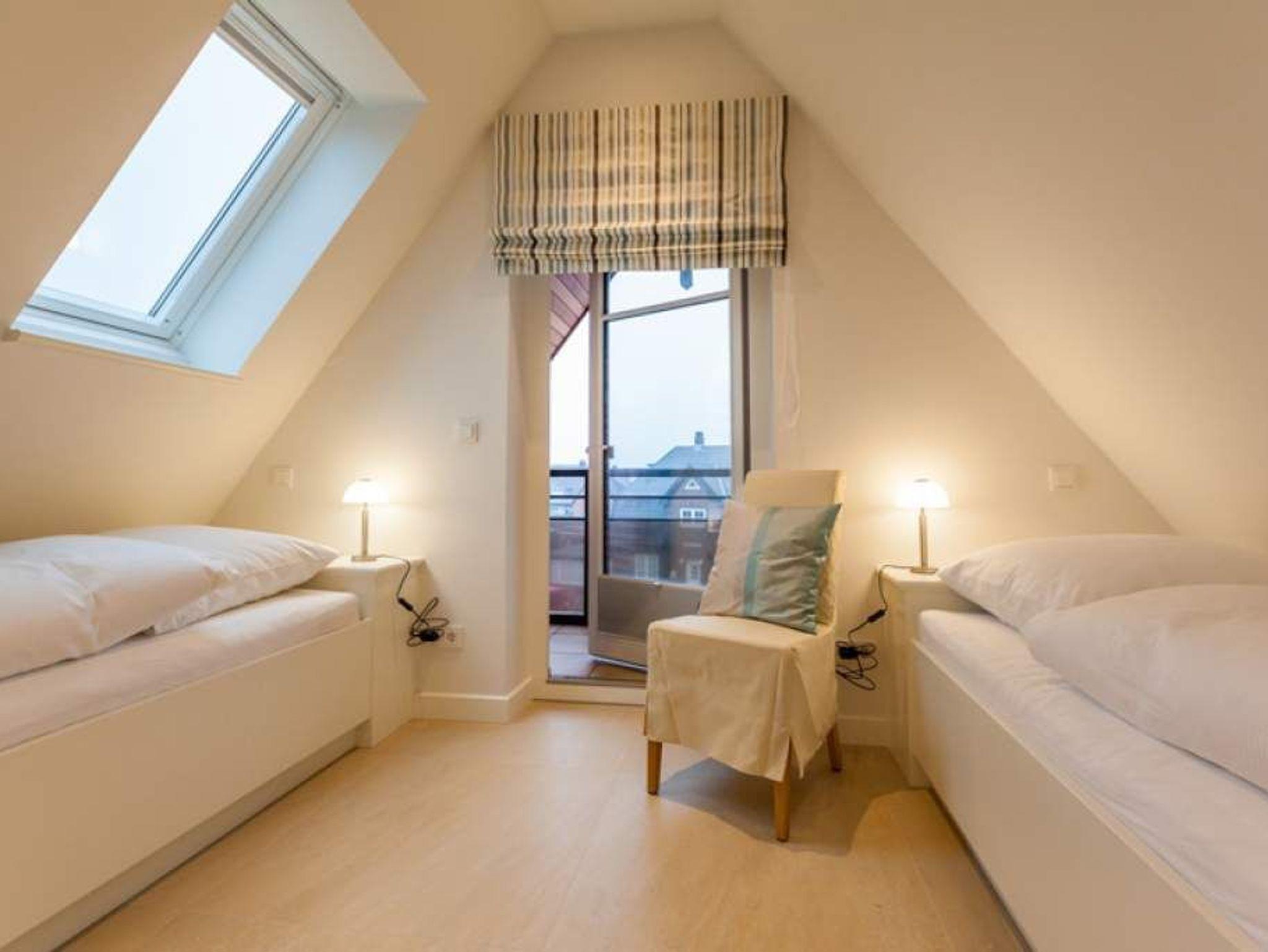 Luxuriöse 3-Zimmer-Maisonette-Nichtraucher-Ferienwohnung, ca. 69 qm, im 1. Obergeschoss, ein Westbalkon und eine Westloggia für 4 Personen.