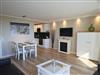 Der aufwendig und modern gestaltete Wohnraum ist mit einer guten Sitzgarnitur (zwei Zweisitzer Couchen, eine mit Schlaffunktion), einem Essplatz, einem Flachbild-QLED-TV (Bildschirmdiagonale: 52- Zoll bzw. 132 cm), einem Radio/CD (mit Bluetouth), W-W-Lan und einer offenen Küche ausgestattet.