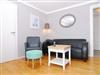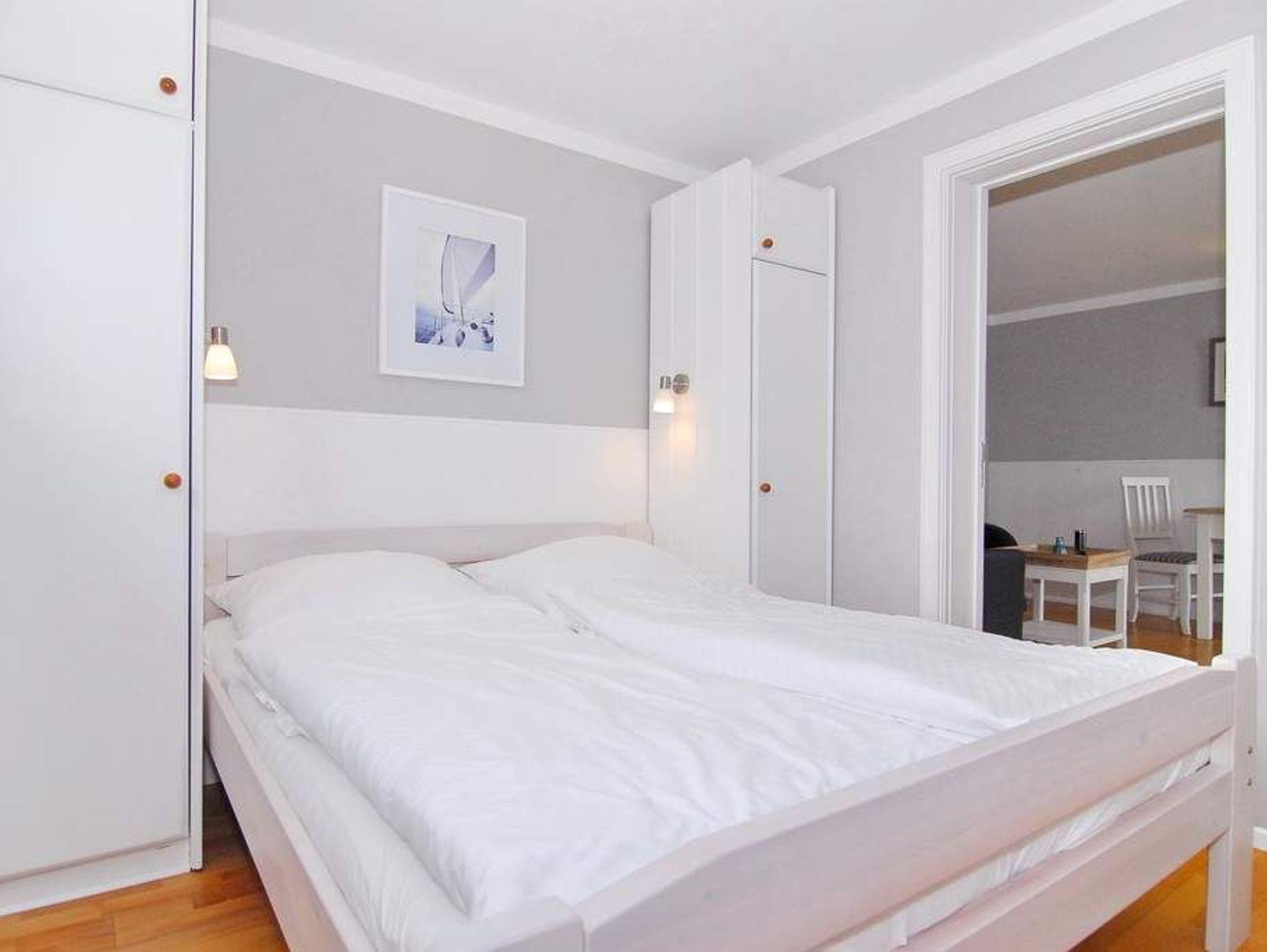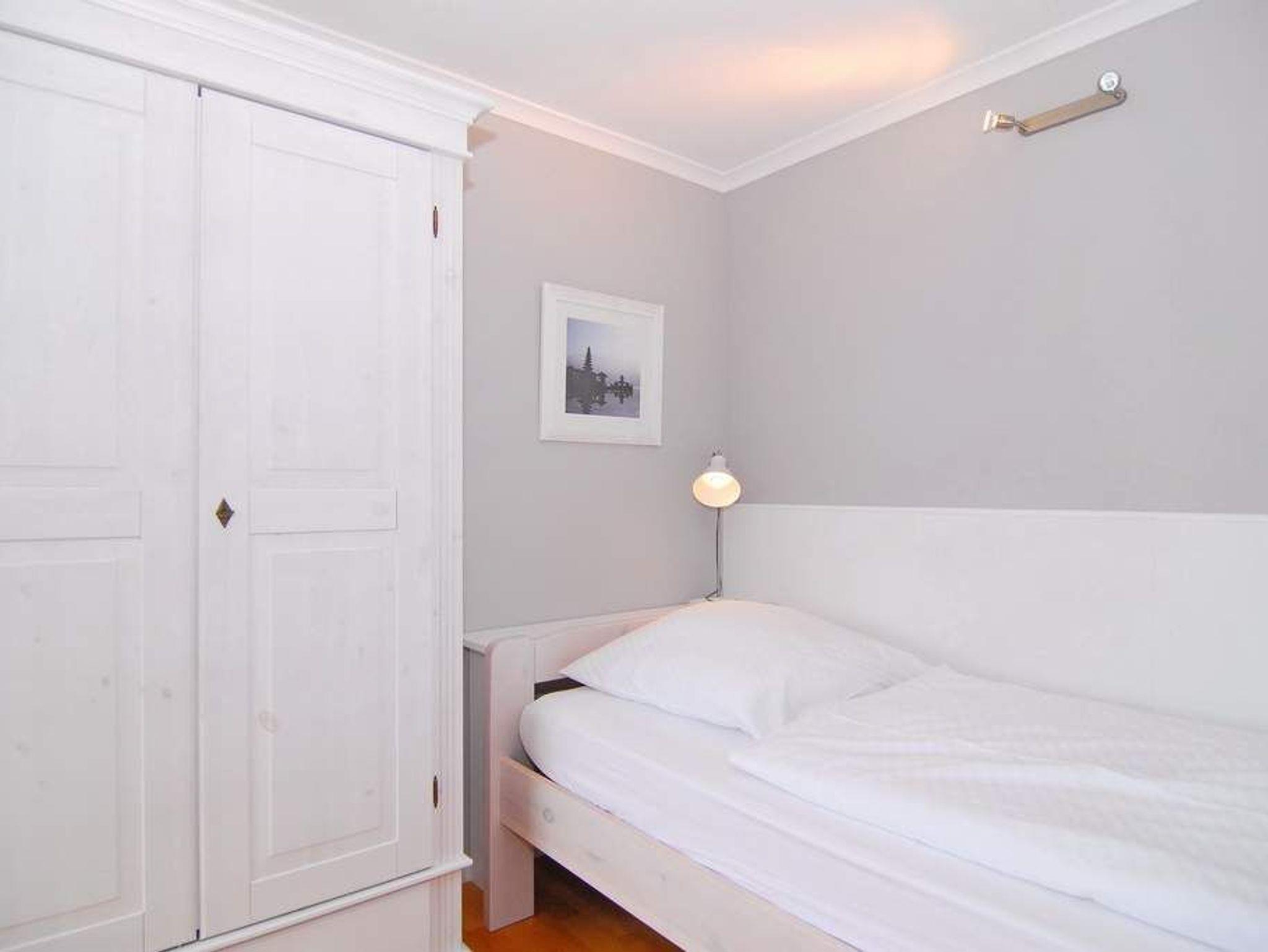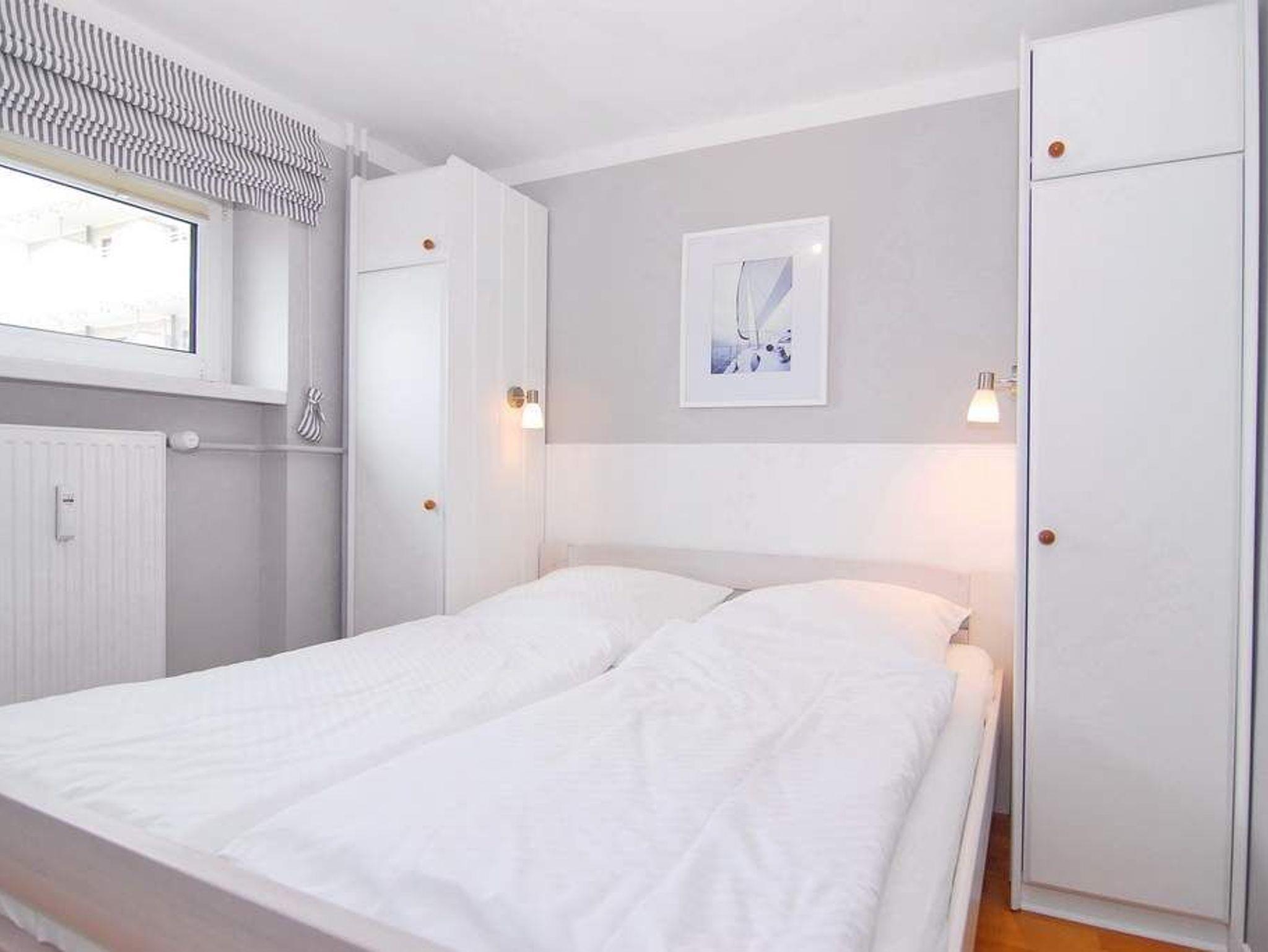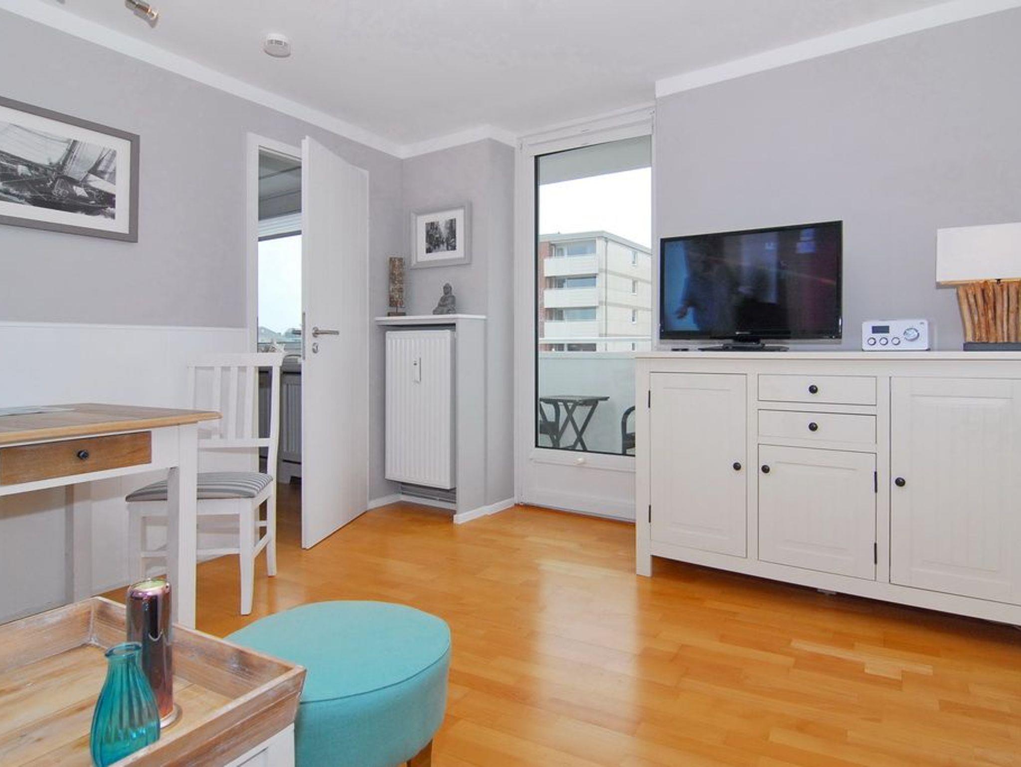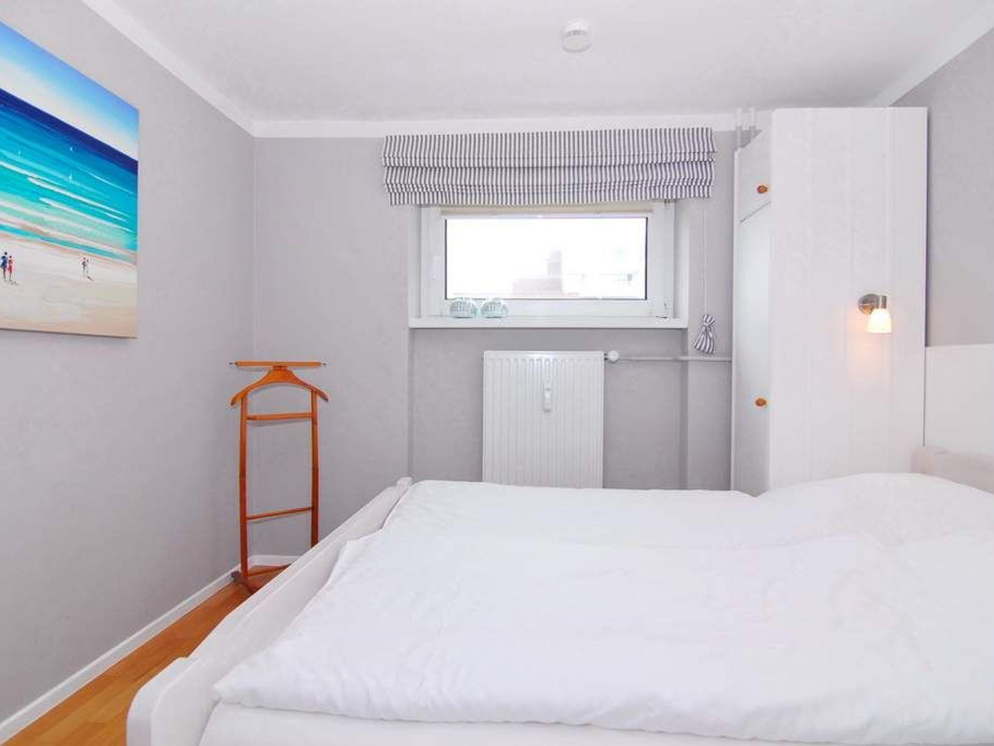 Mitten im Herzen von Westerland und nur wenige Gehminuten vom Strand entfernt liegt diese 3-Zimmer-Ferienwohnung im 3. OG vom Haus Sylter Residenz. Die moderne, zeitgemäße und frische Ausstattung sorgen für ein angenehm nordisches Ambiente. Vom Wohnraum mit Sitz- und Essecke, einer Kommode mit Flat-TV und Radio gelangen Sie auf einen kleinen Ostbalkon, der über 2 Sitzplätze verfügt. Abgehend vom Wohnzimmer gibt es ein geräumiges Schlafzimmer mit Einzelbett (100x200cm), Kleiderschrank, Kommode, Sessel und TV. Das zweite Schlafzimmer ist mit Doppelbett und 2 kleineren Kleiderschränken ausgestattet. Ein frisch saniertes und modernes Duschbad sowie eine schicke separate Küche vervollständigen die Wohnung. In der Wohnung ist das Rauchen und die Tierhaltung nicht gestattet. Bettwäsche und Handtücher sind zur Anreise aufgezogen.
