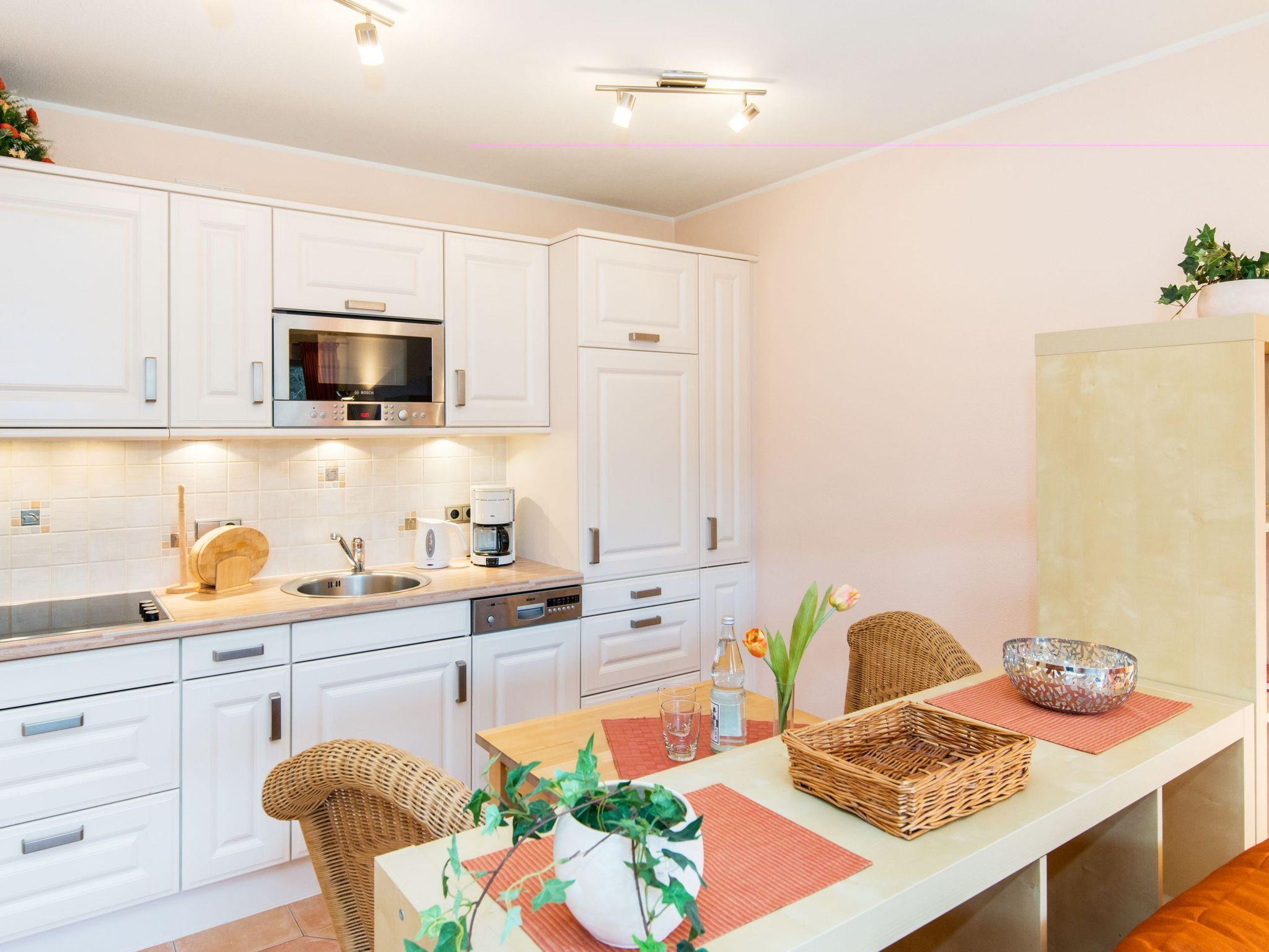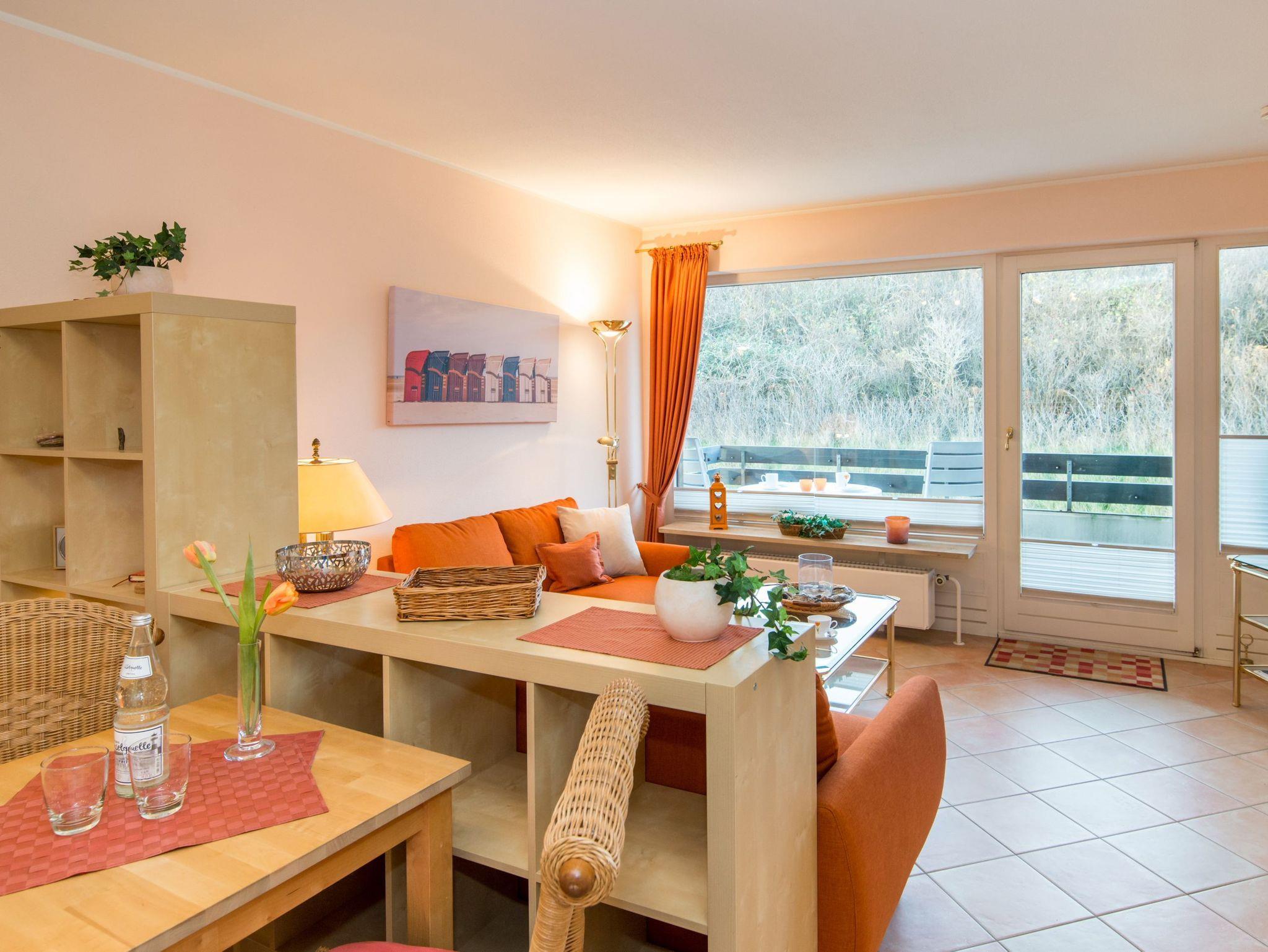 Diese charmante 2-Zimmer-Nichtraucher-Ferienwohnung im Parterre (ca. 45 m²) zur Westseite bietet Platz für maximal 2 Personen. Genießen Sie die Nachmittagssonne auf dem Westbalkon, der mit Balkonmöbeln, Auflagen und direktem Zugang vom Wohnbereich ausgestattet ist.