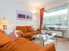 Beim Betreten der Wohnung gelangen Sie über einen einladenden Vorflur mit Garderobe in den offenen Wohnbereich, das gemütliche Schlafzimmer und das helle Duschbad/WC. Der Wohnraum besticht durch eine komfortable Sitzgarnitur, bestehend aus zwei 2-Sitzer-Couches, sowie einem separaten Essplatz. Unterhaltung bieten Ihnen ein Radio und ein Kabel-Flachbild-TV. Die integrierte, offene Küchenzeile rundet das Angebot ab und ist mit einem Ceranfeld (4 Kochfelder), einer Mikrowelle, einem Geschirrspüler und einem Kühlschrank ausgestattet. Zur Grundausstattung zählen außerdem Kaffeemaschine, Wasserkocher und Toaster.