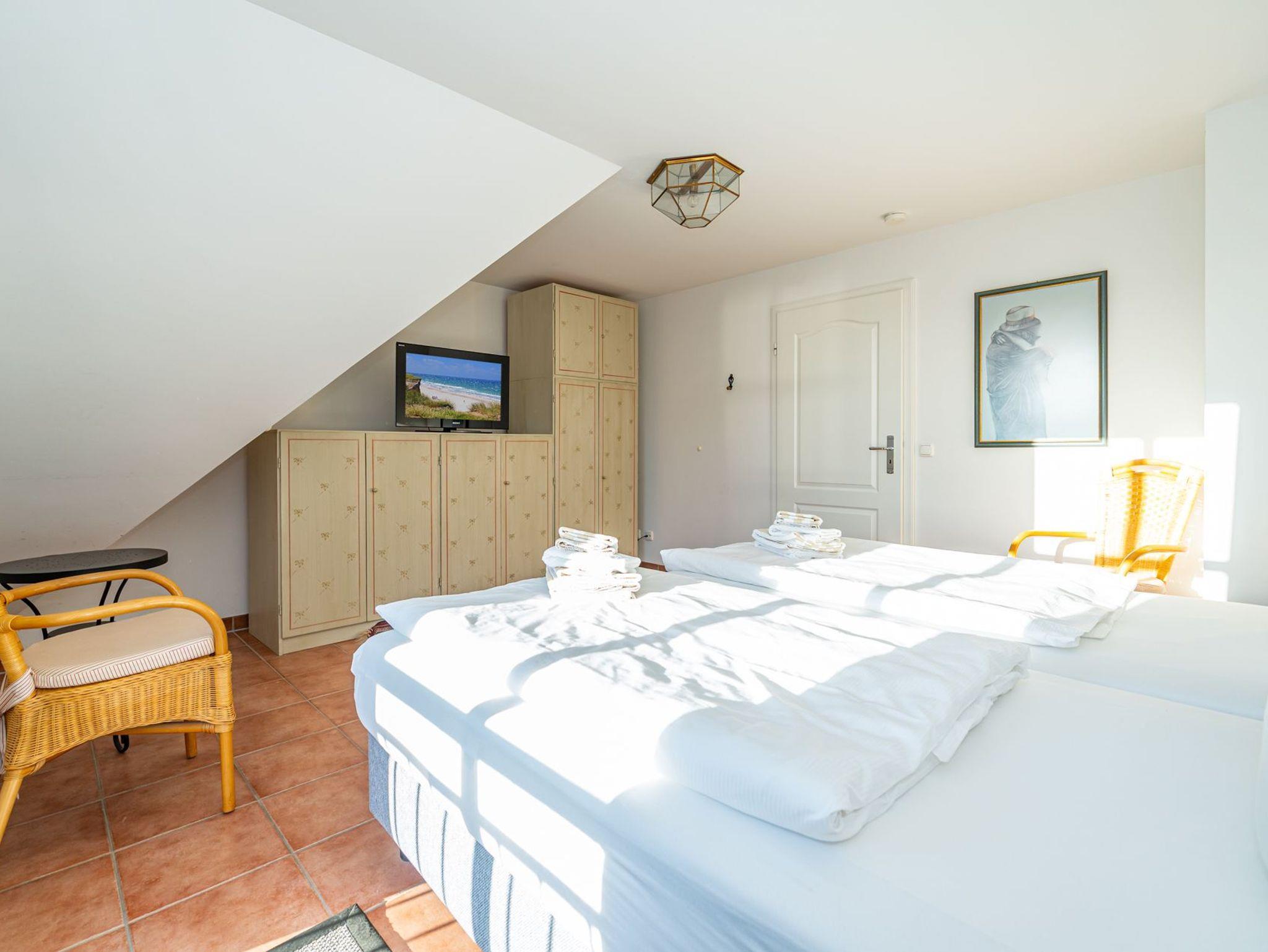 Zusätzlich gibt es noch ein weiteres, kleines Schlafzimmer mit zwei Einzelbetten (0,90 x 2,00 m) sowie TV.