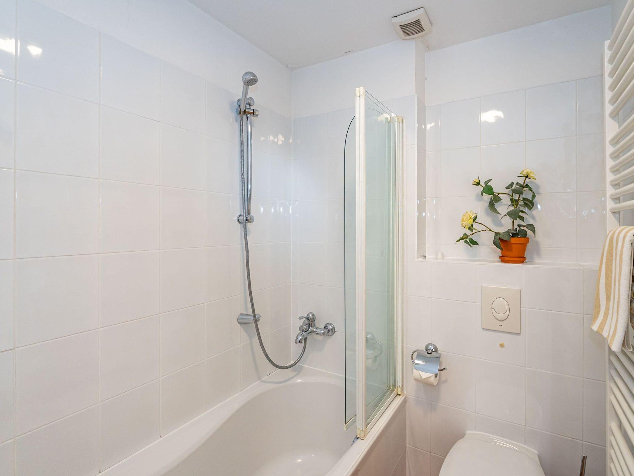 Das zweite Badezimmer besitzt eine Badewanne mit Duschvorrichtung, Waschtisch, Handtuchtrockner, WC und Fön.