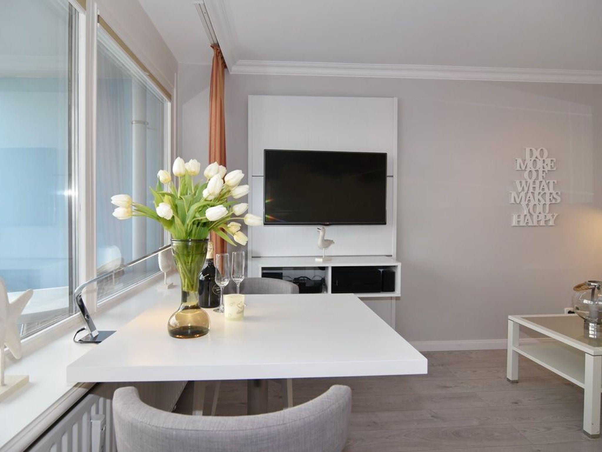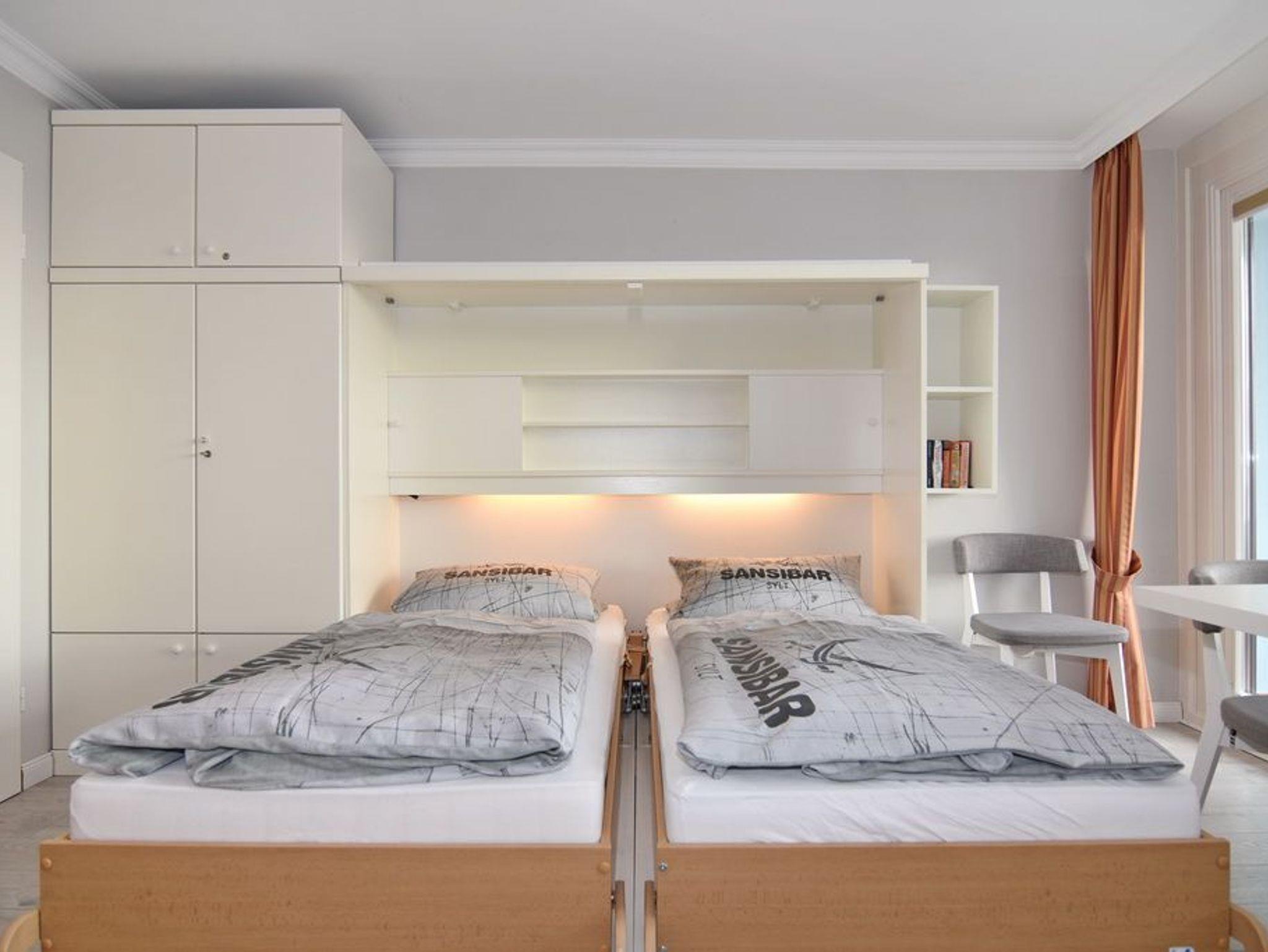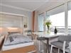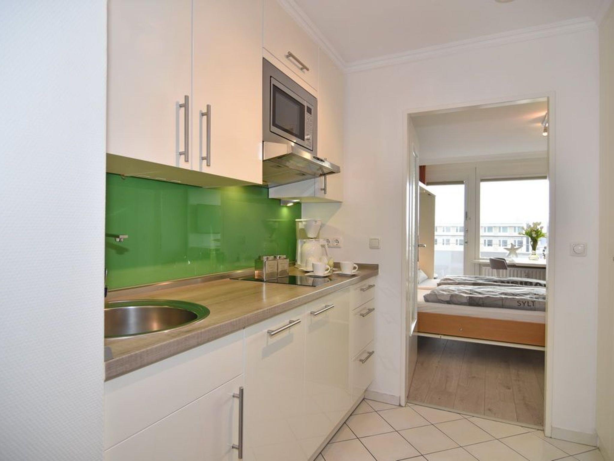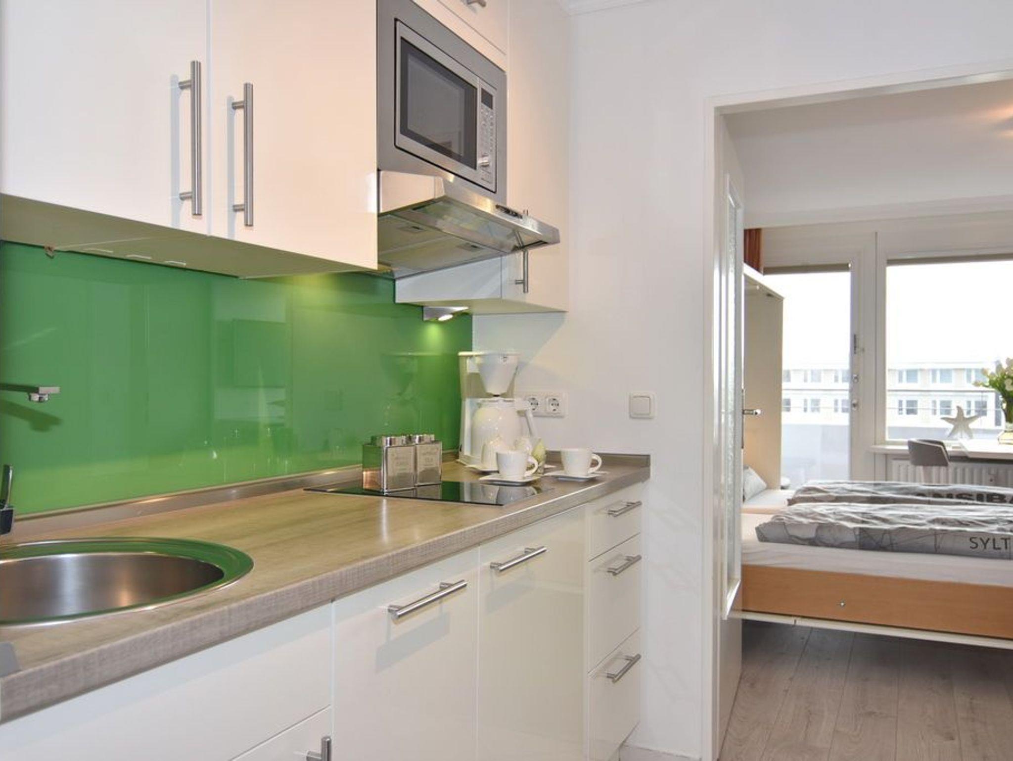 1 Zimmer-Appartement im Haus Metropol, 4 OG. mit Ostbalkon und Balkonmöbeln, ca. 30 m², Nichtraucher-Appartement. Wohn-/Schlafraum mit 2 Einzelschrankbetten ( 80x200 ) und Kleiderschrank, Esstisch am Fenster und kleine Schlafcouch für 1 Person (Querschläfer), Flat-TV, Radio, DVD und Internet ( ohne Gewähr ). Küchenzeile im Flurbereich mit Mikrowelle und Geschirrspüler und 2 Platten-Ceranfeld, Duschbad/WC. Tierhaltung ist nicht gestattet. Bettwäsche und Handtücher sind zur Anreise aufgezogen. Ein PKW-Stellplatz kann kostenpflichtig zugebucht werden.