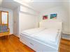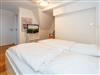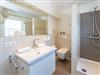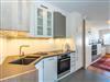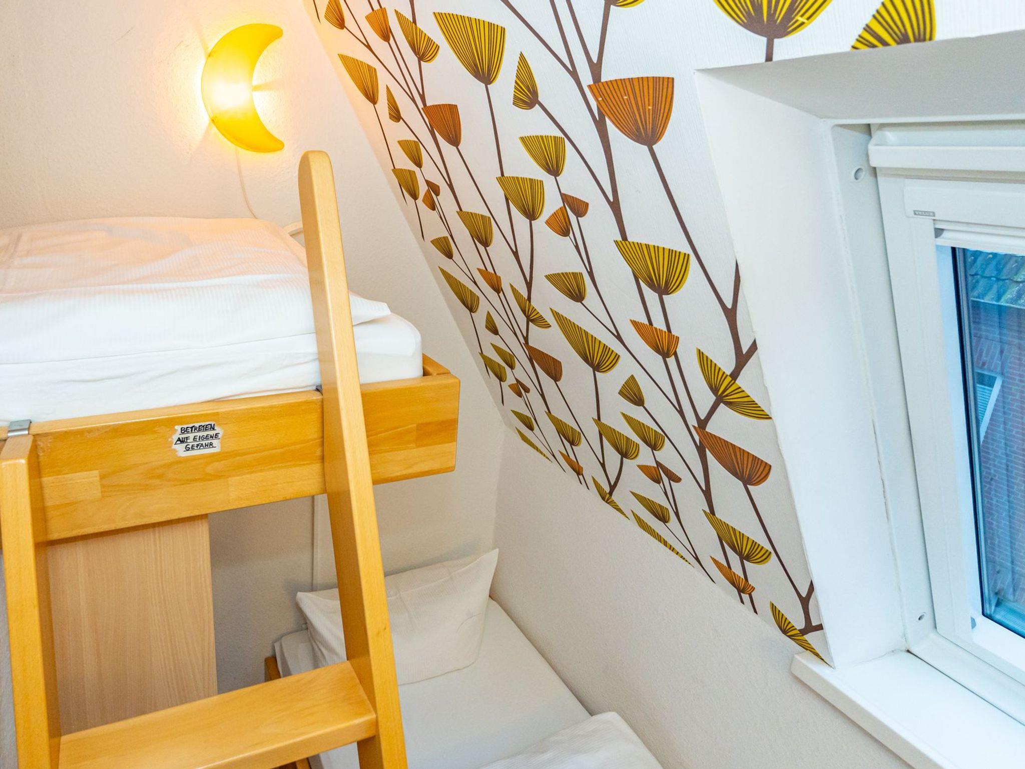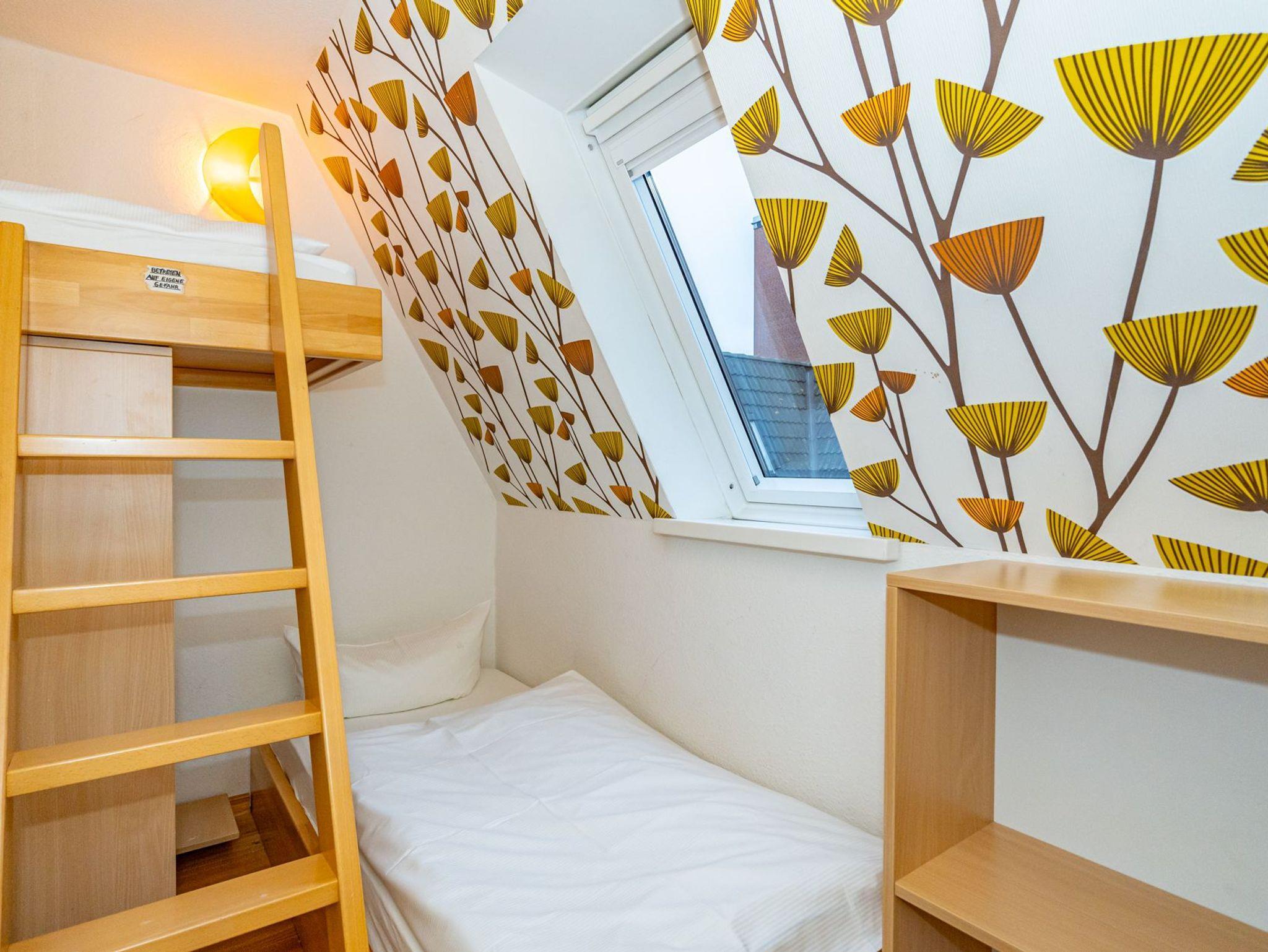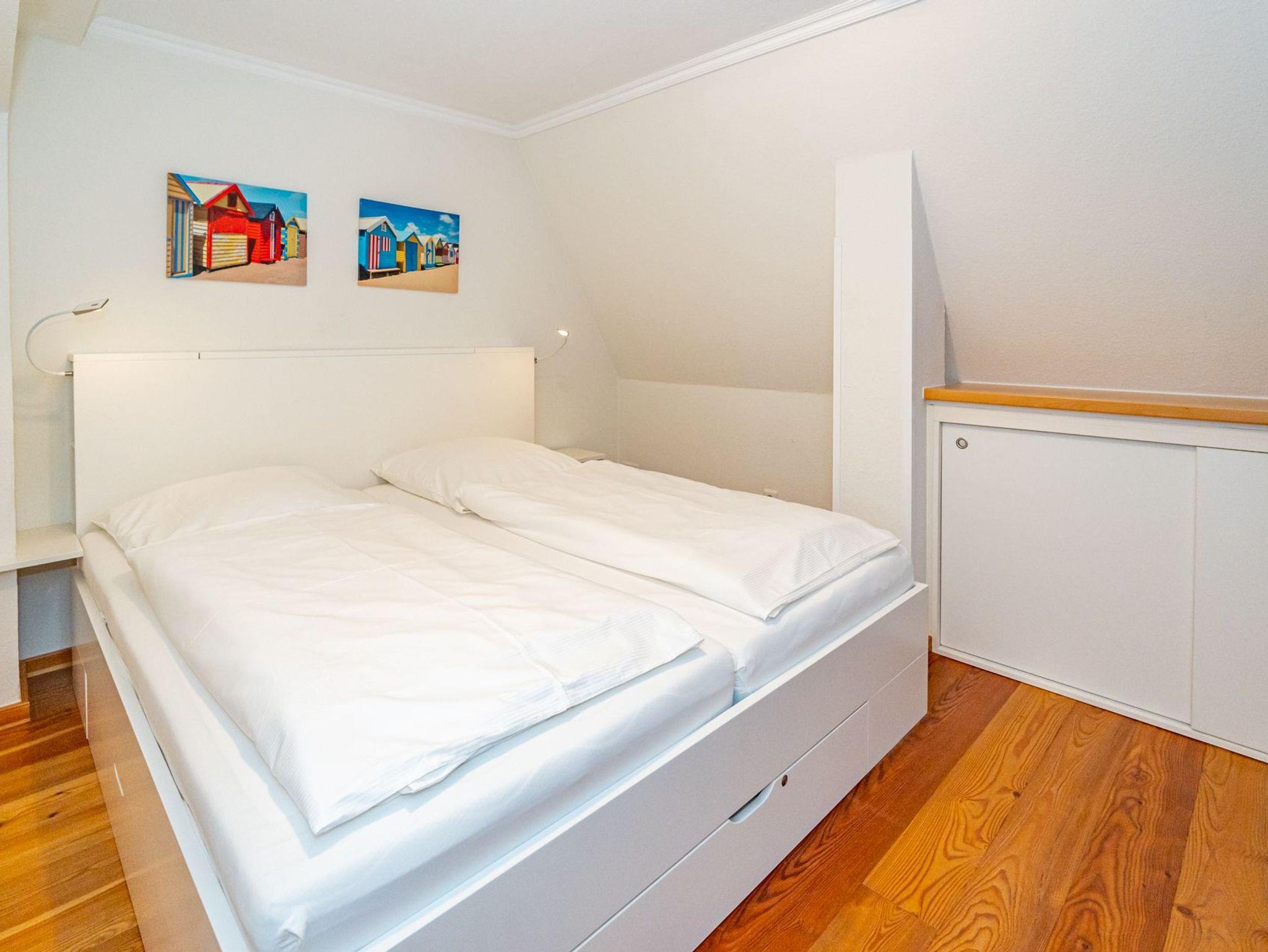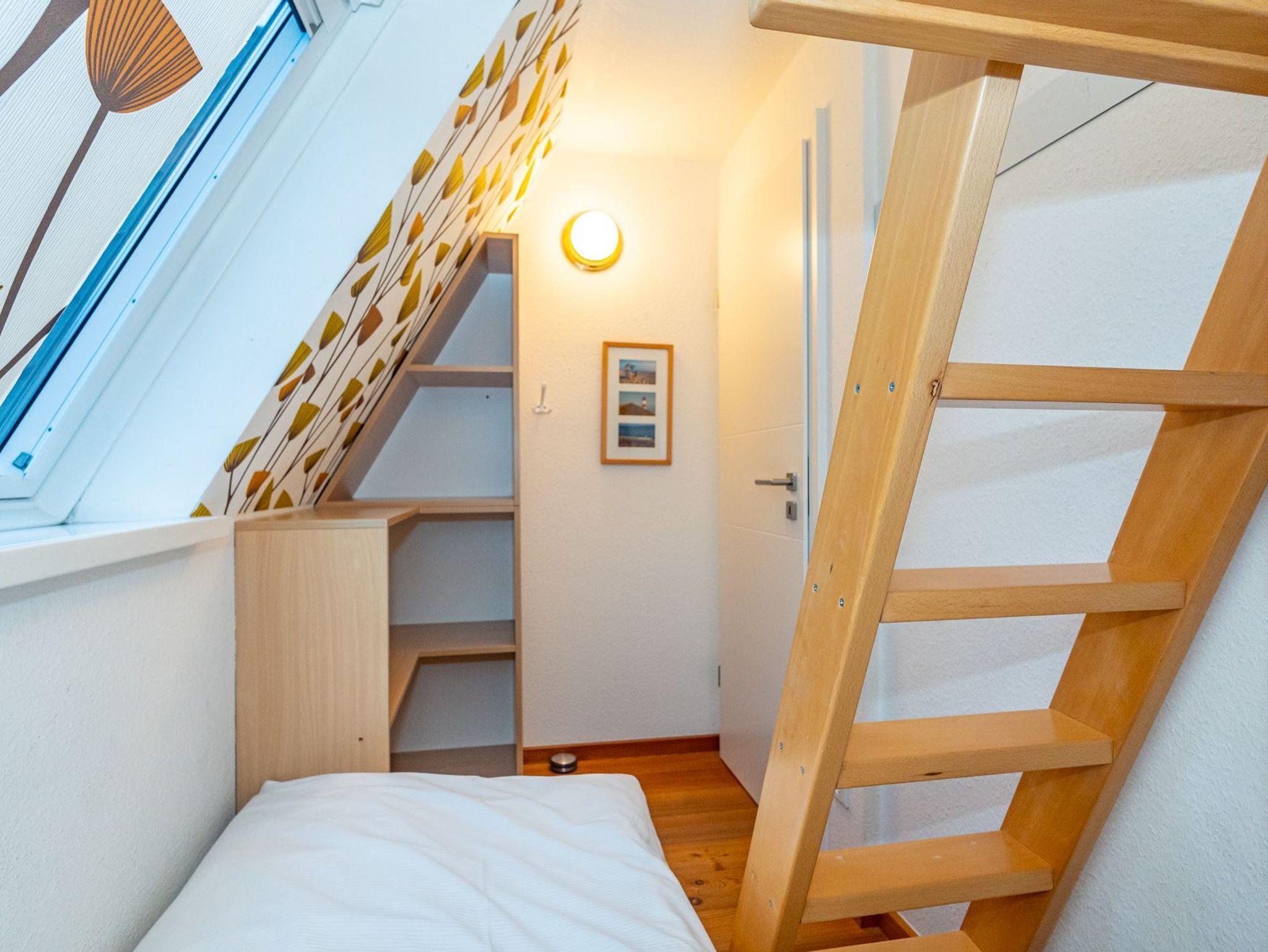 Der Wohn-/Essraum ist mit einer ansprechenden Ledergarnitur (Couch +1 großzügiger Sessel) sowie offener Einbauküche mit hochwertigen Miele-Einbaugeräten wie Geschirrspüler, Herd mit Backofen, Cerankochfeld und separatem Essplatz ausgestattet, An Technik steht ein Kabel-Flachbild-TV und kostenfreier Internetzugang per W-Lan (ohne Gewähr) zur Verfügung. In der Küche gehören Kaffeemaschine, Wasserkocher und Toaster zur Grundausstattung. Von der Diele mit Garderobe, die nahtlos in das Wohn-/Esszimmer übergeht, hat man Zugang zu dem geräumigen und modernen Badezimmer mit bodentiefer Dusche, Waschtisch, Handtuchtrockner, WC und Fenster. Im Appartement befindet sich ein Master-Schlafzimmer mit Doppelbett (gute Einzelmatratzen, Liegefläche jeweils 0,90 x 2,00 m) mit begehbarem Kleiderschrank sowie ein kleines Schlafzimmer mit feststehendem Einzelbett (Liegefläche 0,80 x 1,90 m) und ein Einzel-Hochbett. Das kleine Schlafzimmer erreicht man über das Doppelschlafzimmer (Durchgangszimmer).
