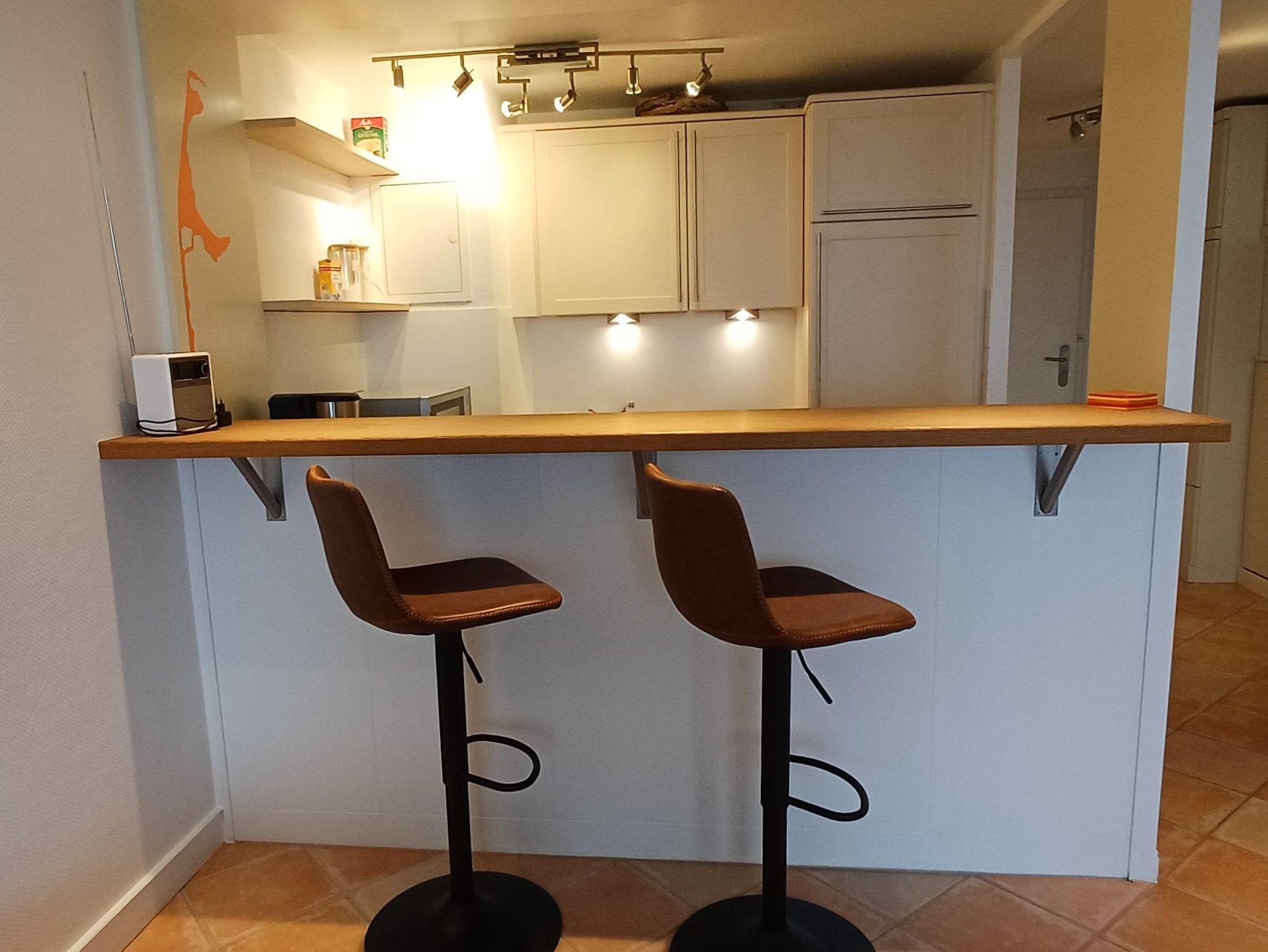 Die offene Küche mit Ceranfeld, Mikrowelle (inkl. Umluft-Backofen-Funktion und Grill), Kaffeemaschine, Spülmaschine, Wasserkocher, Kühlschrank mit