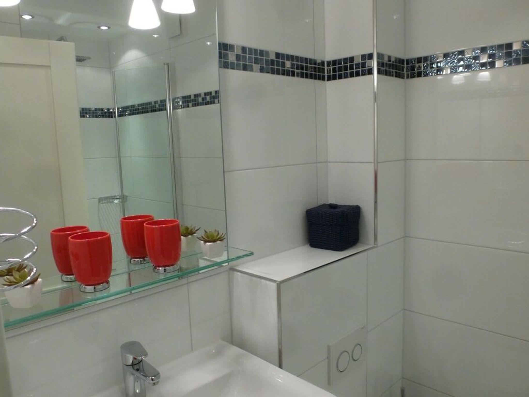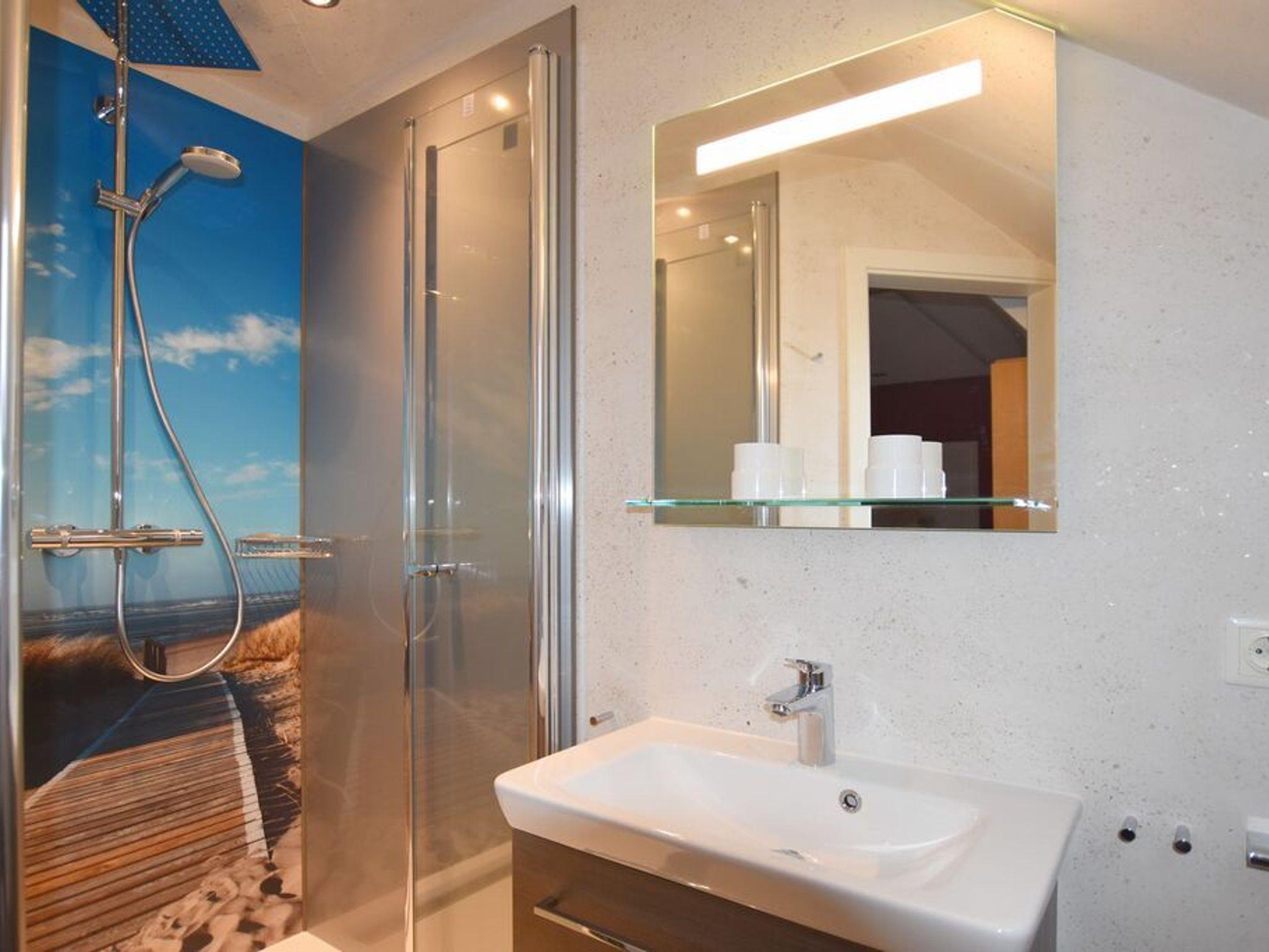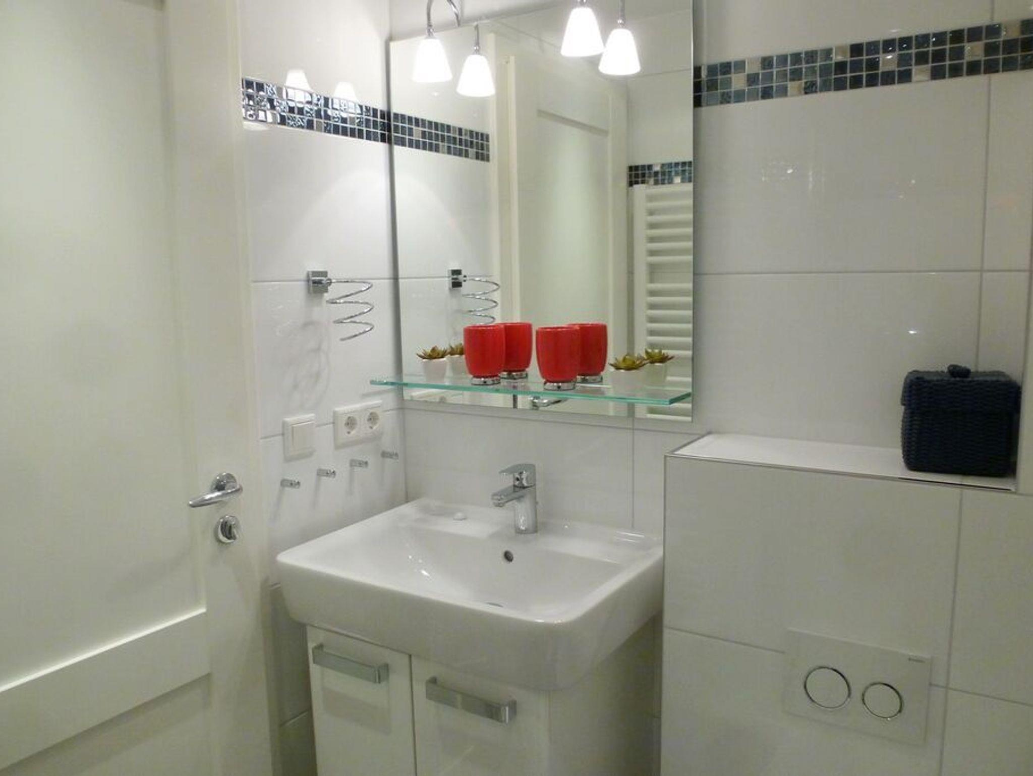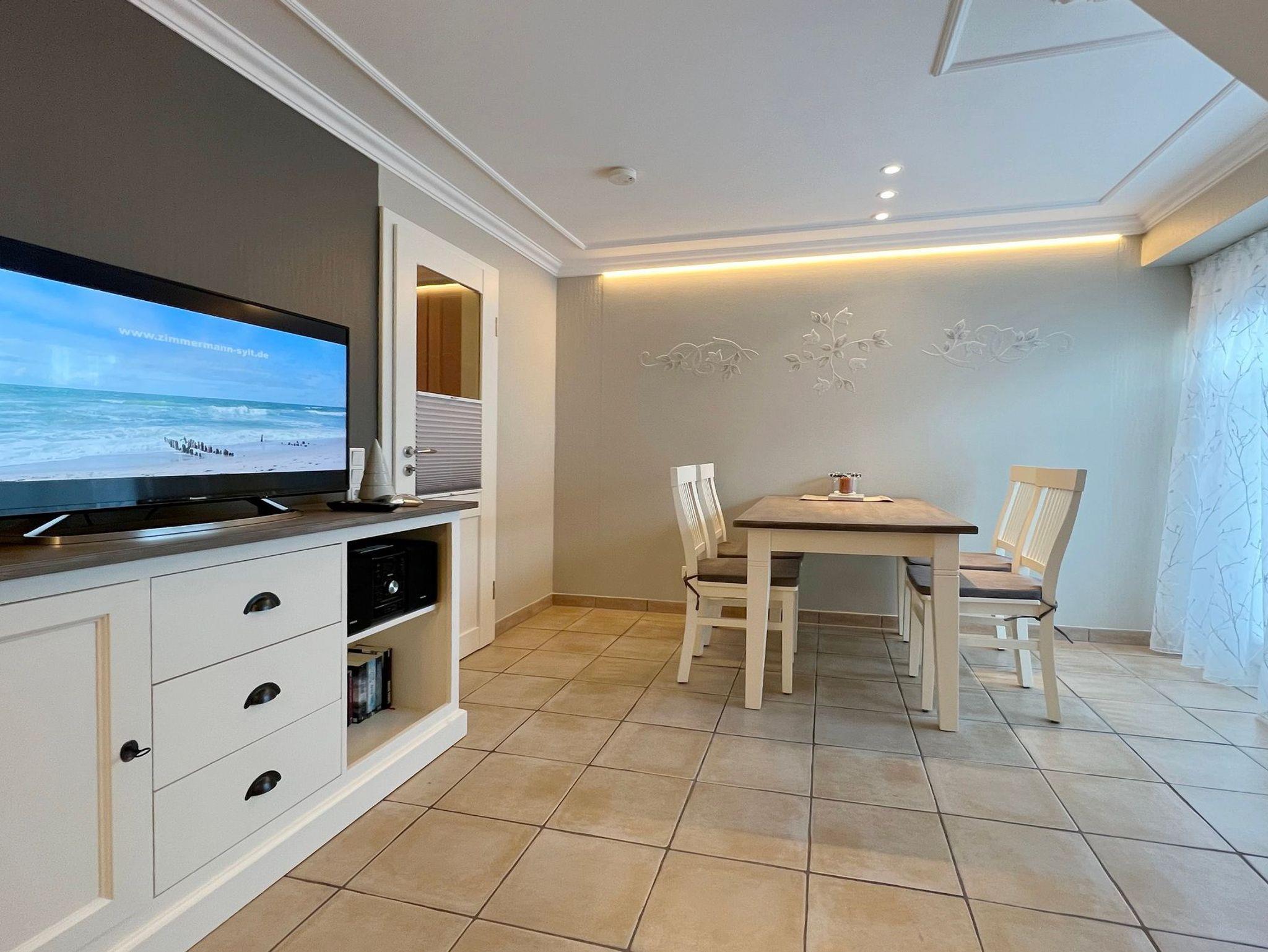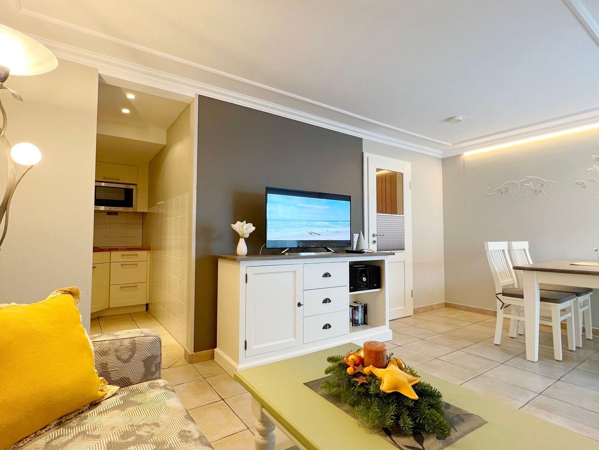 3 Zimmerwohnung mit Balkon (OG und DG), Wohnzimmer mit gemütlicher Sitzgruppe und Eßecke, offene Küche mit Cerankochfeld, und Geschirrspüler, Flatscreen-TV, 2 Schlafzimmer für je 2 Personen mit jeweils eigenem Badezimmer mit Dusche WC und Waschbecken, im UG befinden sich für die Gäste des Hauses Waschmaschine und Trockner gegen Gebühr. 1 PKW-Stellplatz. Gerne dürfen Sie hier ein gut erzogenes Haustier mitbringen. Dafür wird dann eine einmalige Haustiergebühr berechnet.