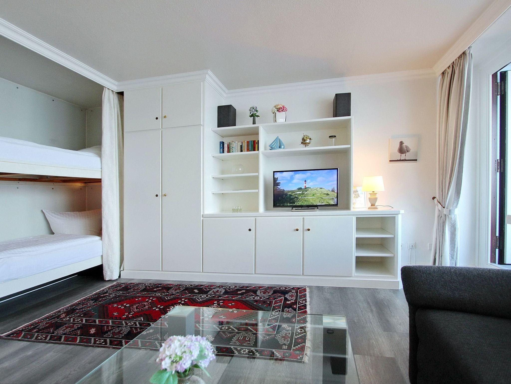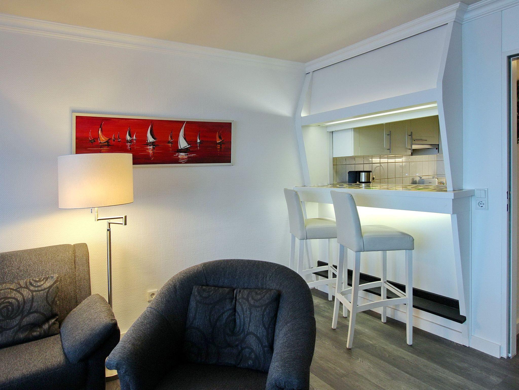 Diese Einzimmerwohnung in der 13. Etage des Haus Metropol hat einen herrlichen Blick auf den Strand und die Nordsee. Der kombinierte Wohn-/Schlafraum mit vorgelagertem Westbalkon (inkl. Balkonmöbeln und Auflagen) verfügt über ein Etagenbett, Designfussboden und eine bequeme Couchgarnitur mit Schlaffunktion und Sessel. In der Küche mit Backofen, Ceranfeld mit 4 Herdplatten und Esstresen können Sie sich selbst verpflegen. Das Badezimmer hat eine Dusche mit Duschvorhang. Zur technischen Ausstattung dieser Nichtraucherwohnung gehört: ein Flachbildfernseher und ein Radio. Ein freies WLAN Netzwerk (WEG Haus Metropol - Passwortfrei - ohne Gewähr) steht ihnen kostenfrei zur Verfügung. Wohnungsgröße: ca. 42 m².