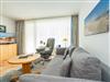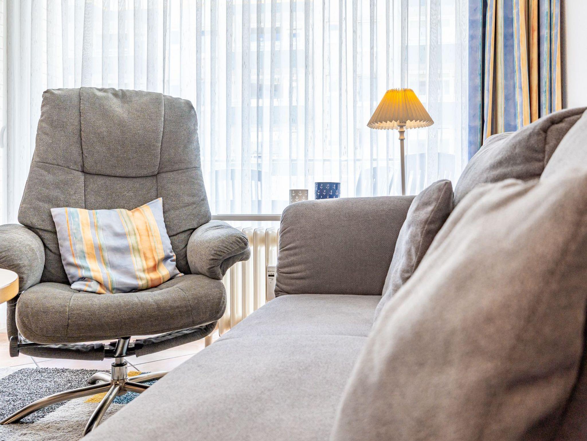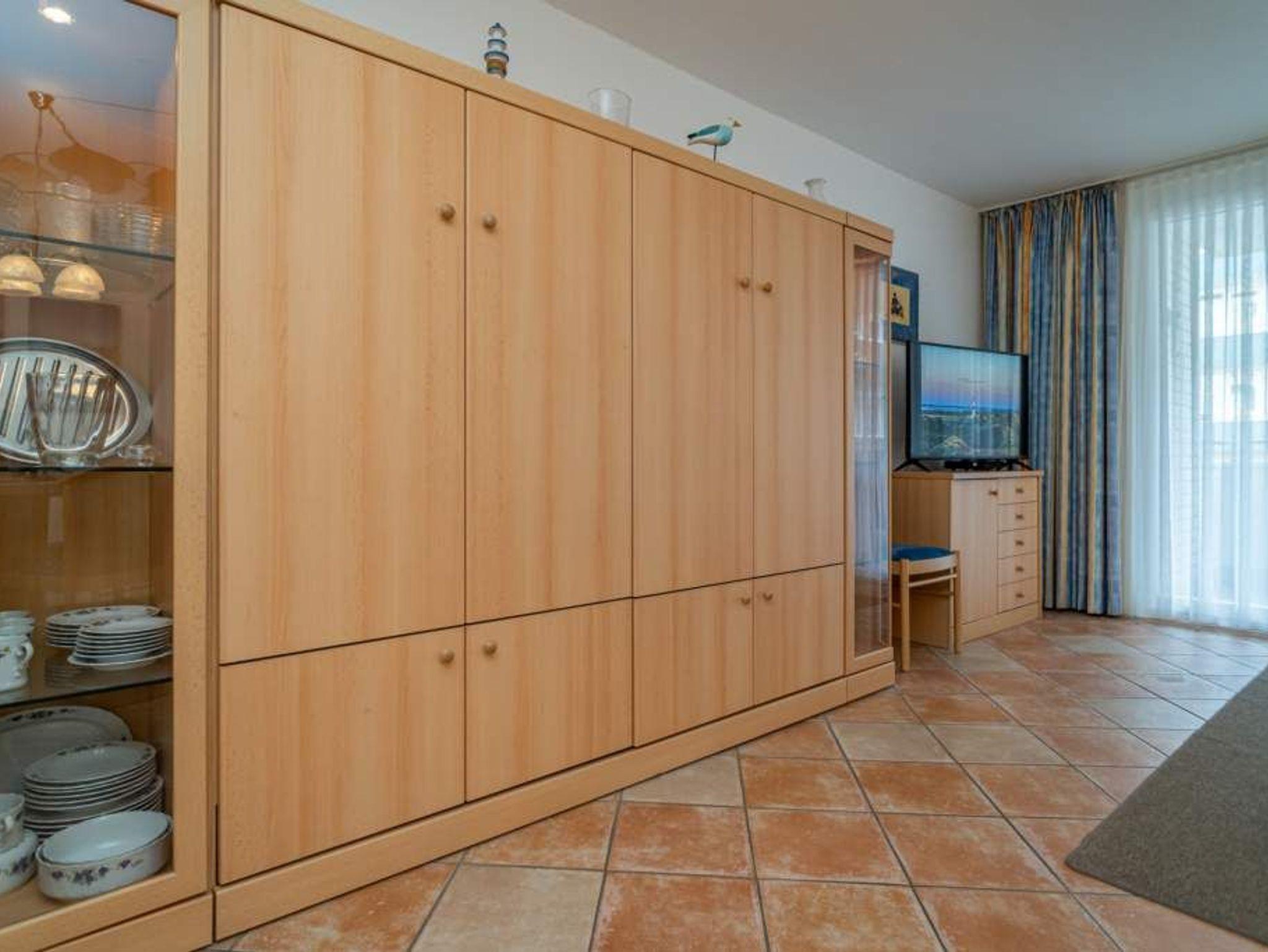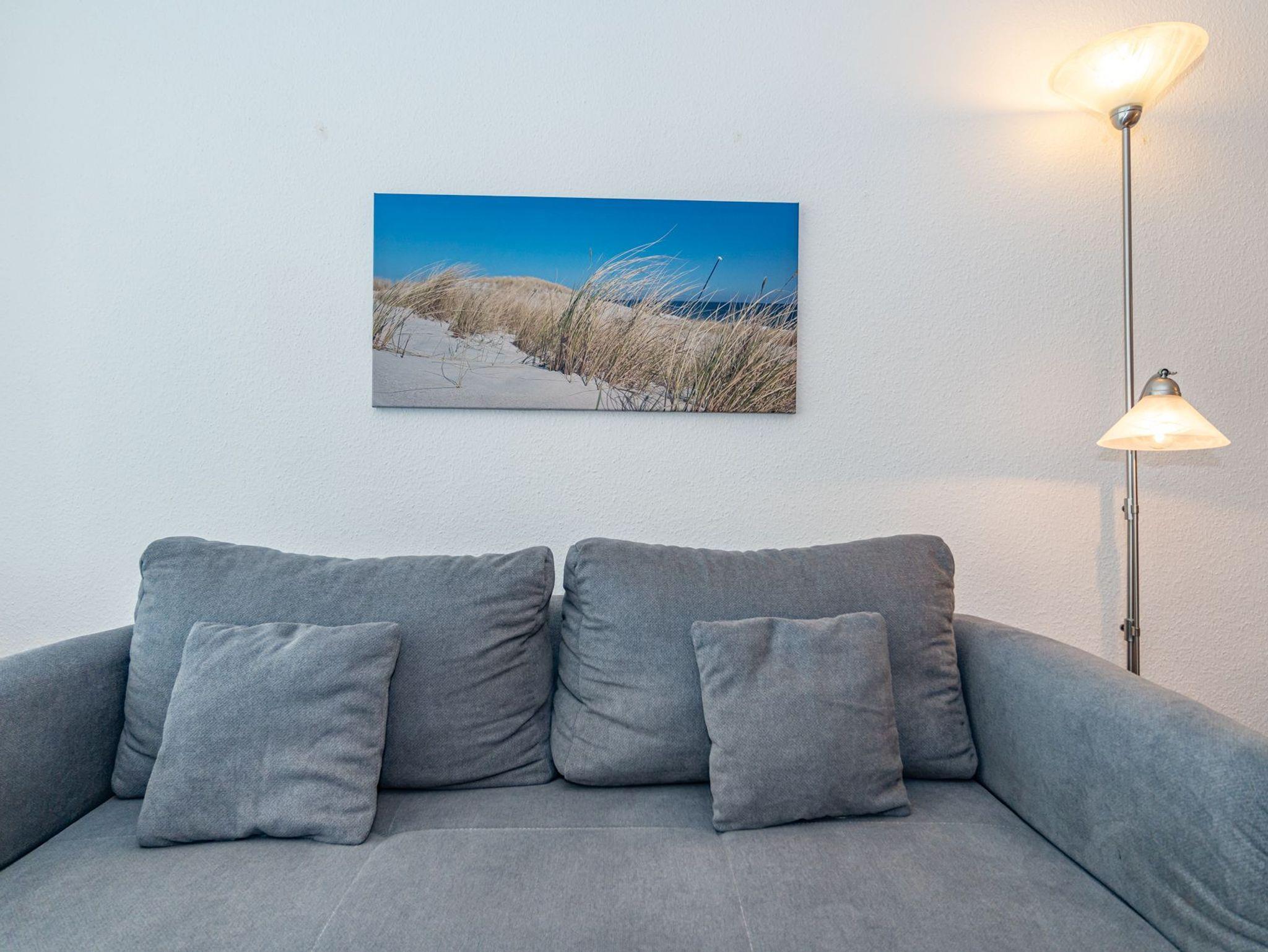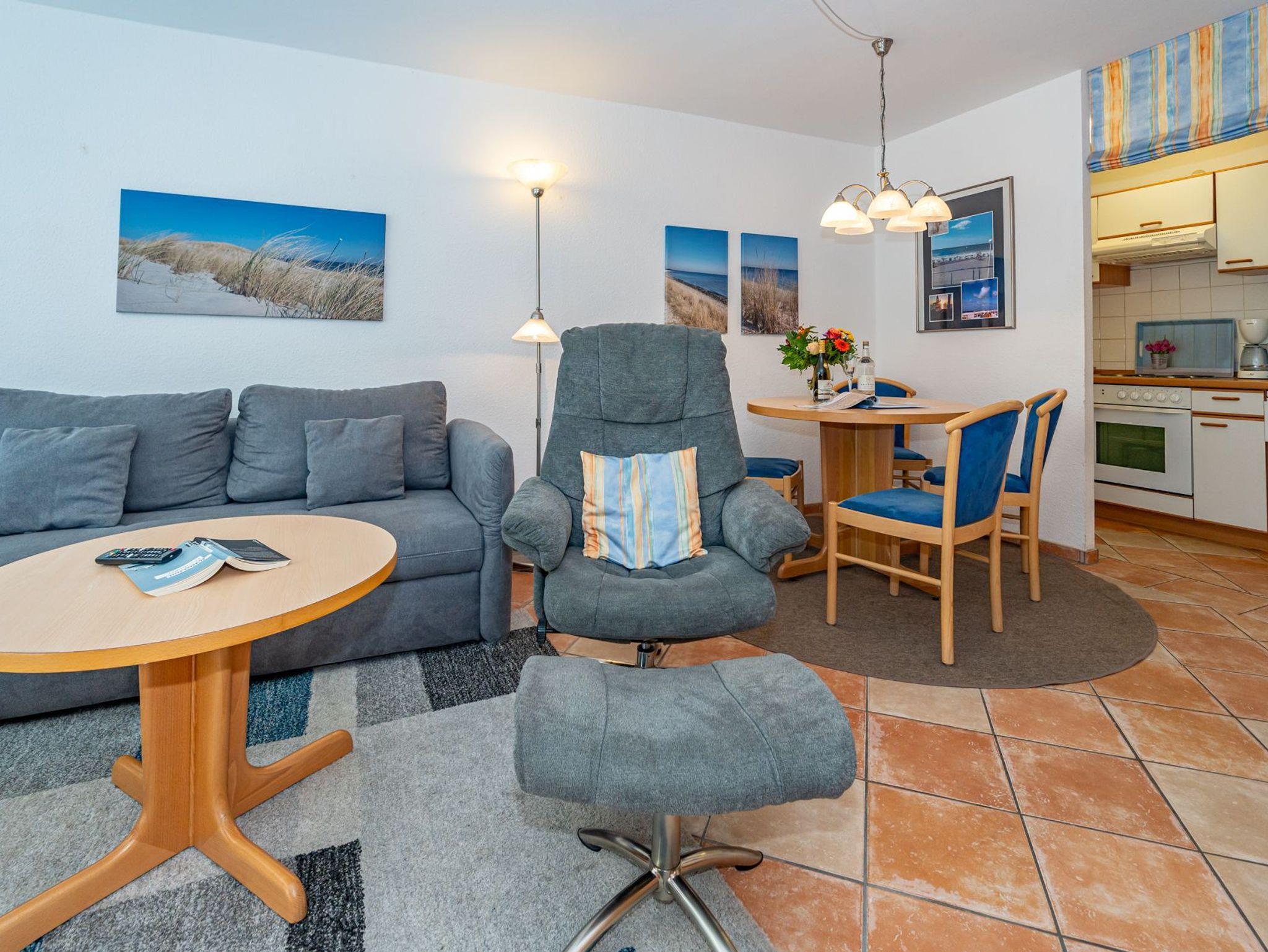 Der Wohnraum besteht aus einer bequemen Sitzgarnitur (2-Sitzer-Couch, 2 Sessel), einem Essplatz, einem Doppelschrankbett (einzeln ausklappbar), Flachbild-TV (HD-Ready mit digitalem Empfang mit ca. 60-100 Radio- und Fernsehprogrammen), DVD-Player, Radio/CD, kostenlose Flatrate ins deutsche Festnetz, W-Lan.