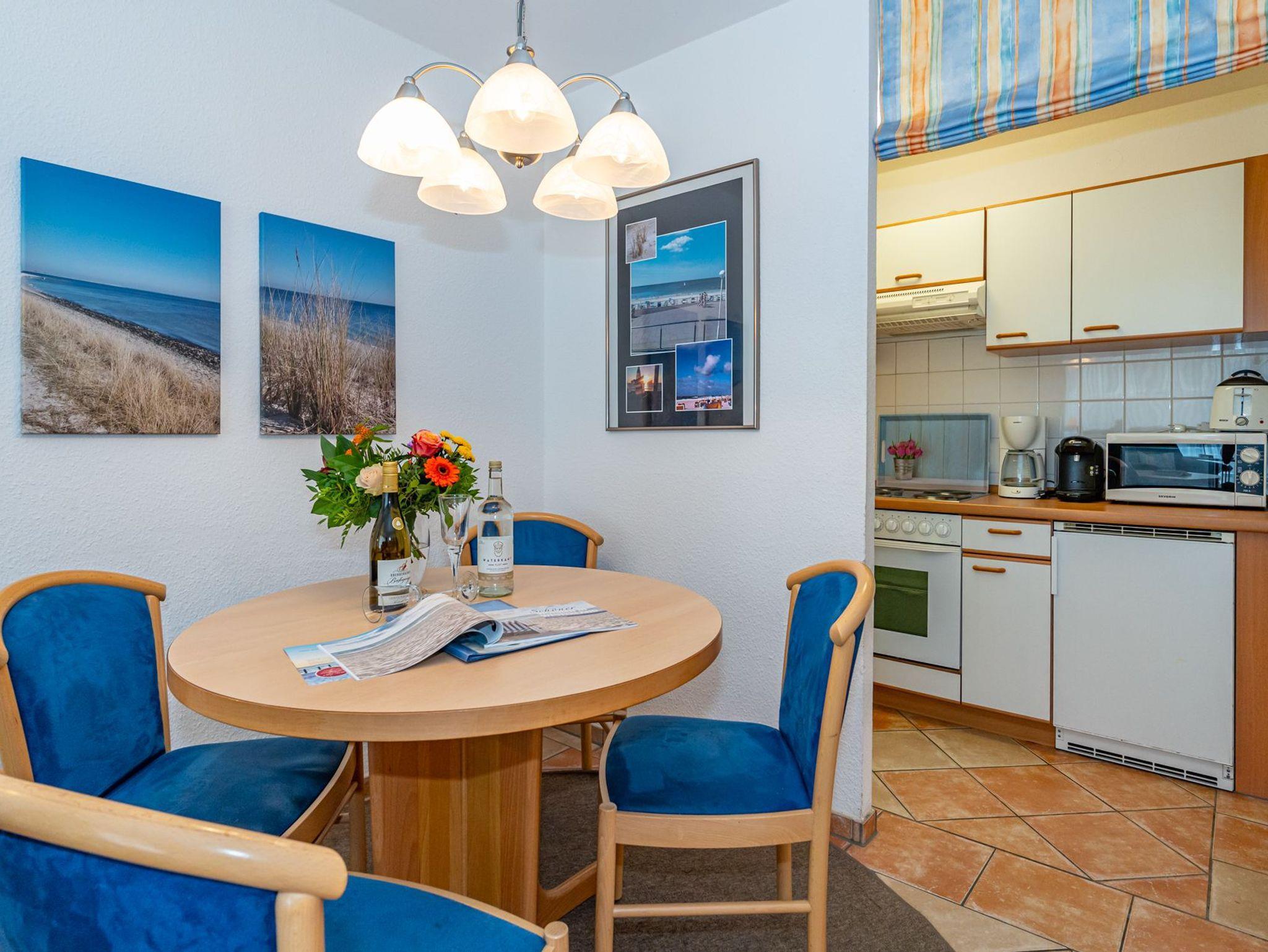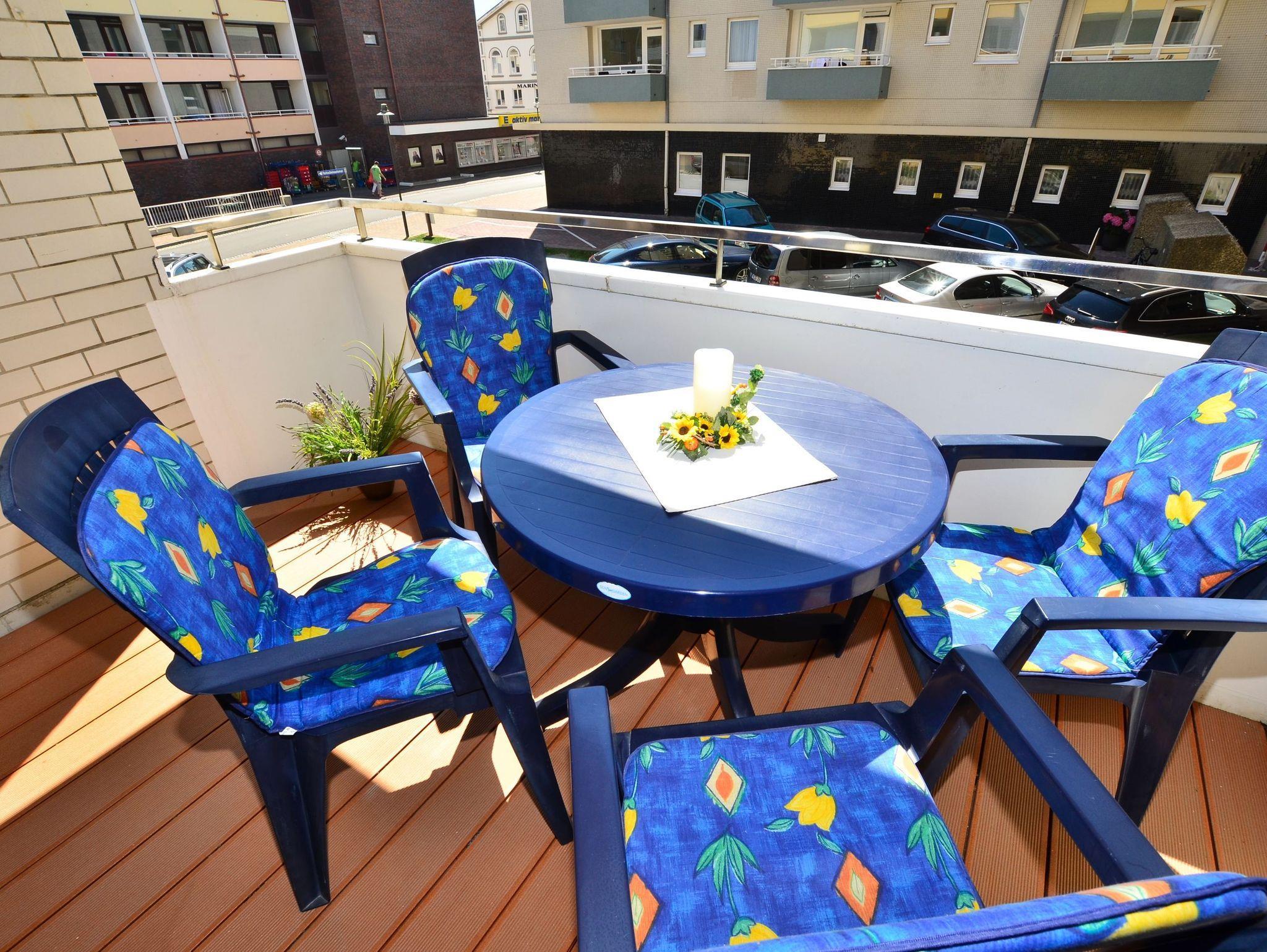 Gemütliche 2-Zimmer-Nichtraucher-Ferienwohnung, ca. 48 qm in der 1. Etage zur Südseite mit Südbalkon (mit Balkonmöbel und Auflagen) für max. 4 Personen.