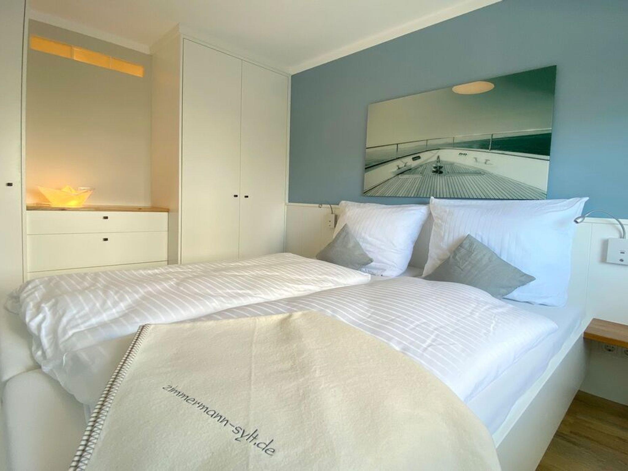 Hochwertige Tischlereinbauten im Schlafzimmer Doppelbett (160x200), Kleiderschrank und Kommode und zusätzlichem TV.